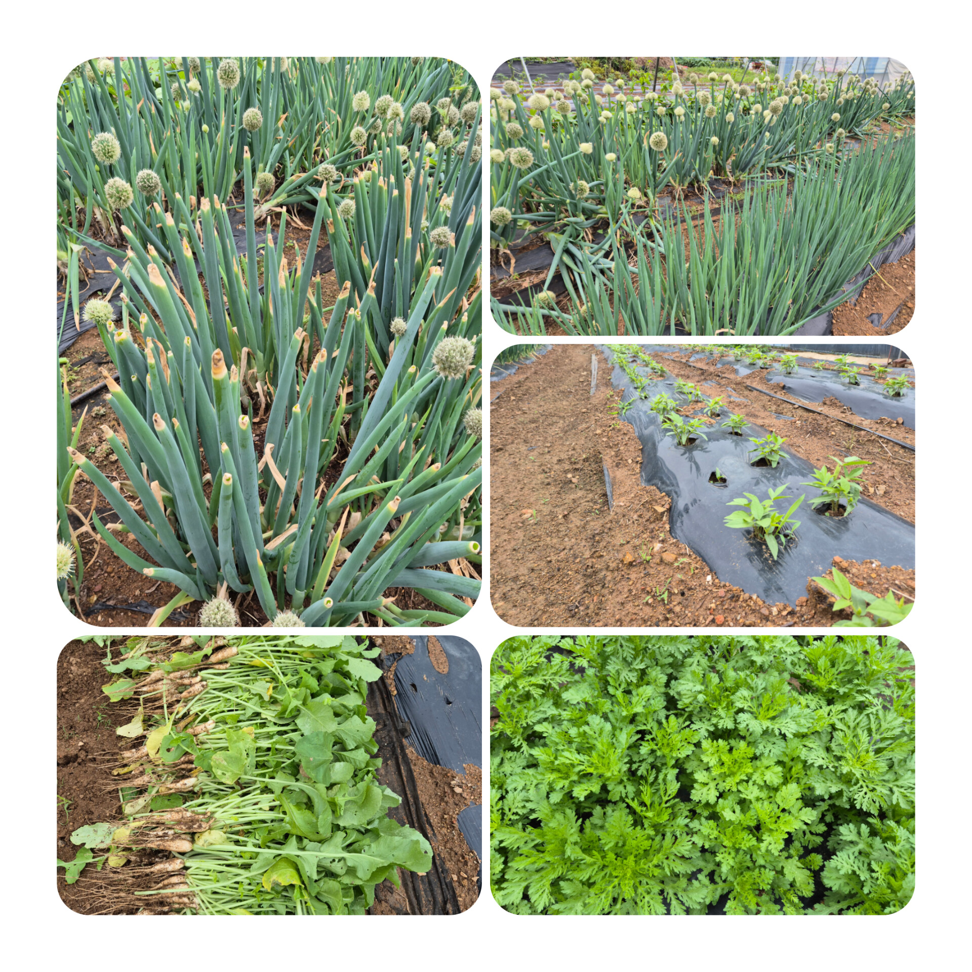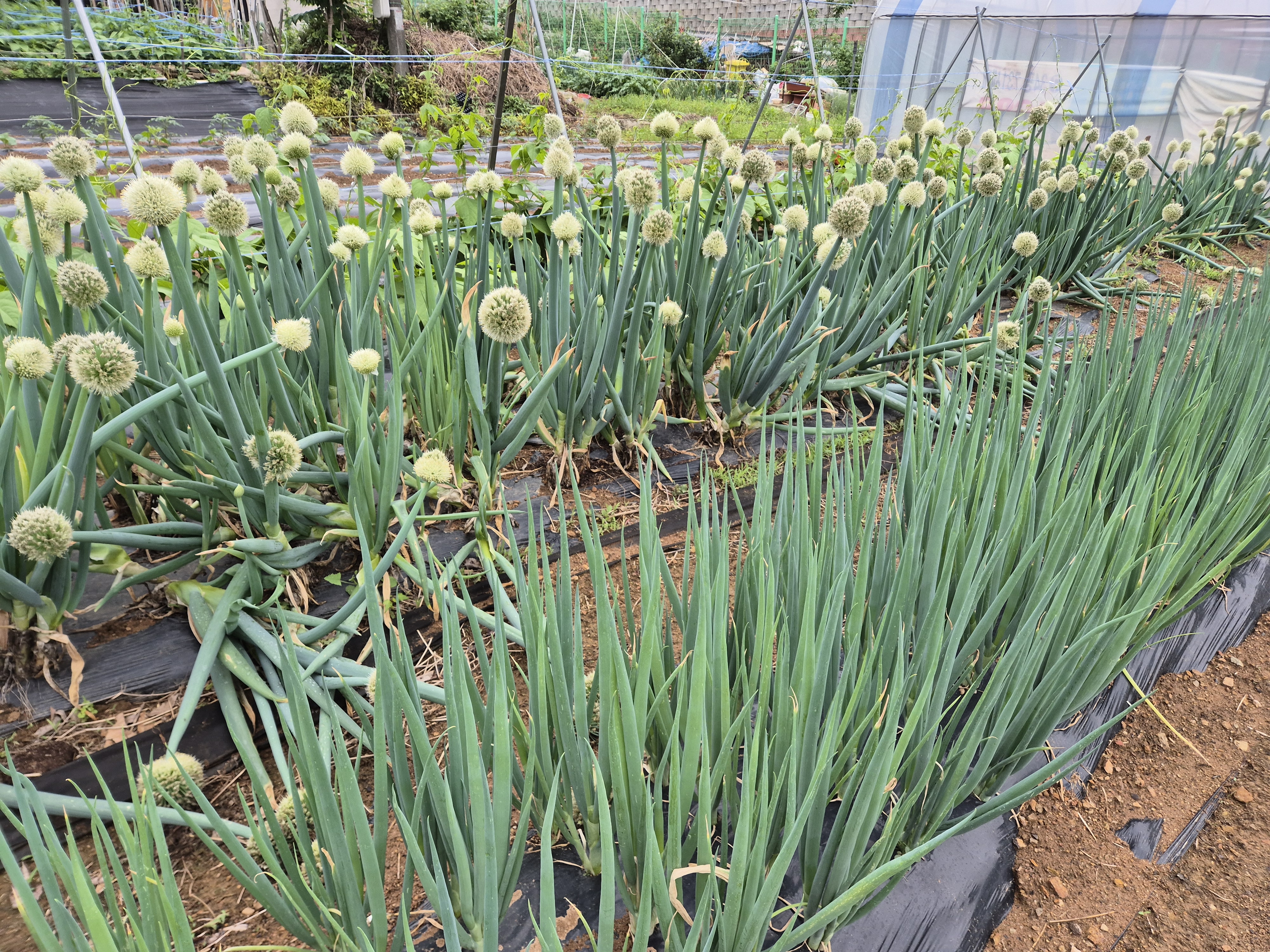 심어놓은 파는 싱싱하게 자라 꽃을 피우고있고,다른 작물들도 무럭무럭 잘 자라고있다.
