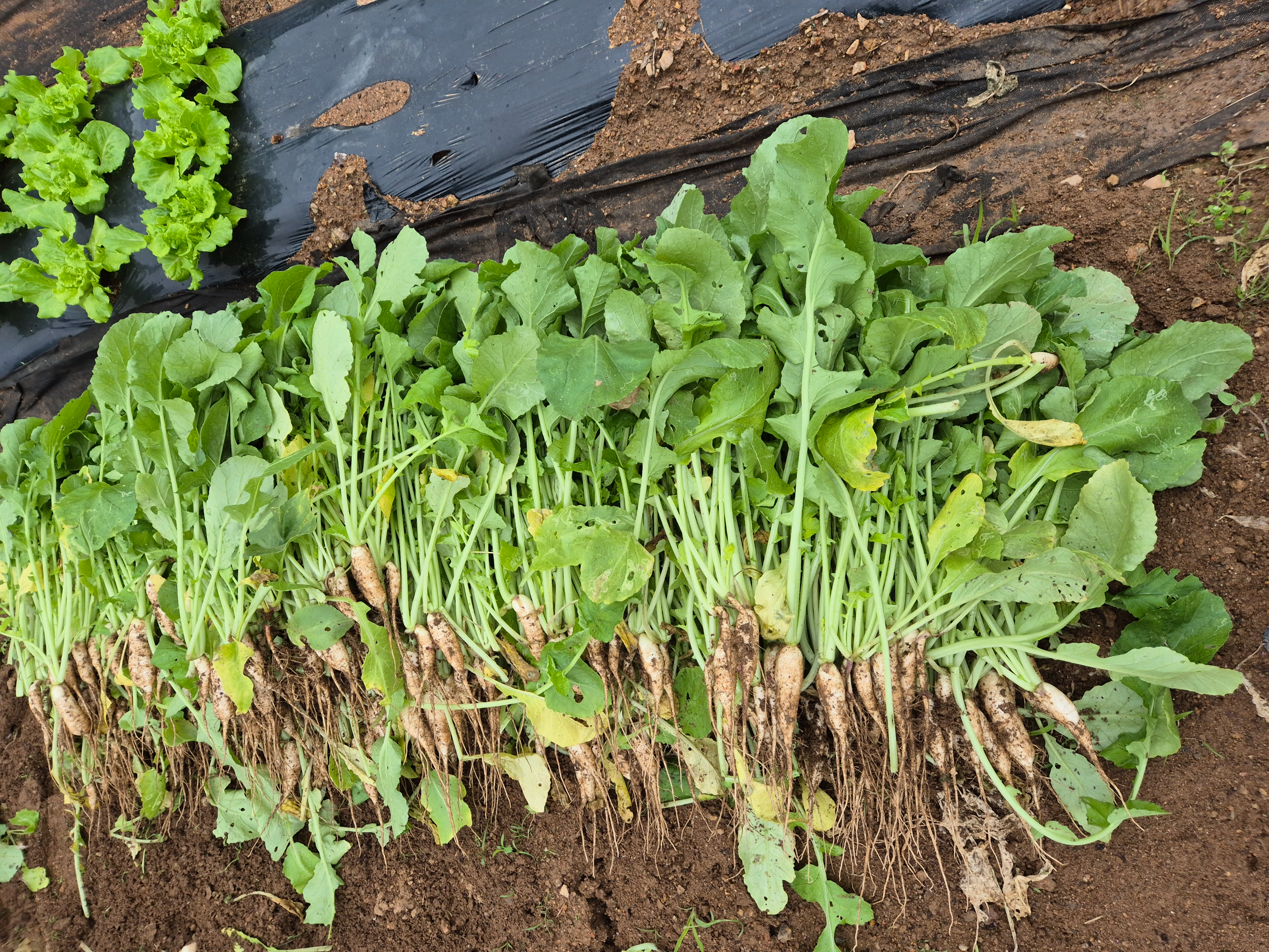 풍성하게 자란 열무를 뽑고 여자들은 그것을 다듬는 작업을 하고