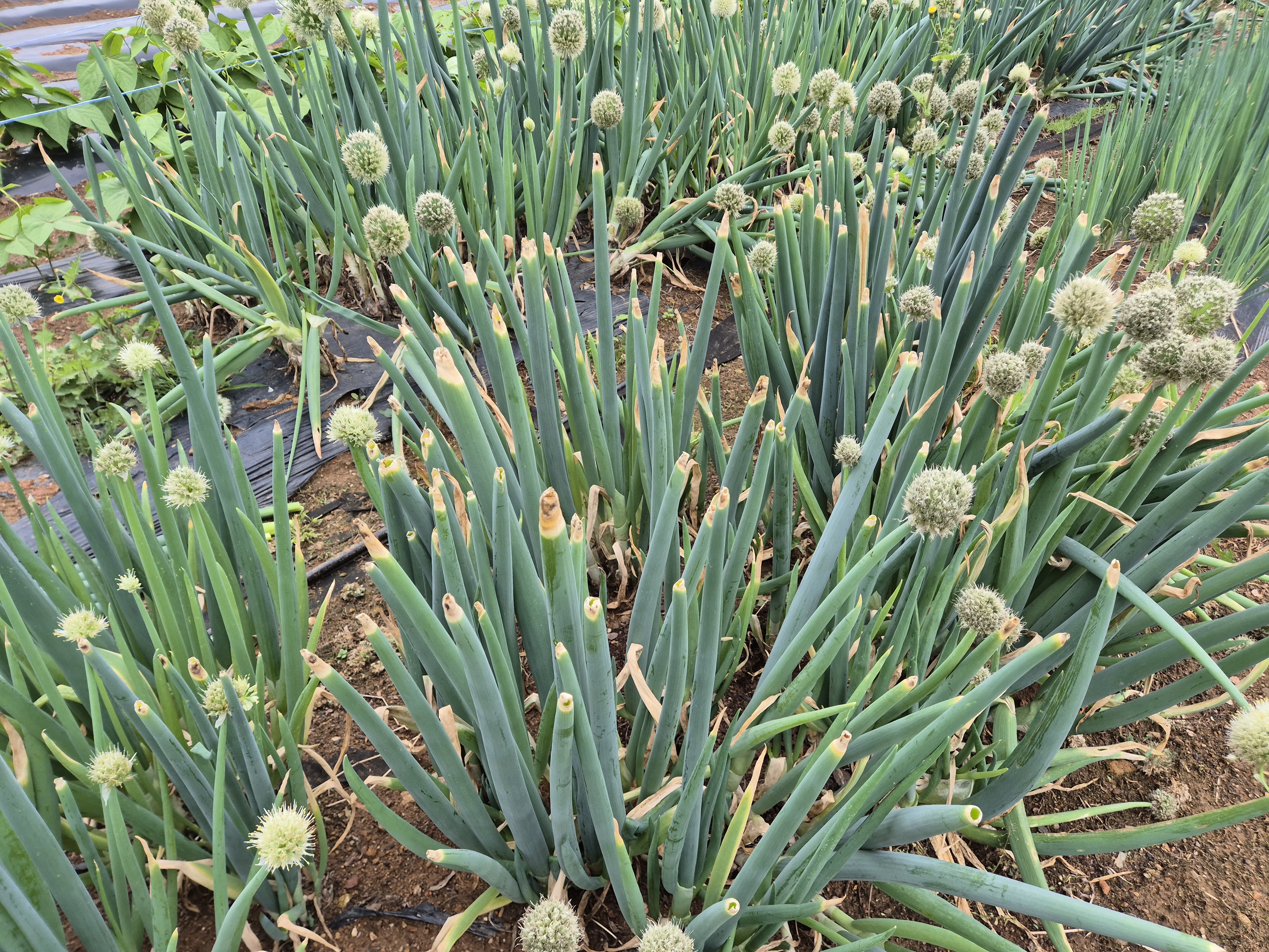 심어놓은 파는 싱싱하게 자라 꽃을 피우고있고,다른 작물들도 무럭무럭 잘 자라고있다.
