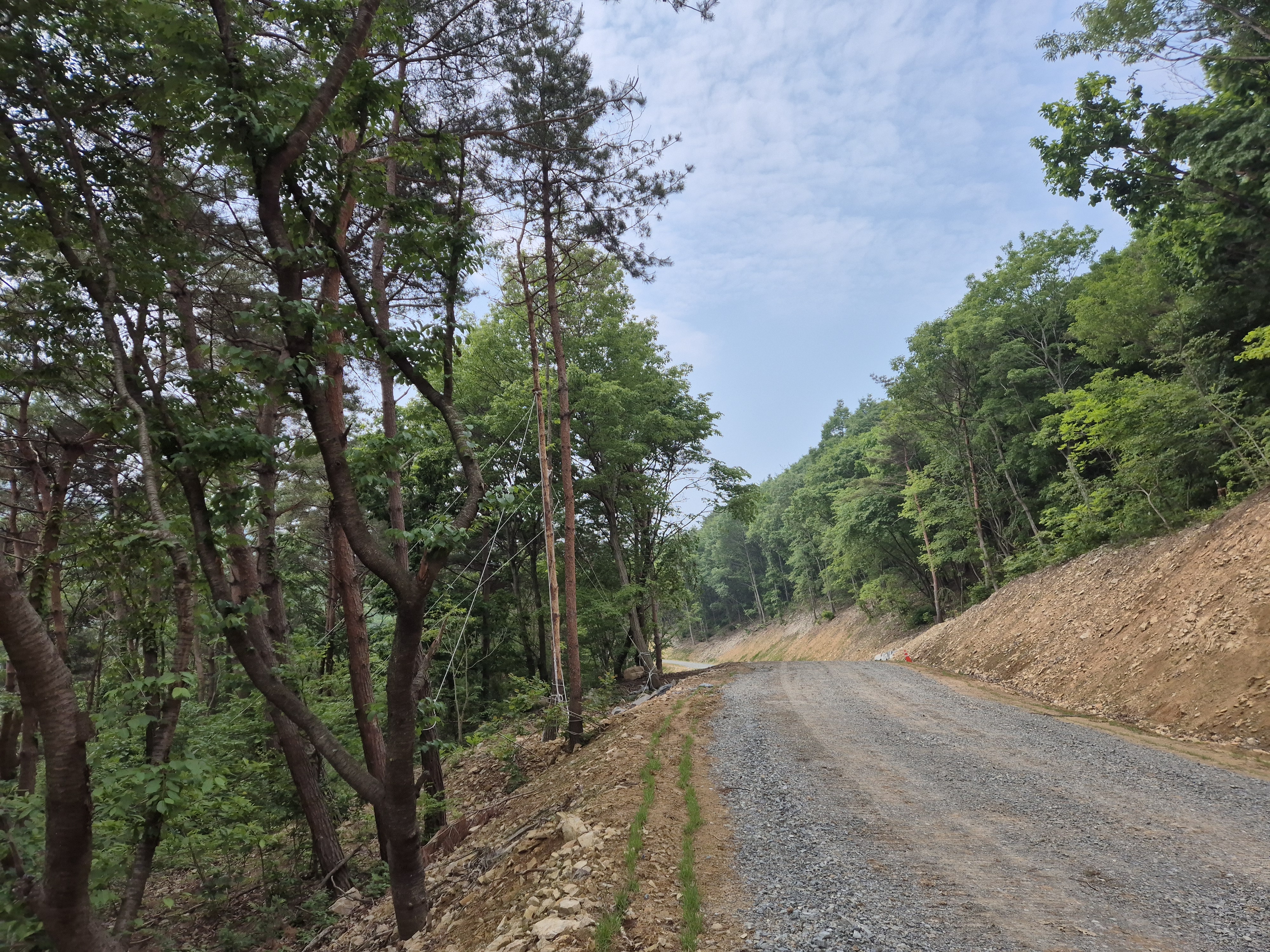 새로이 개통하였는지 산허리를 공사하여 막 잔돌을 깔아놓은 길을