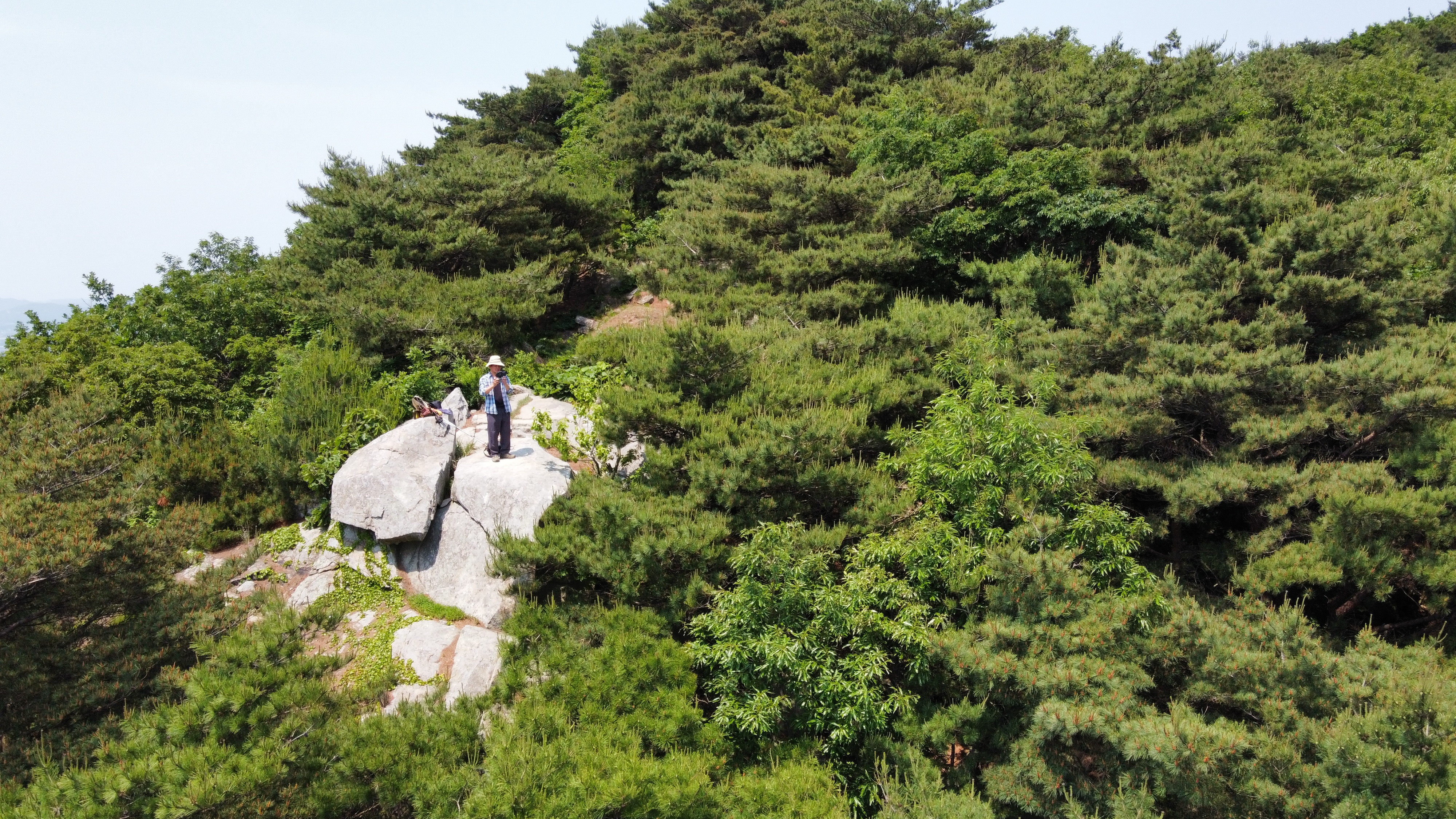 석문봉은 바로 잡을 수가 있으나 가야봉과 옥양봉은 보이지도않고 거리가 멀어 드론으로 잡기도 어렵다.