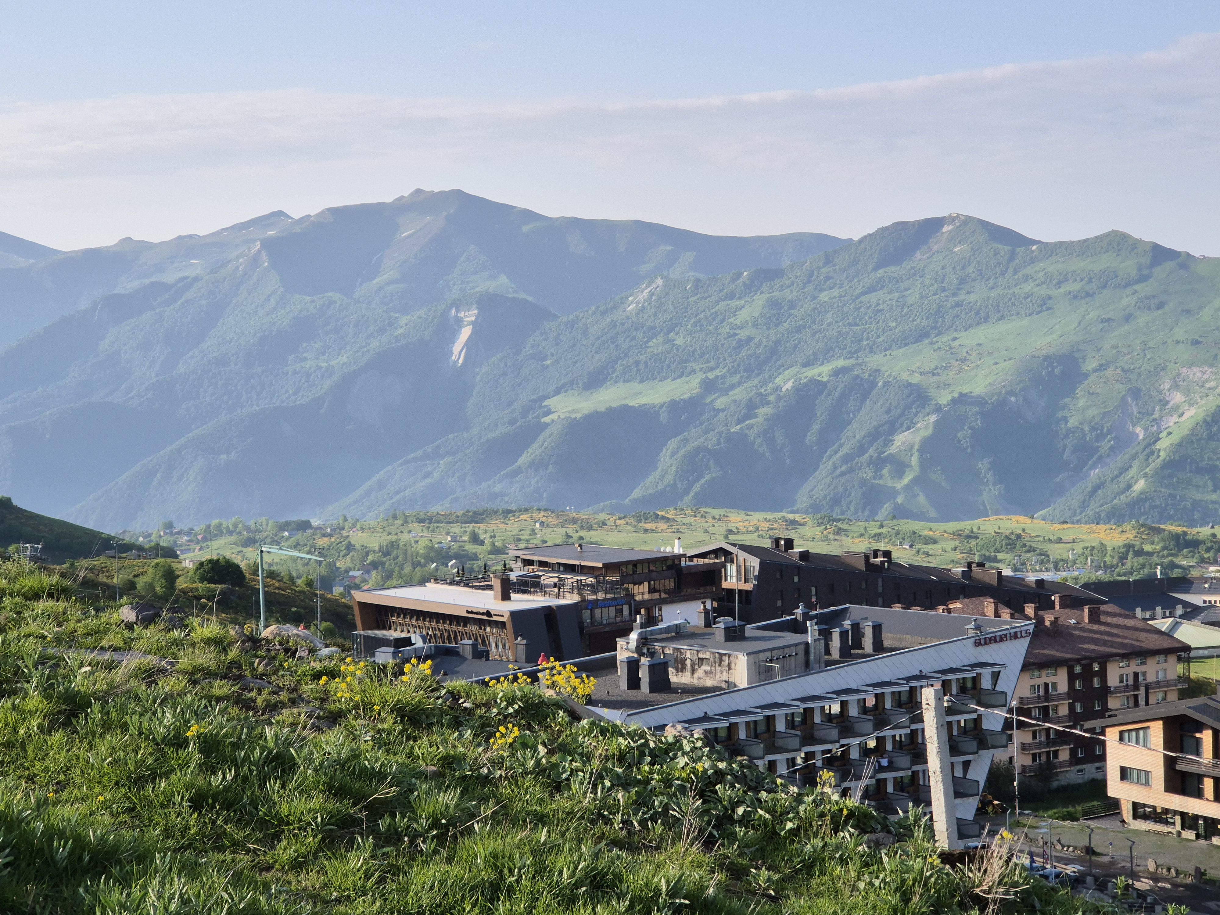 기상후 호텔주변을 걸으며 고산의 전경과 풍광을 즐겨본다.