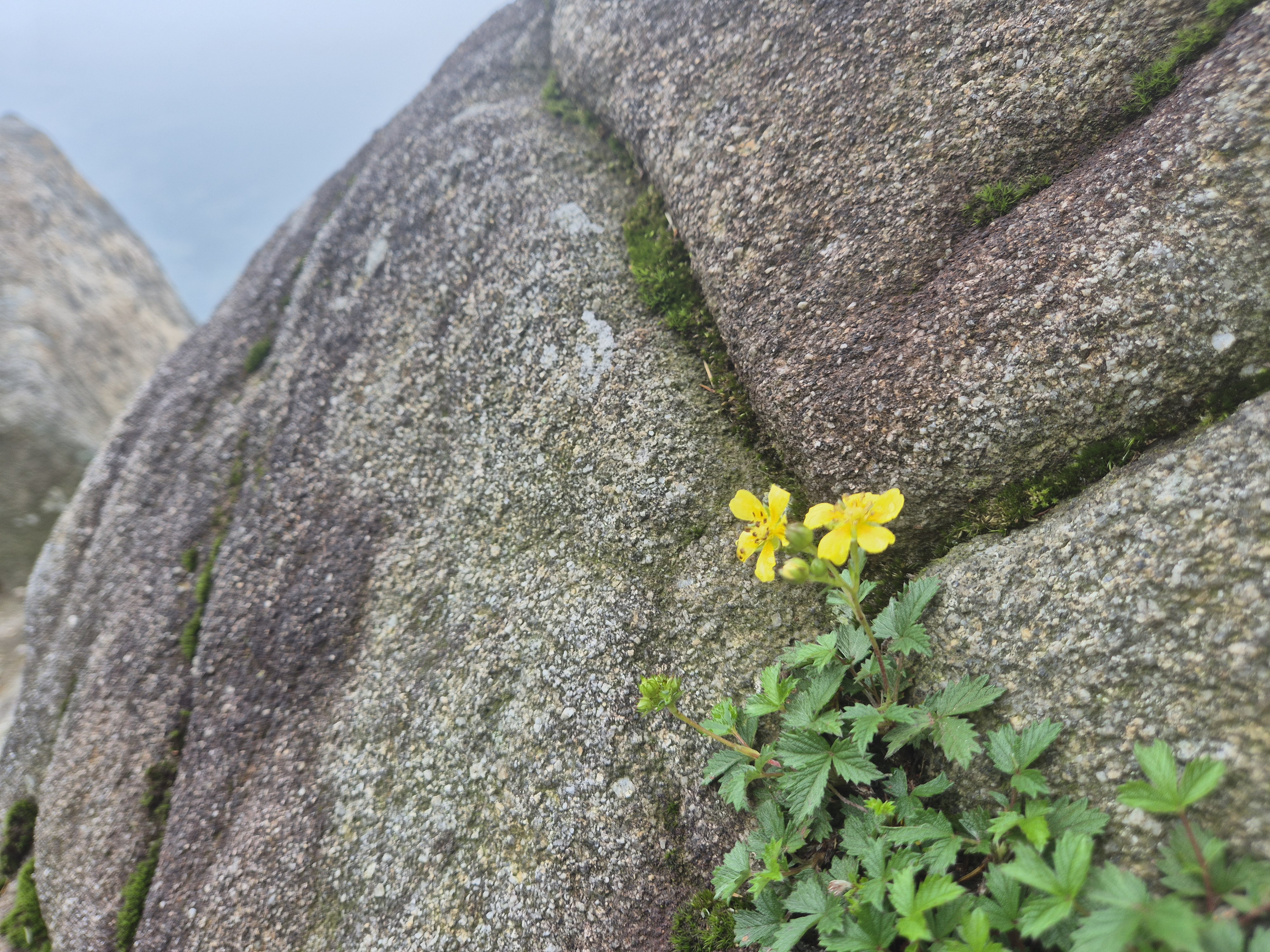어렵게 쉬흔길바위에 올라서니 발아래만 조망될뿐 주변은 안개로 가려있다.