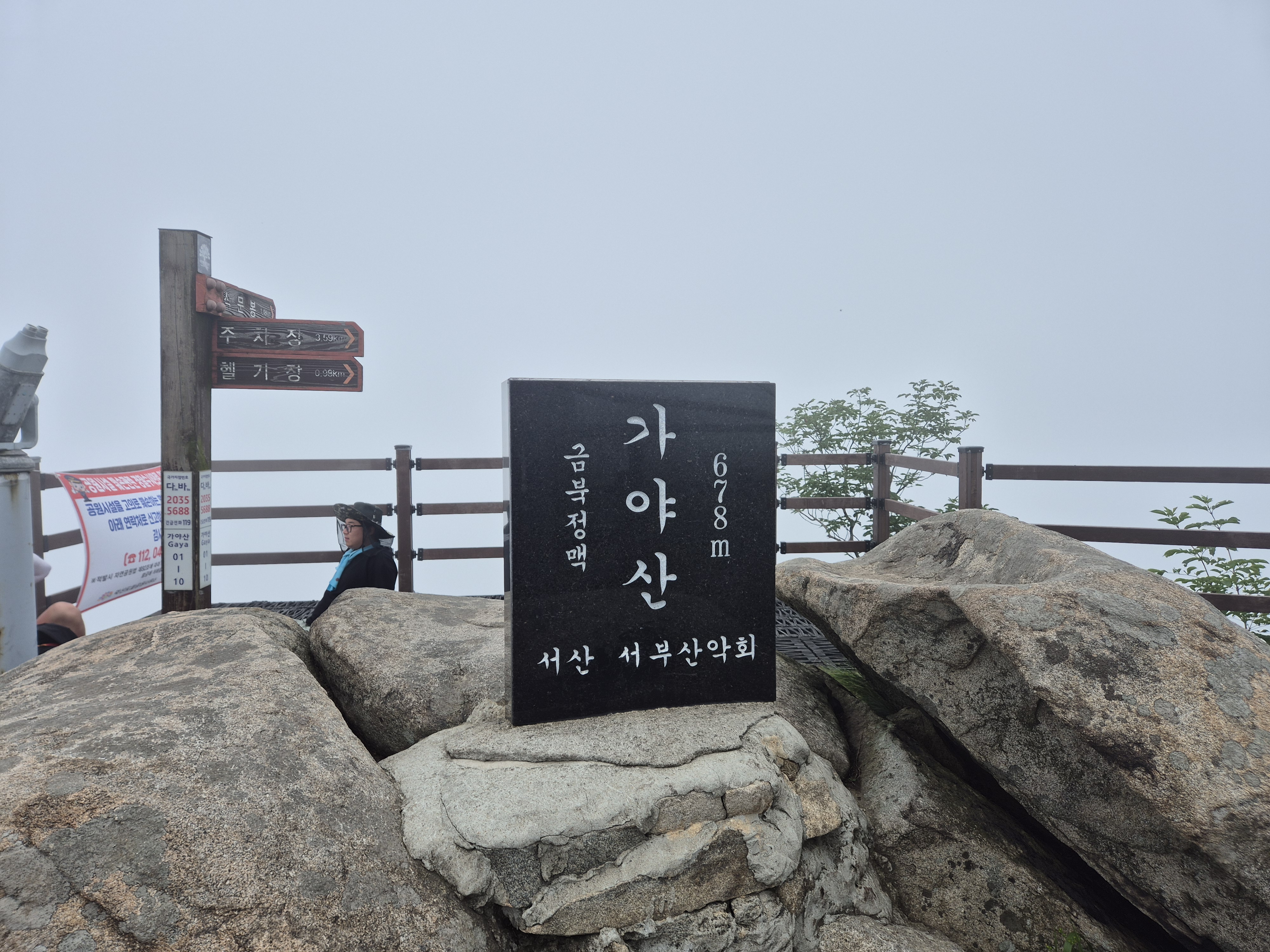 멀리 바라보이는 가야산능선이 구름에 가려 아무것도 보이질 않는다.