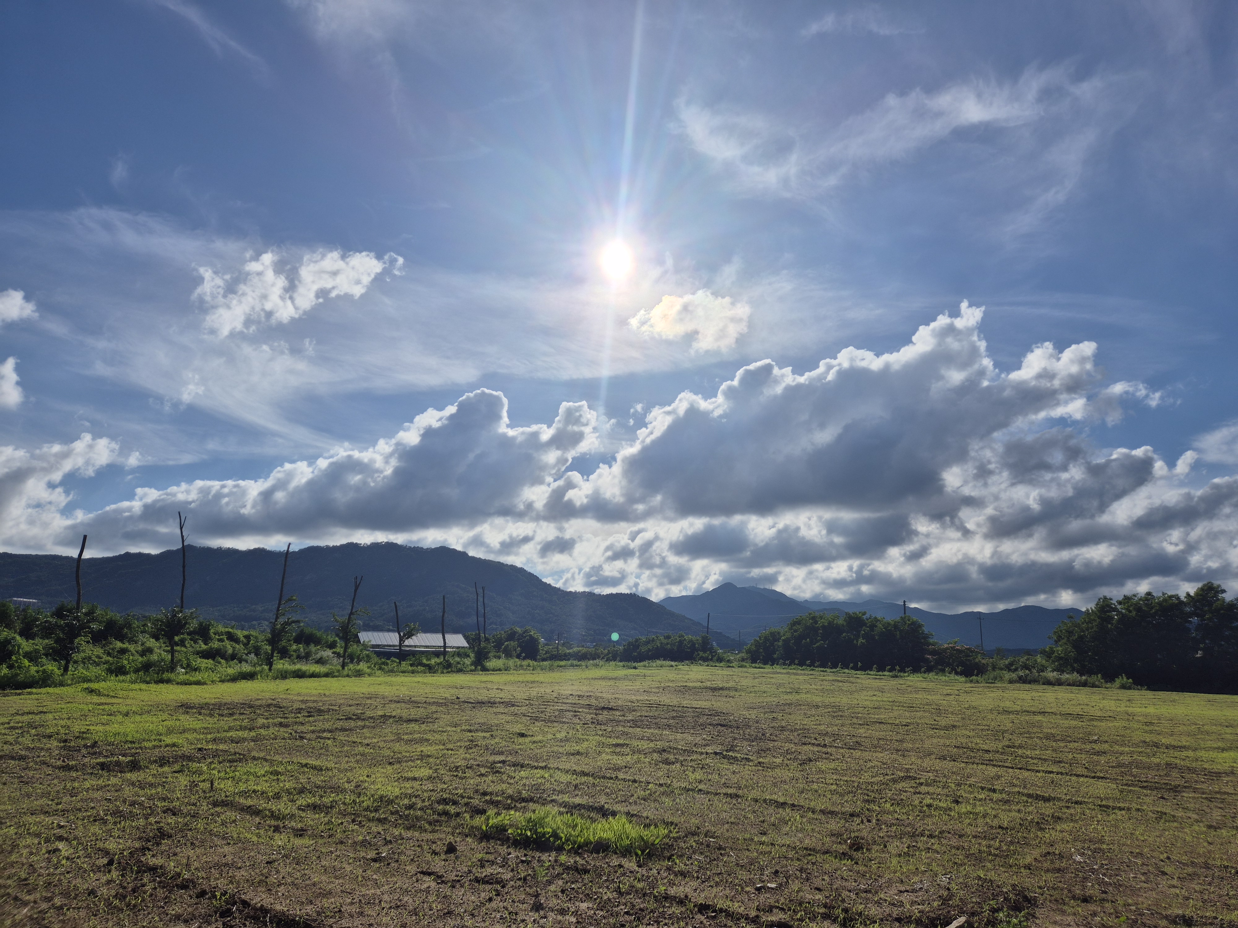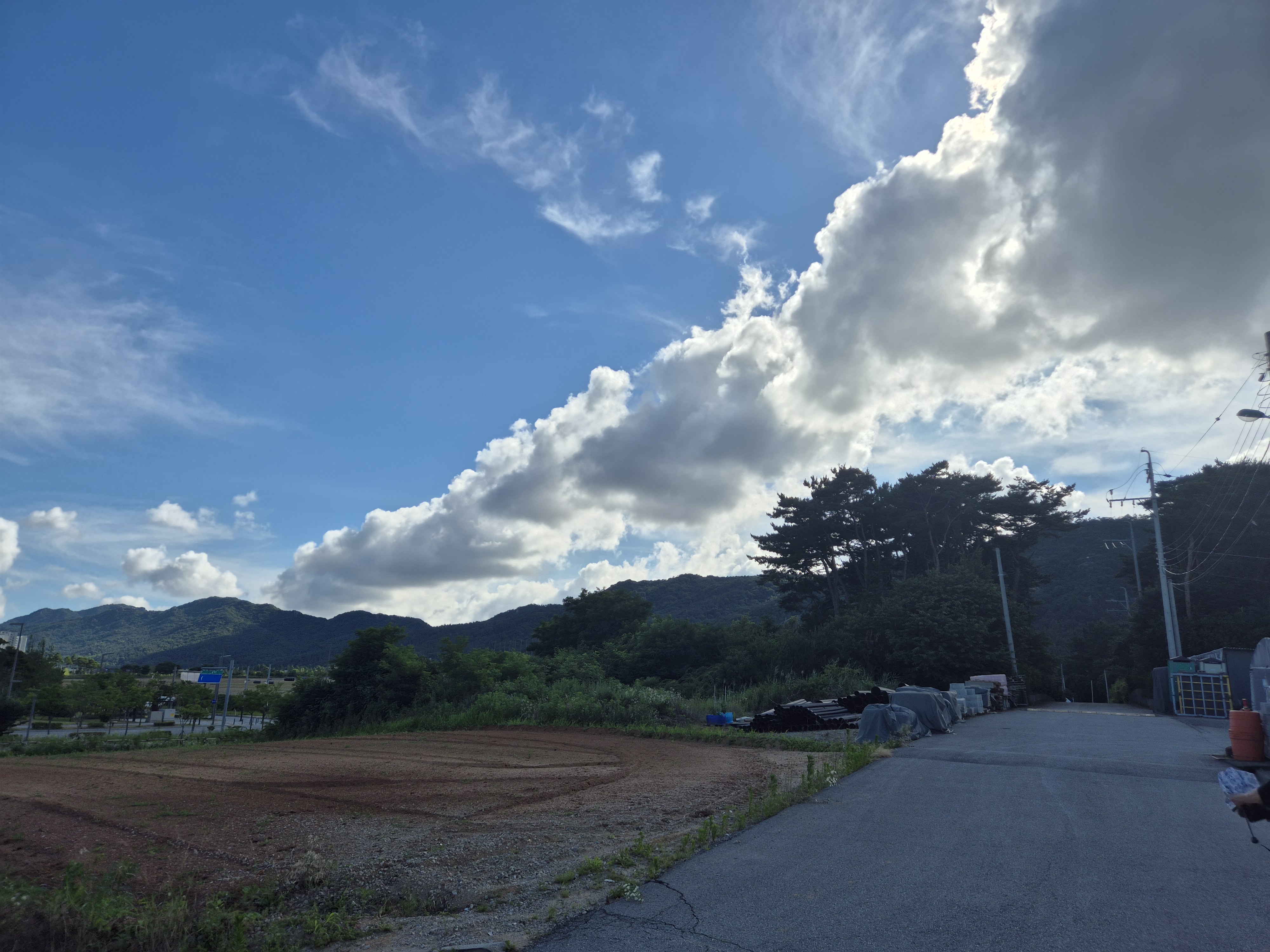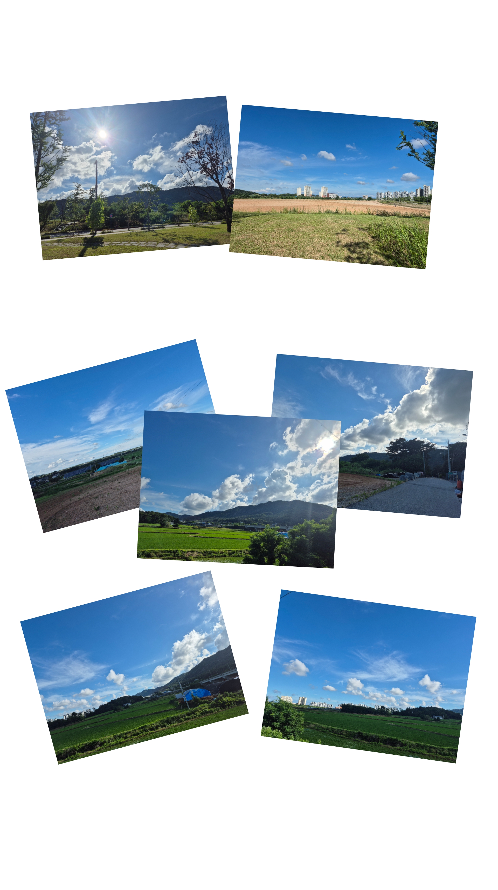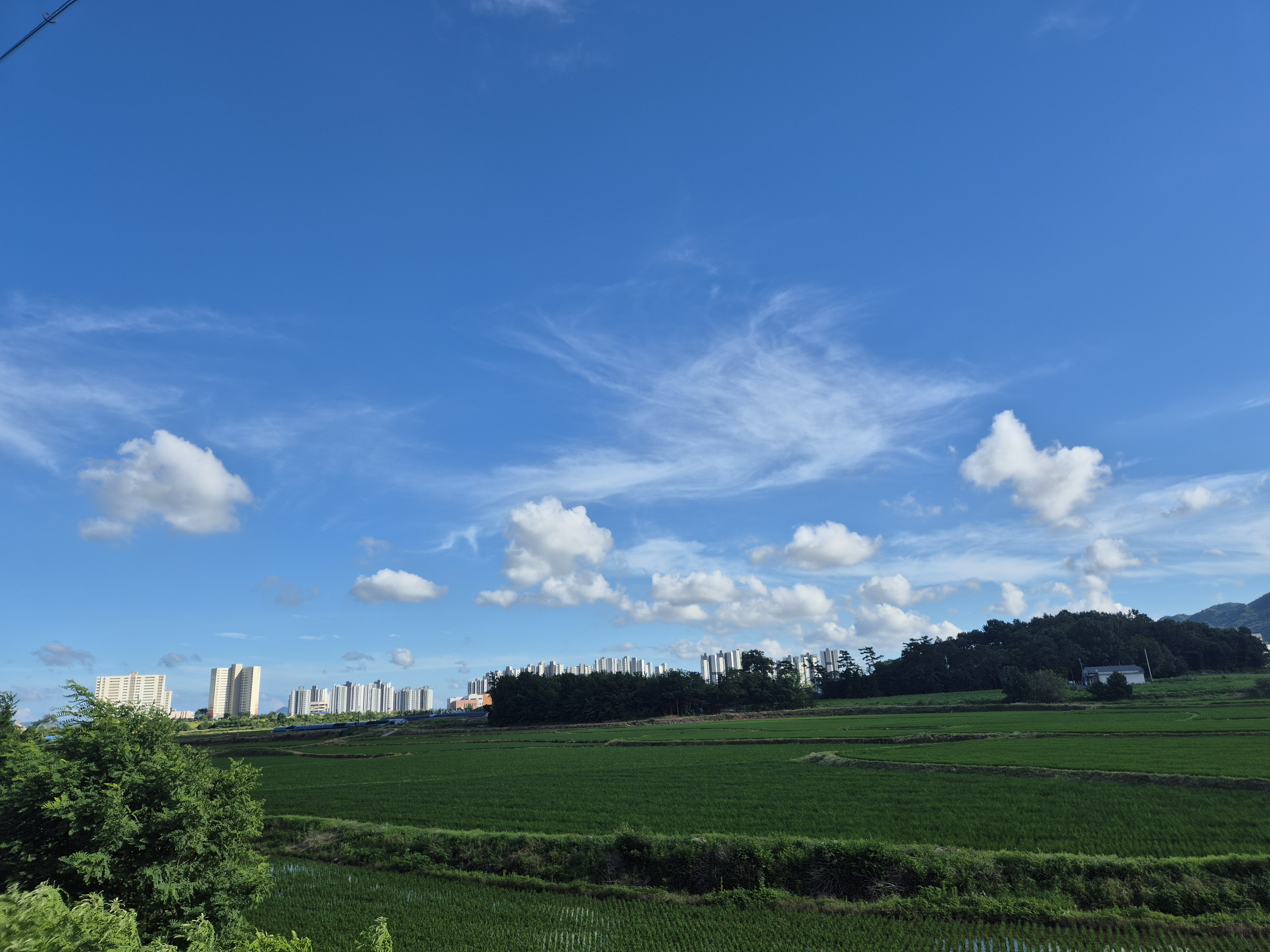 멀리 산능선에 구름이 걸리고 벼는 하루가 달리 푸르빛을 띠고는 무럭무럭자란다.