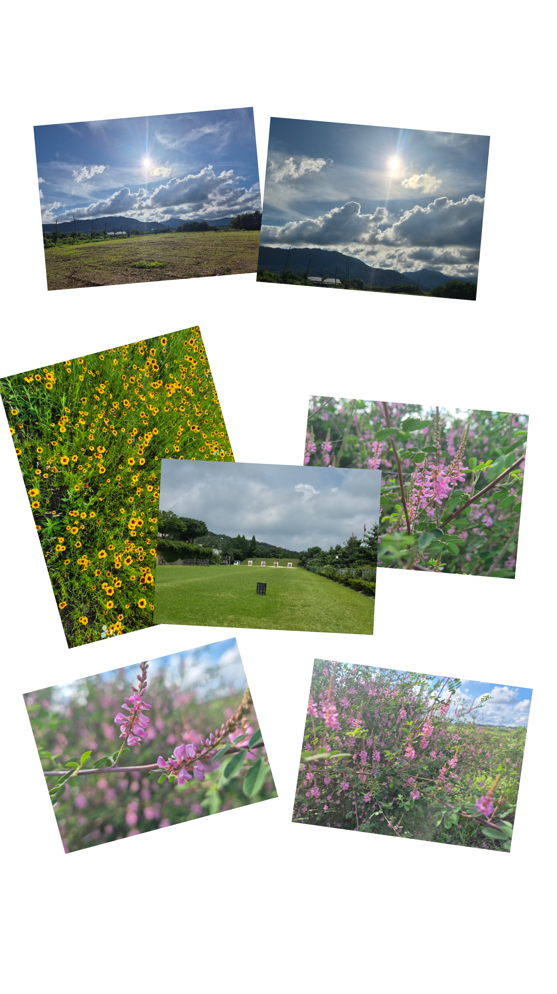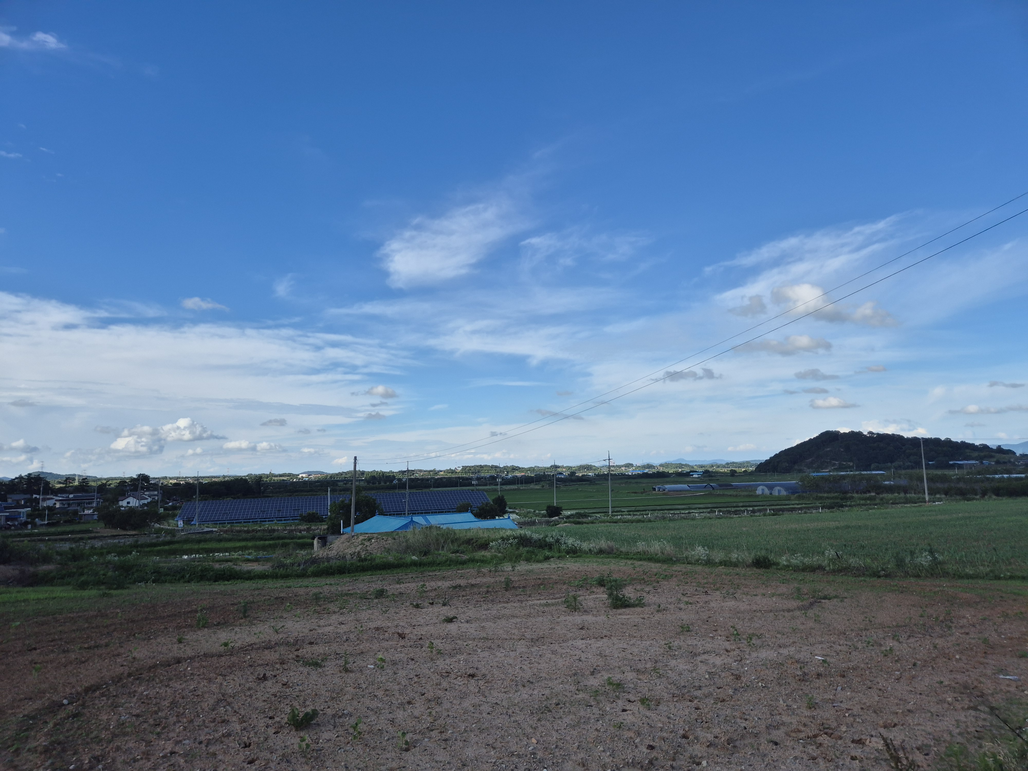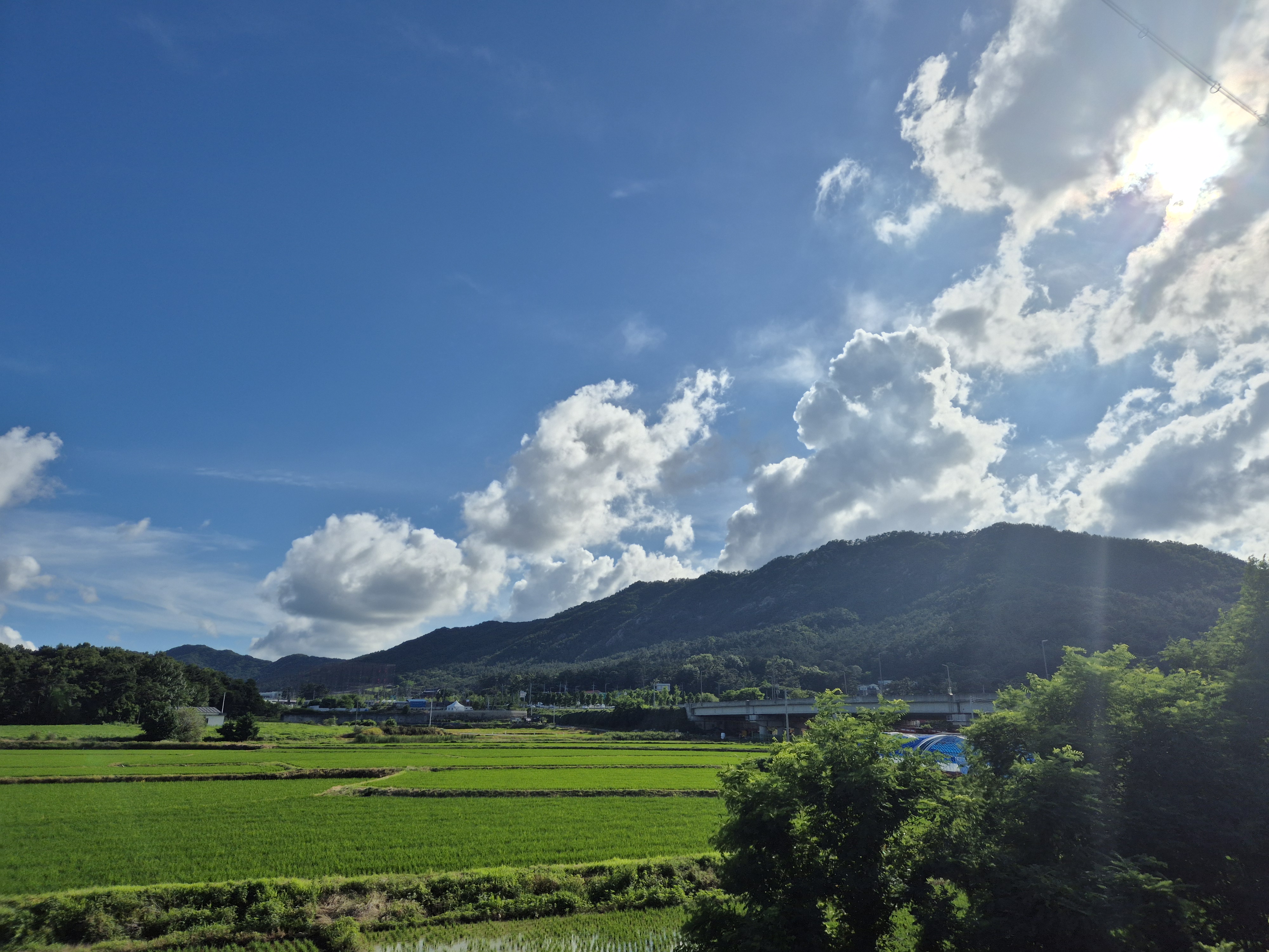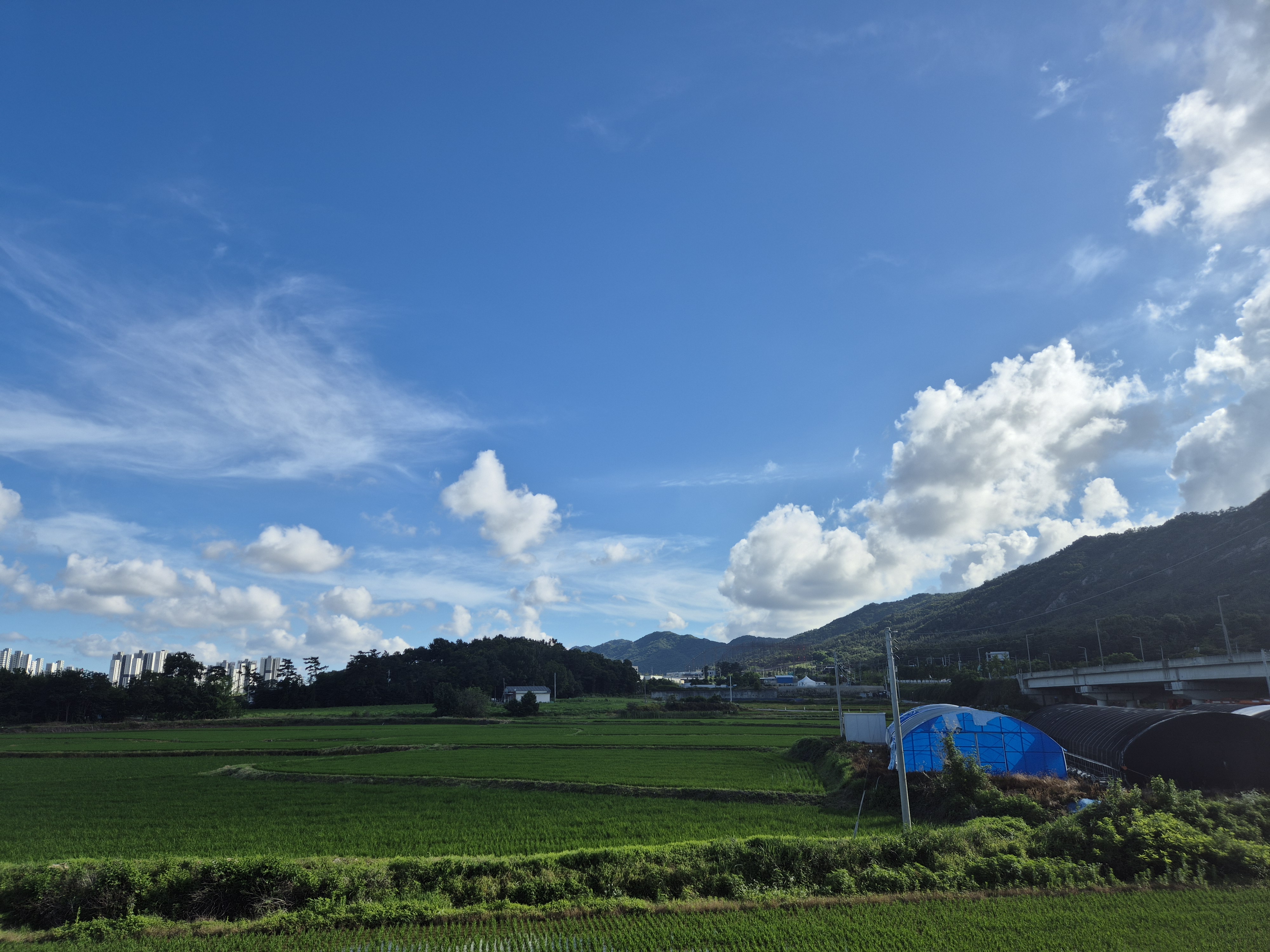 멀리 산능선에 구름이 걸리고 벼는 하루가 달리 푸르빛을 띠고는 무럭무럭자란다.