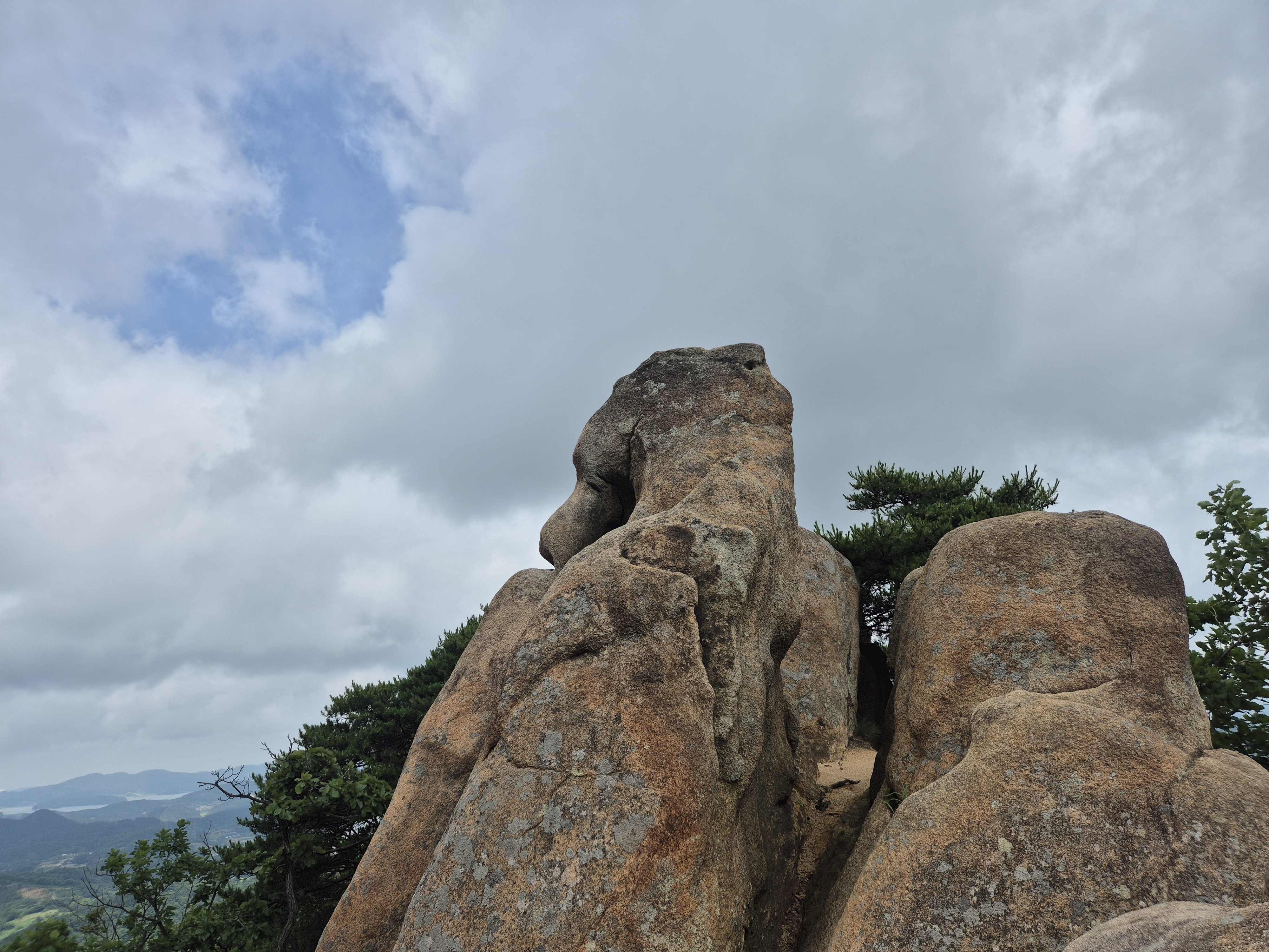 바윗길 경사를 올라 2봉을 지나고 다시 3봉을 오르니 정상이다.
