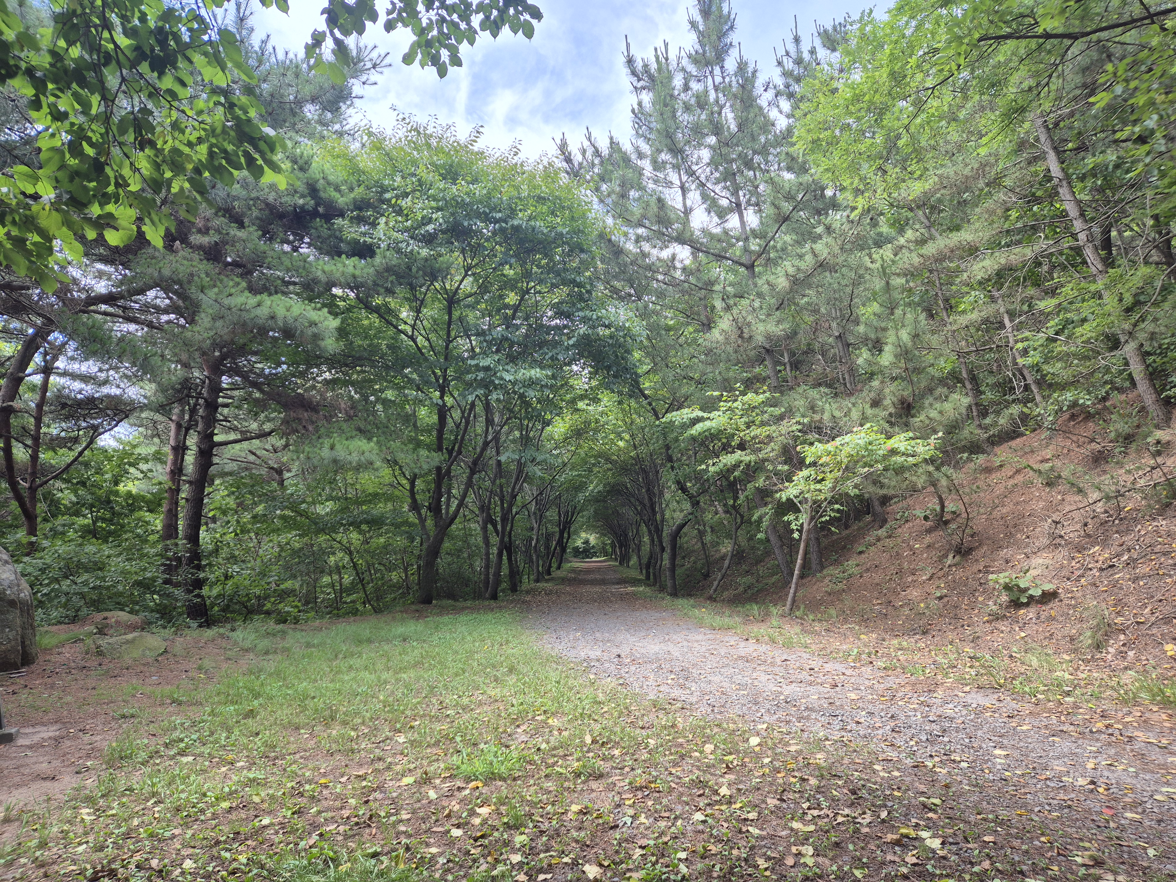 임도길도 한가롭고 숲이 우거져 걸을만하며,도중에 라이딩하는 사람과 러닝을 하는 사람,