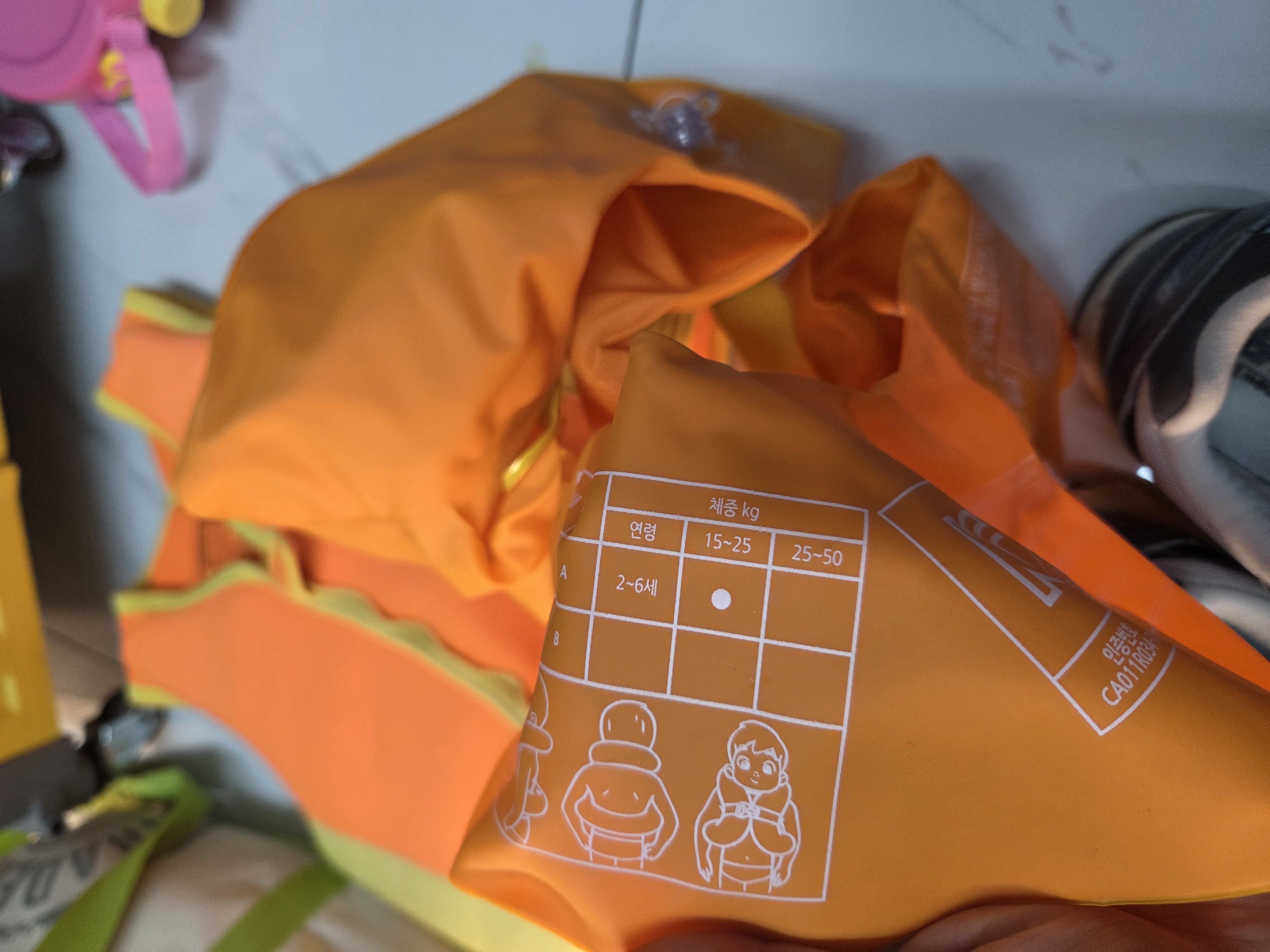 횡하니 올라가니 문앞에 물놀이 용품이 3개의 봉투에 깨끗하게 담겨져있다.