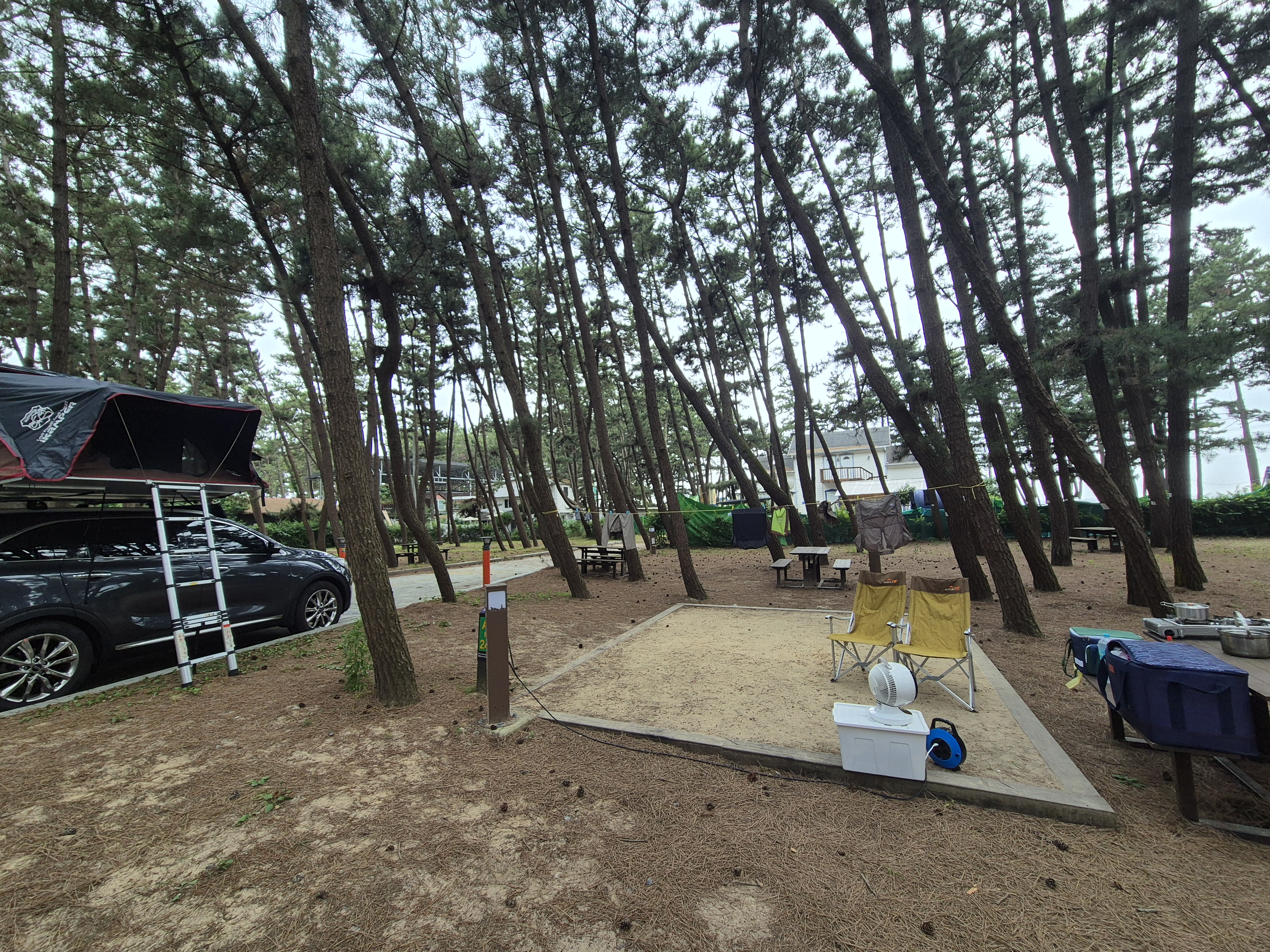 국립공원 몽산포자동차야영장을 들어가니 예약한 사이트에 전기가 들어오지않은 곳이란다.