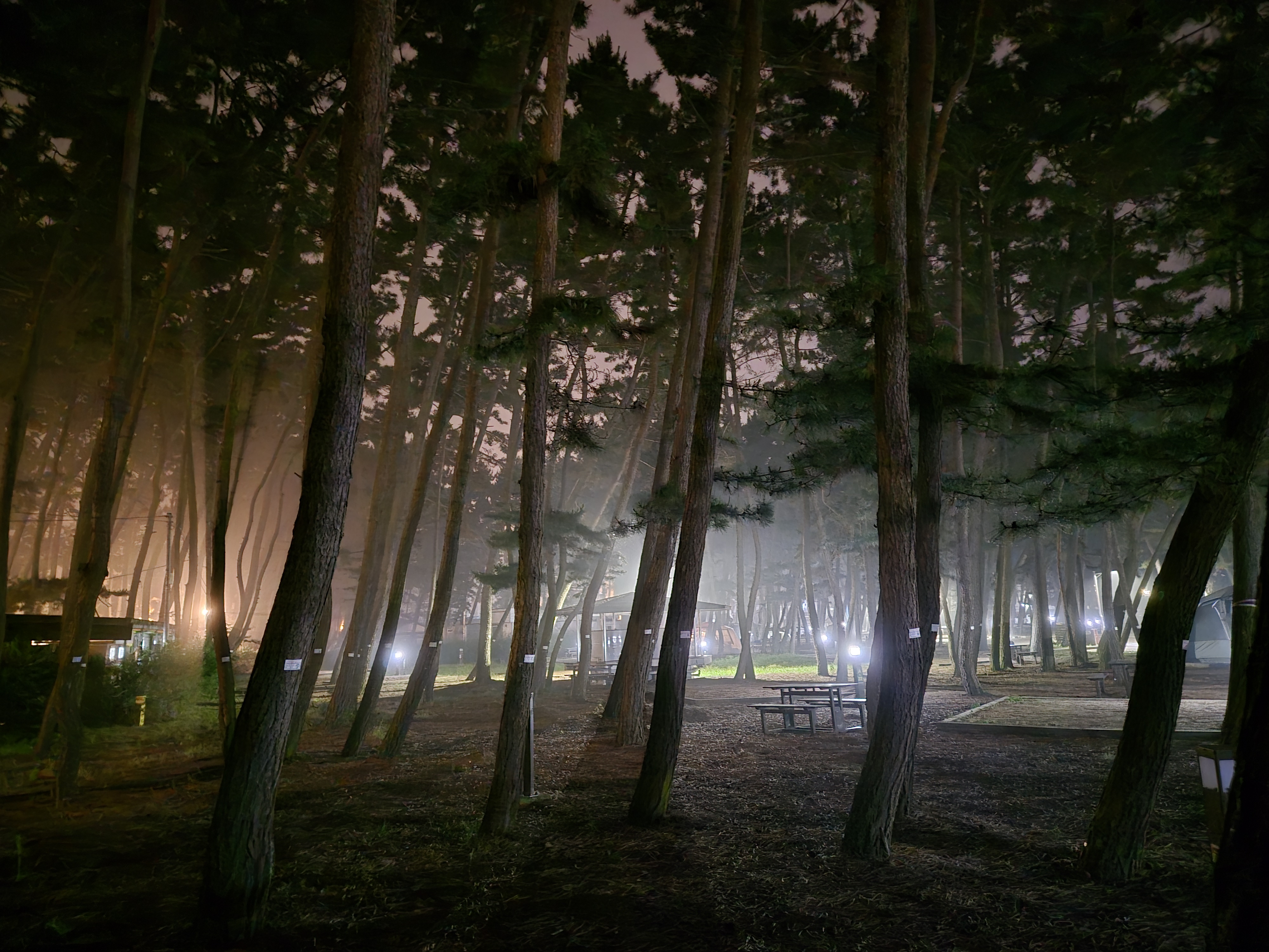 고요한 해변의 소나무숲에서 분위기에 취하고 한잔술에 취해 시간을 보낸다.