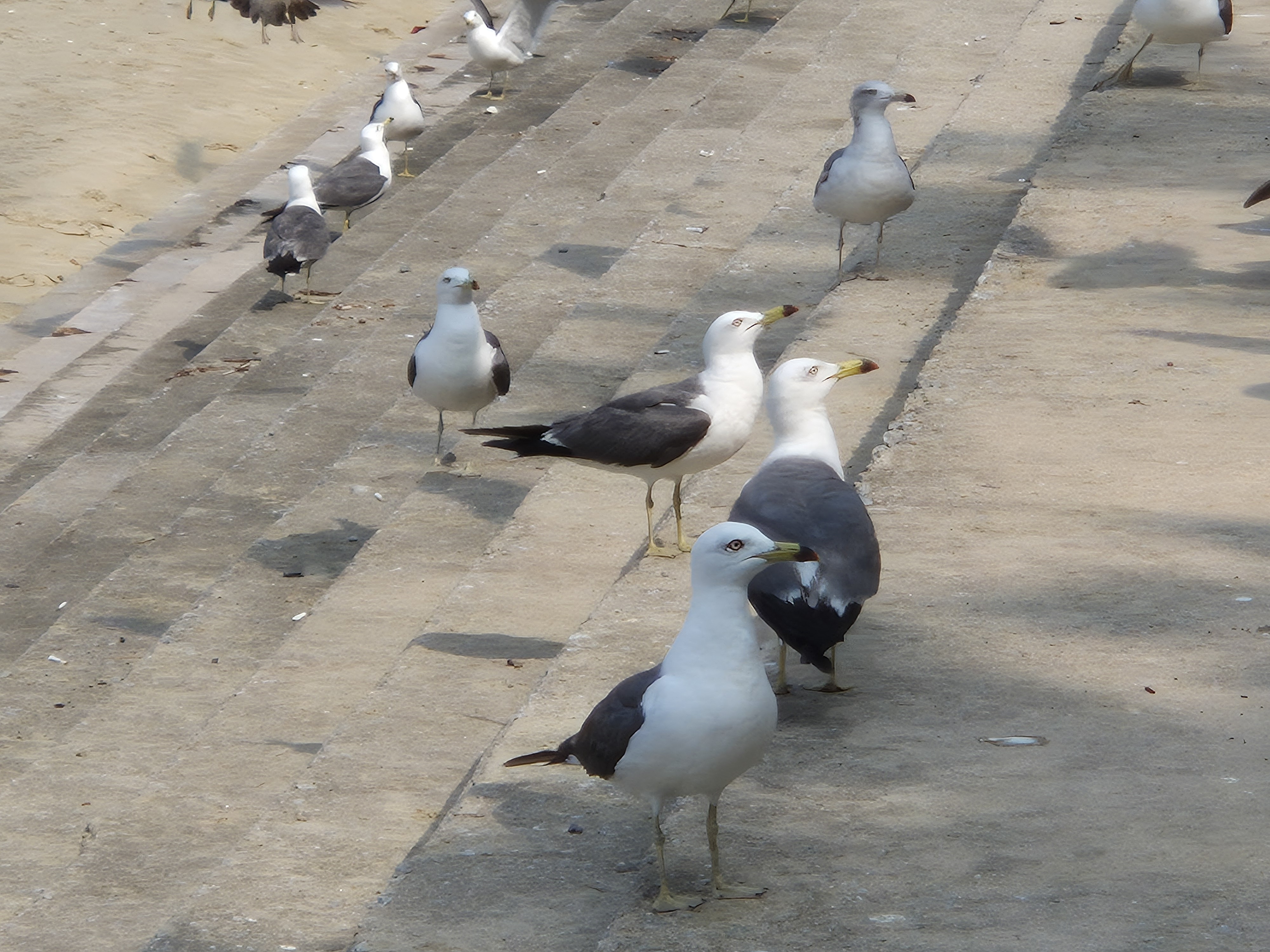 아이들이 주는 새우깡에 수많은 비둘기떼들이 모여든다.