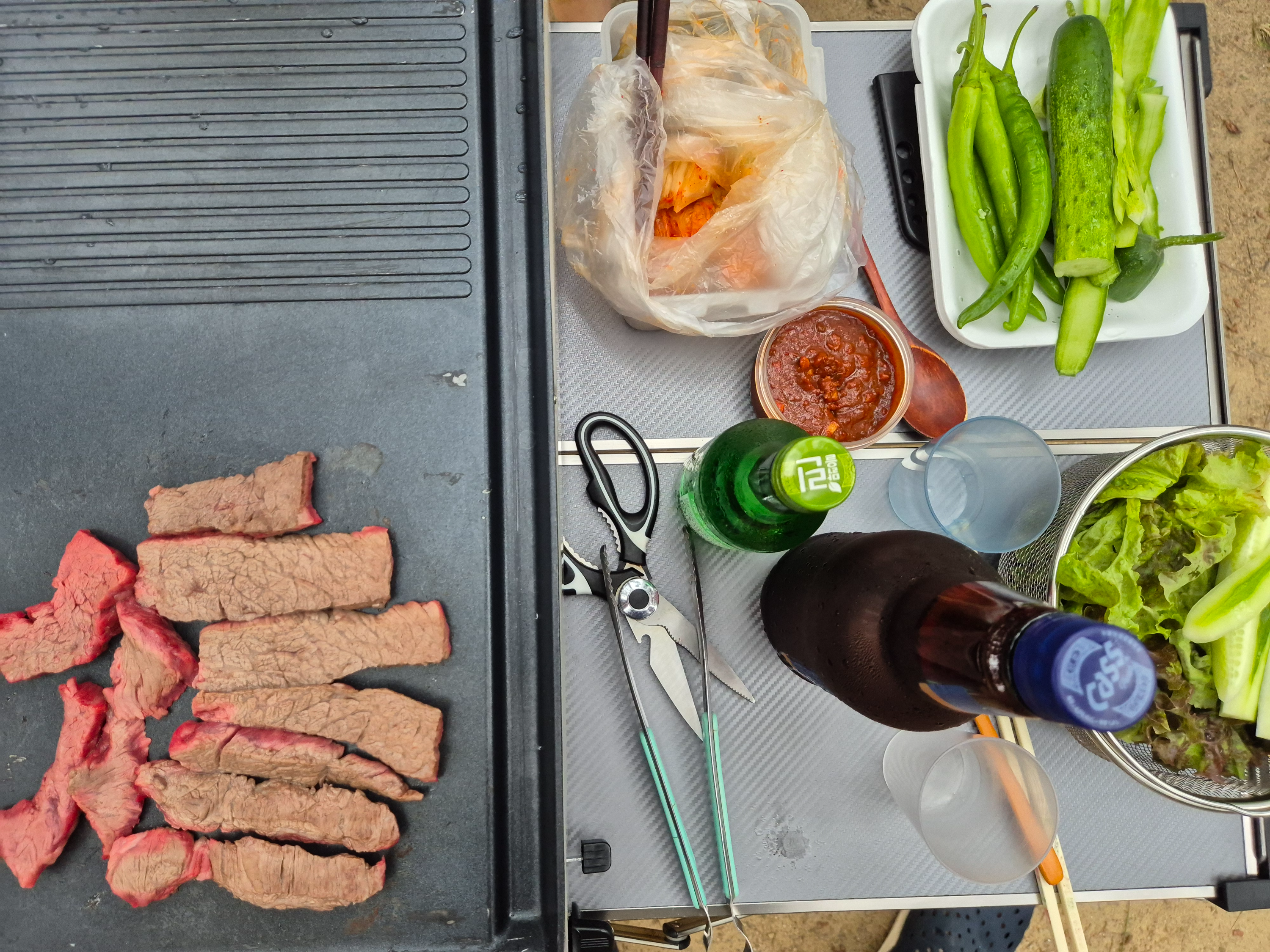 캠핑의 묘미는 고기구워 술한잔을 마시며 시간을 보내는 것.
