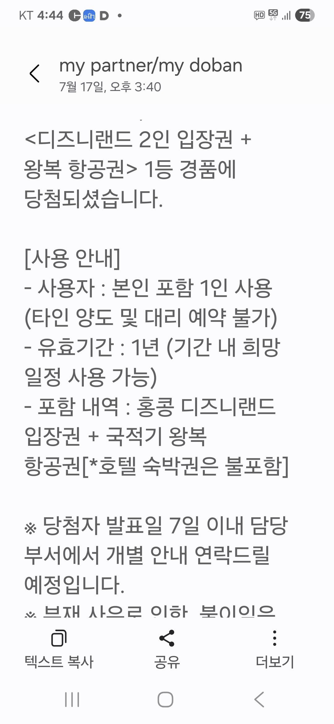 처음에는 디즈니랜드 입장권에 왕복항공권이라 '아싸!~~'를 외쳤는데,자세히 보니 미국이 아니라