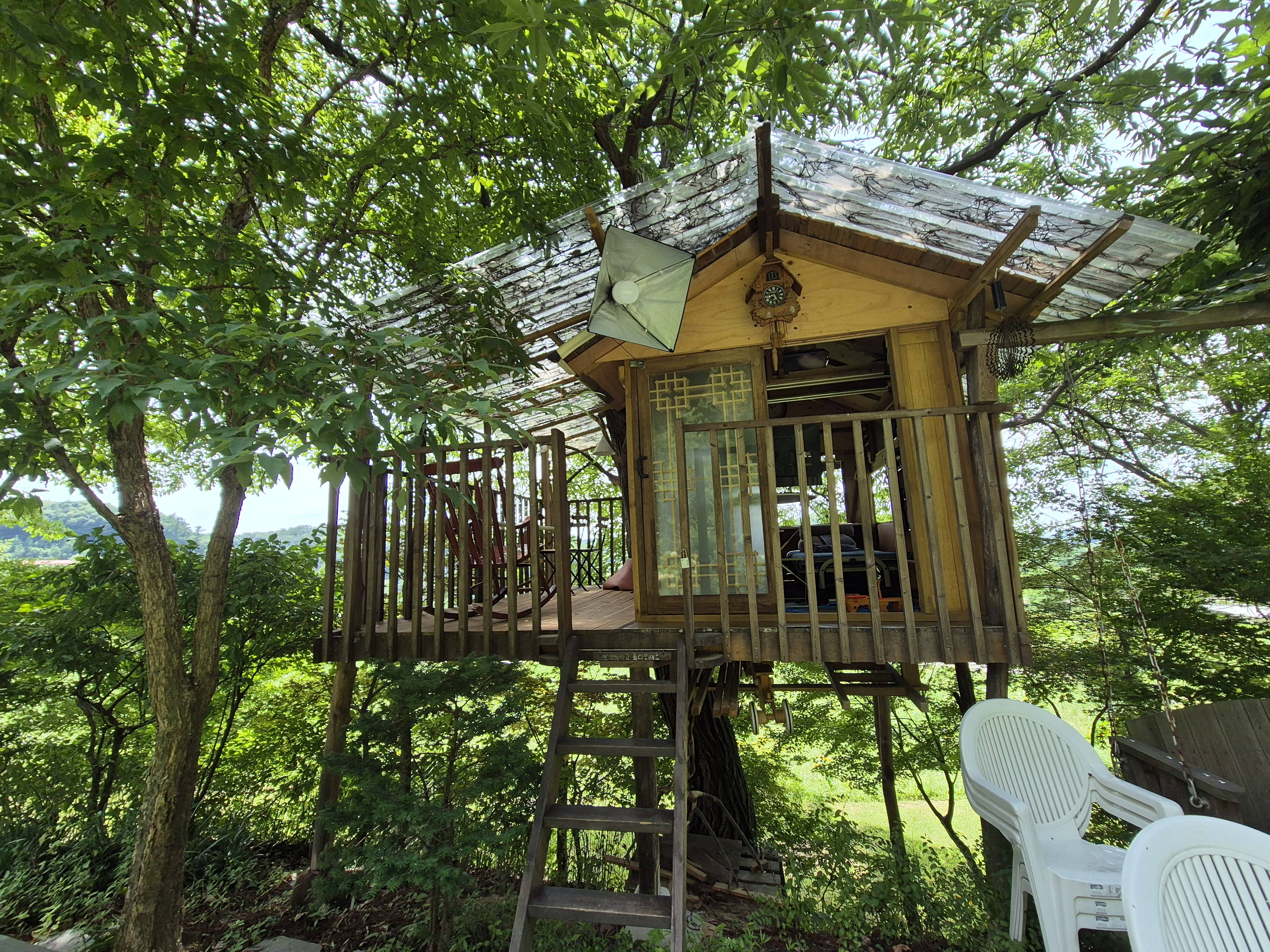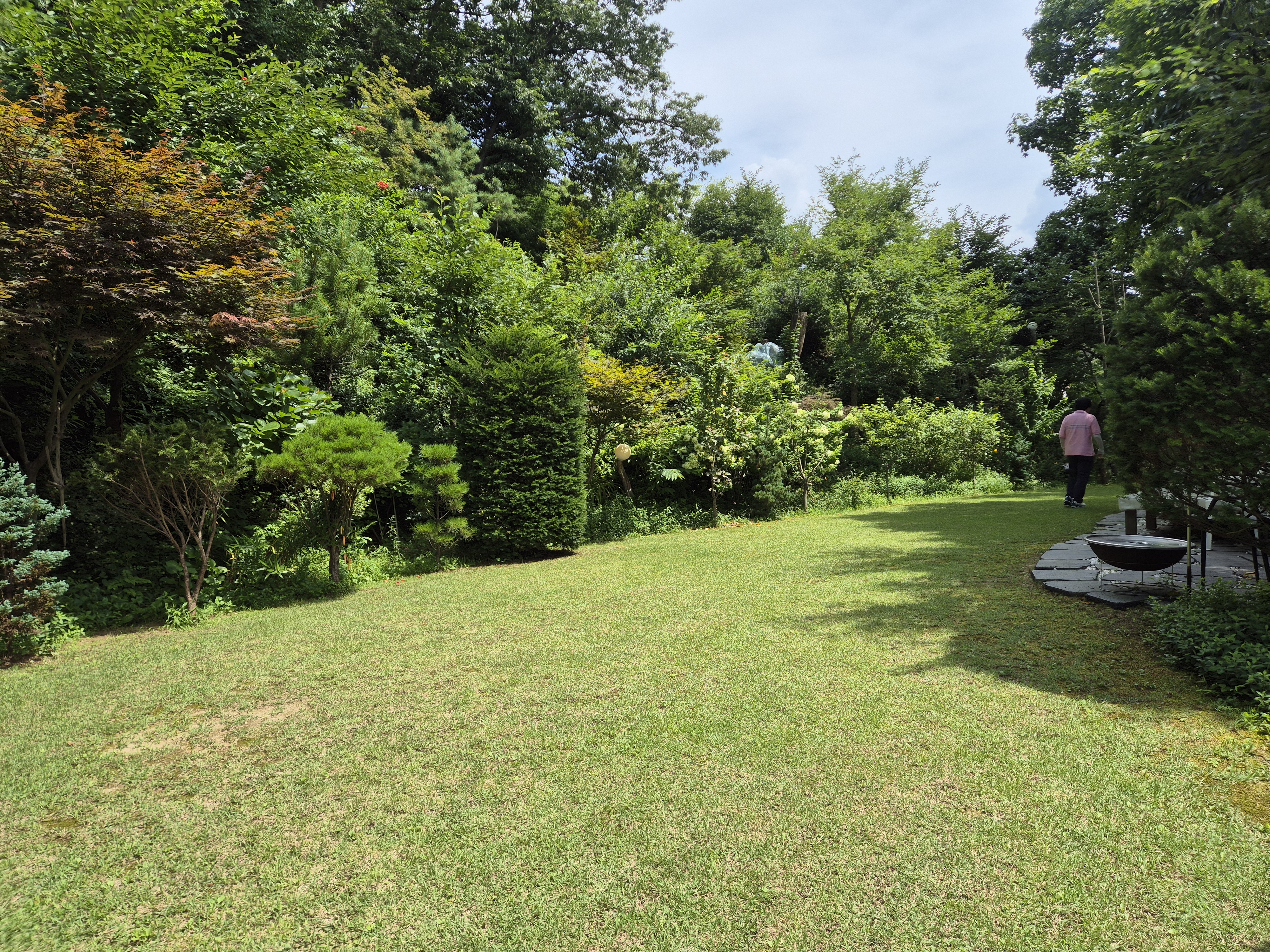 넓은 대지에 잔디정원과 농구장,나무위 쉼터등 아기자기하고 솜씨있게 지은 집을 둘러보고는