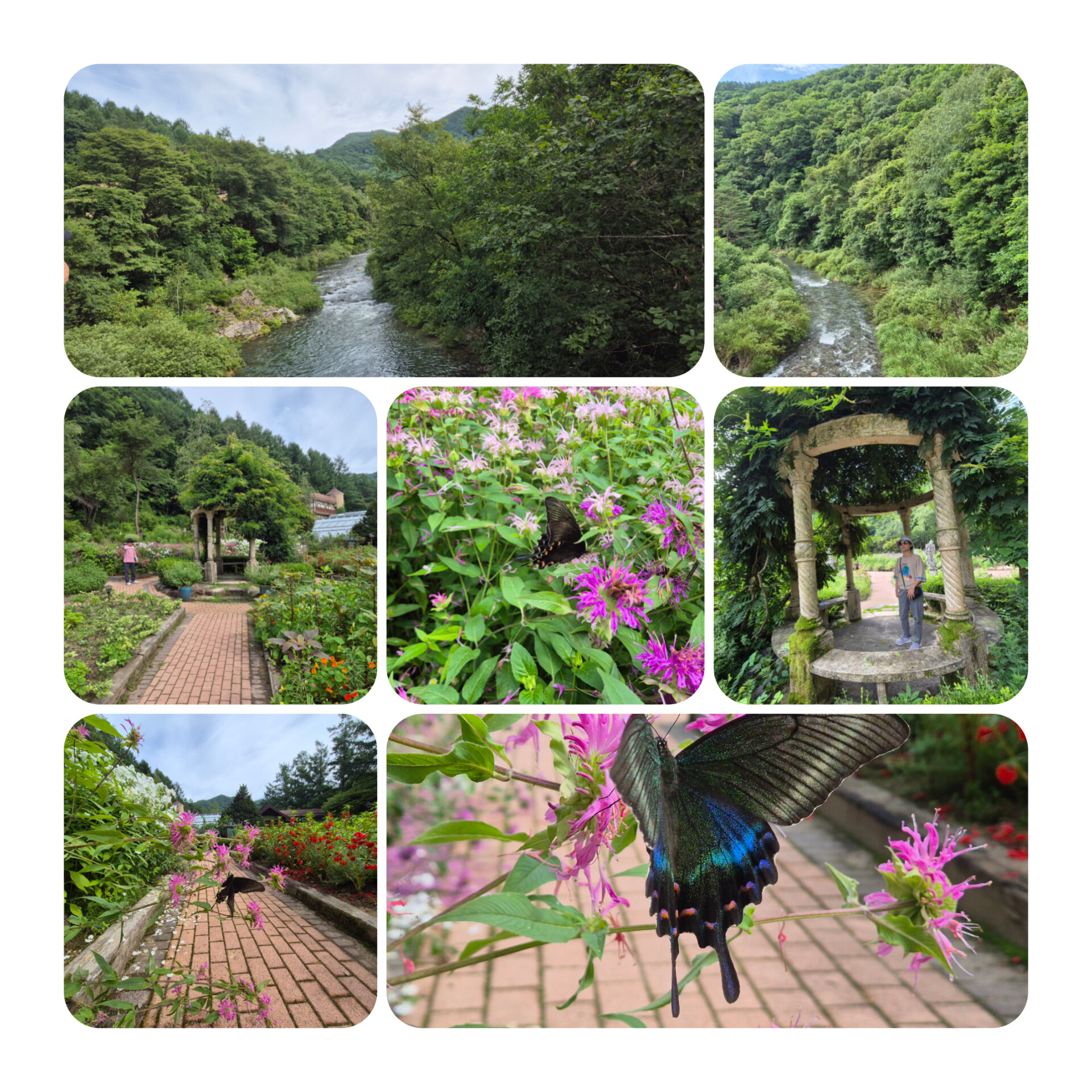 개인이 수십년에 걸쳐 가꾸고 다듬은 농원은 각가지 화초등이 피어 몰려드는 나비와