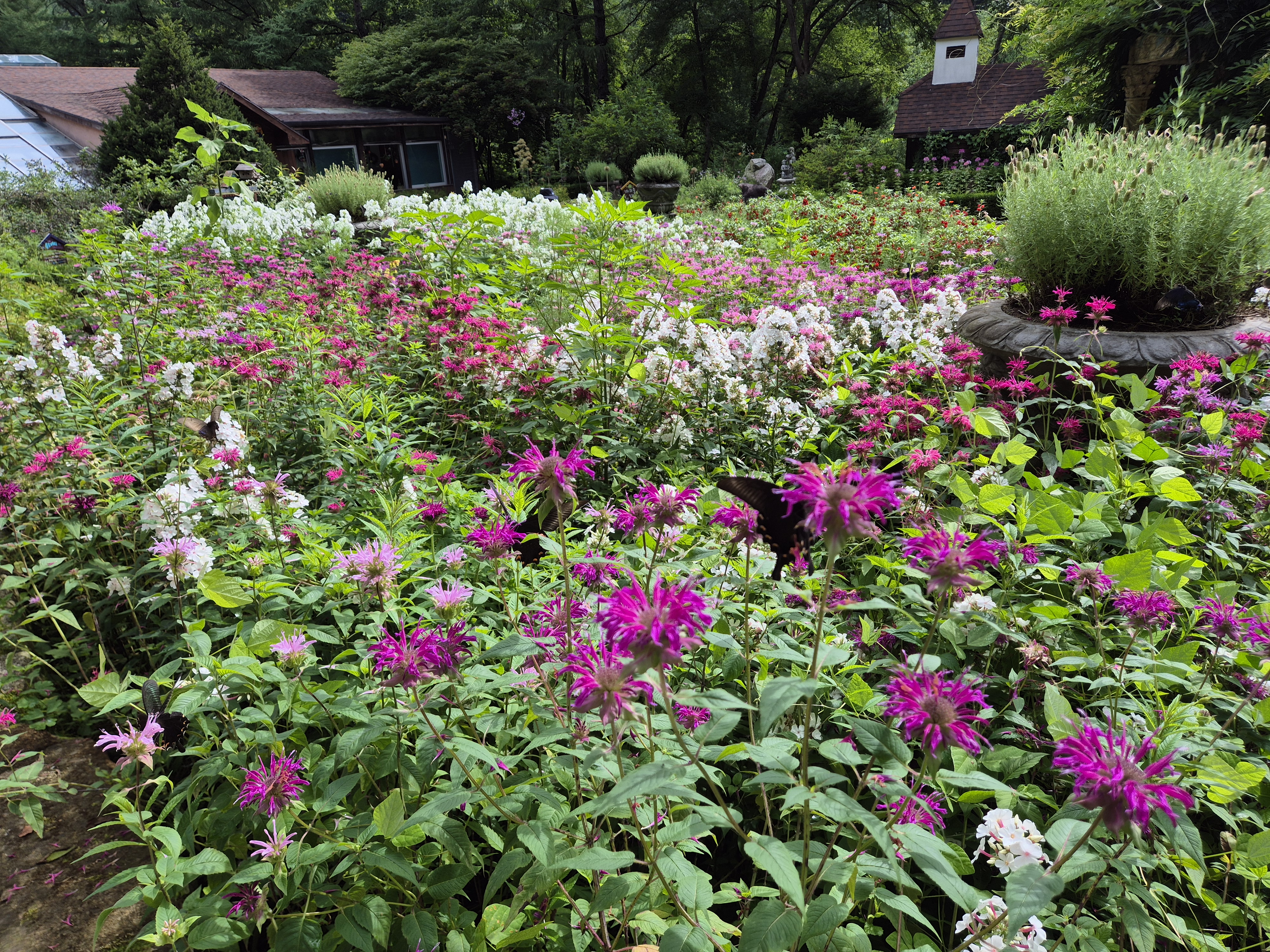 개인이 수십년에 걸쳐 가꾸고 다듬은 농원은 각가지 화초등이 피어 몰려드는 나비와