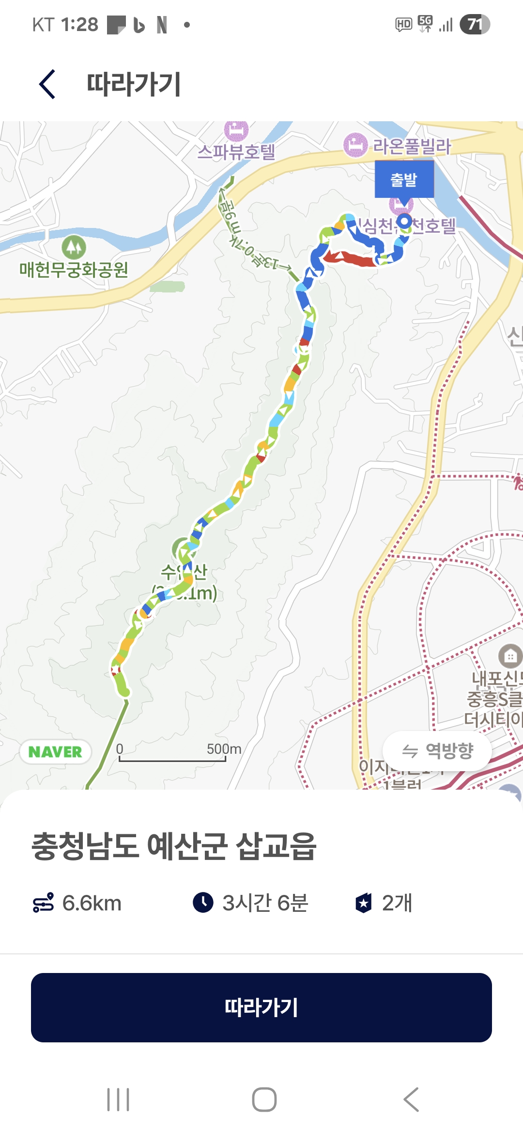 더운날 느릿느릿 서행으로 즐긴 산길을 걷고 내려서니 그래도 거의 4시간여에 7키로 길을 걸었다.