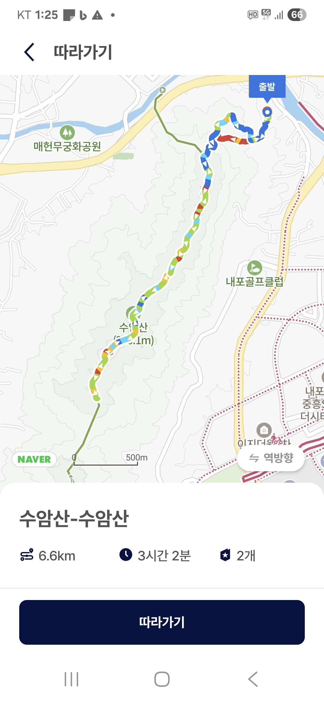 다시 땀으로 젖은 옷이되어버려 하산후 갈아입고는 귀가길에 들어선다.