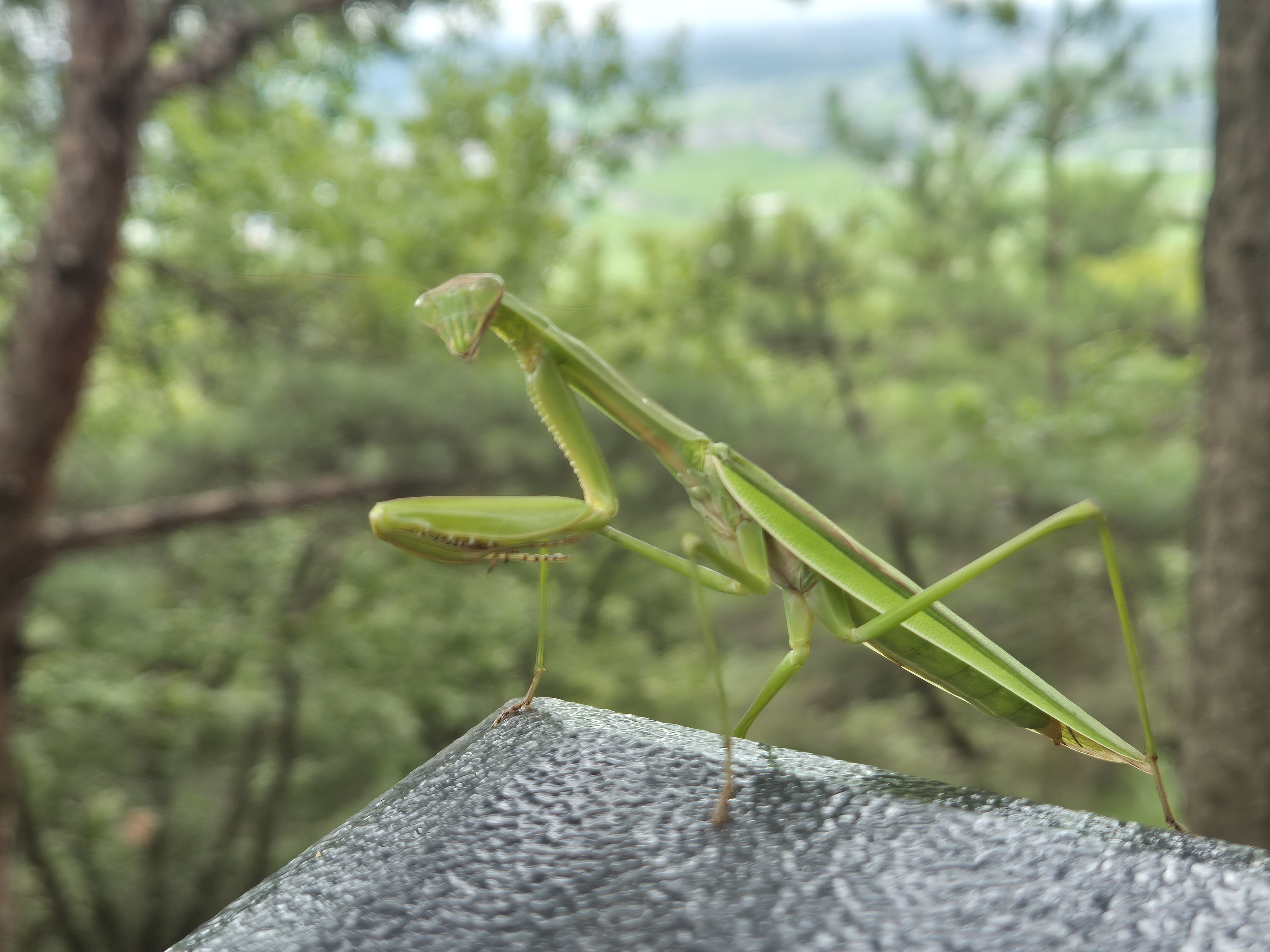 하단부 데크길에 커다란 사마귀한마리가 위엄있게 자리잡고는 경계태세를 취하고있다가