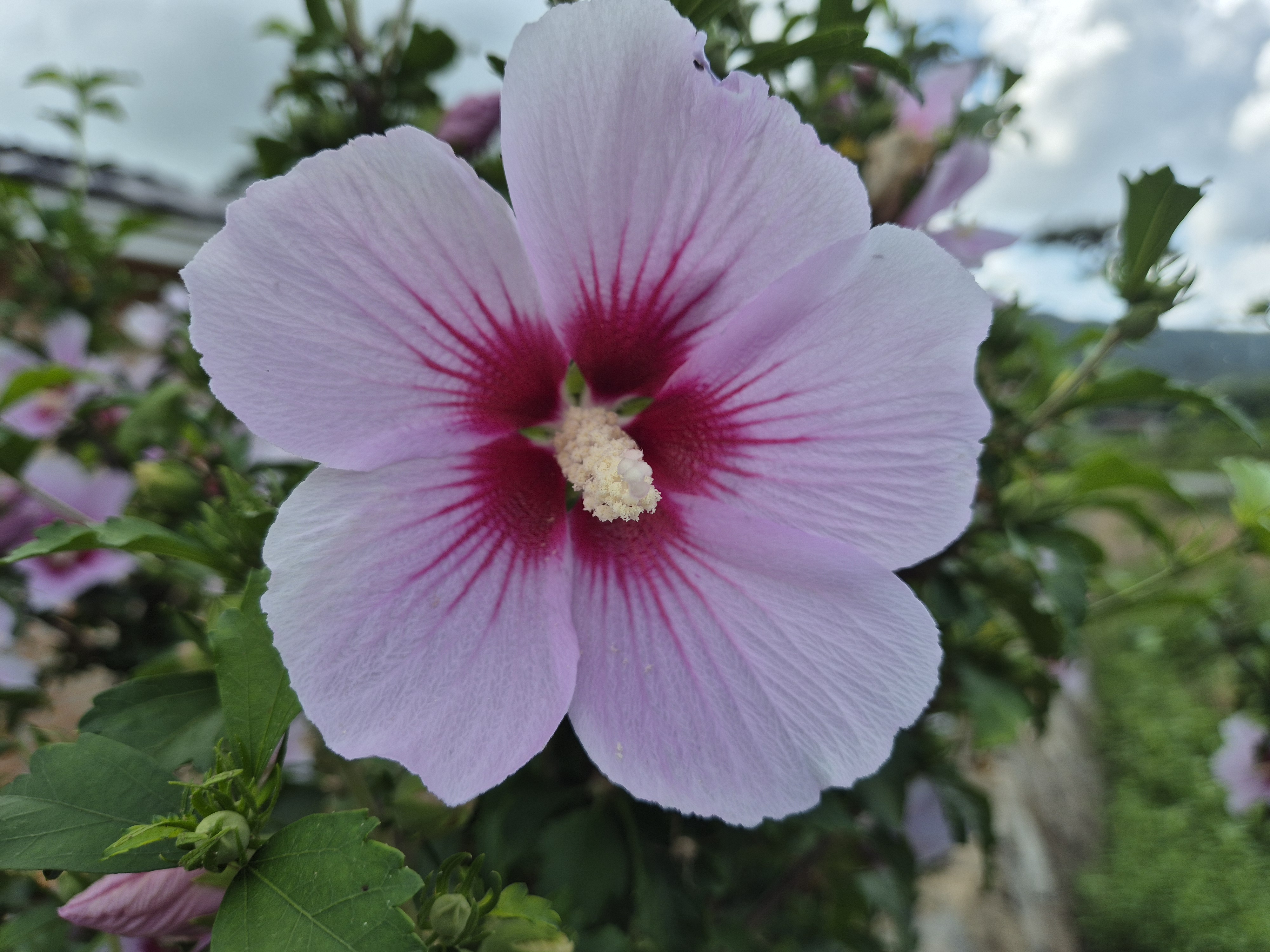 인근 무궁화동산에는 제철의 무궁화가 더위속에서 활짝 피어나있다.