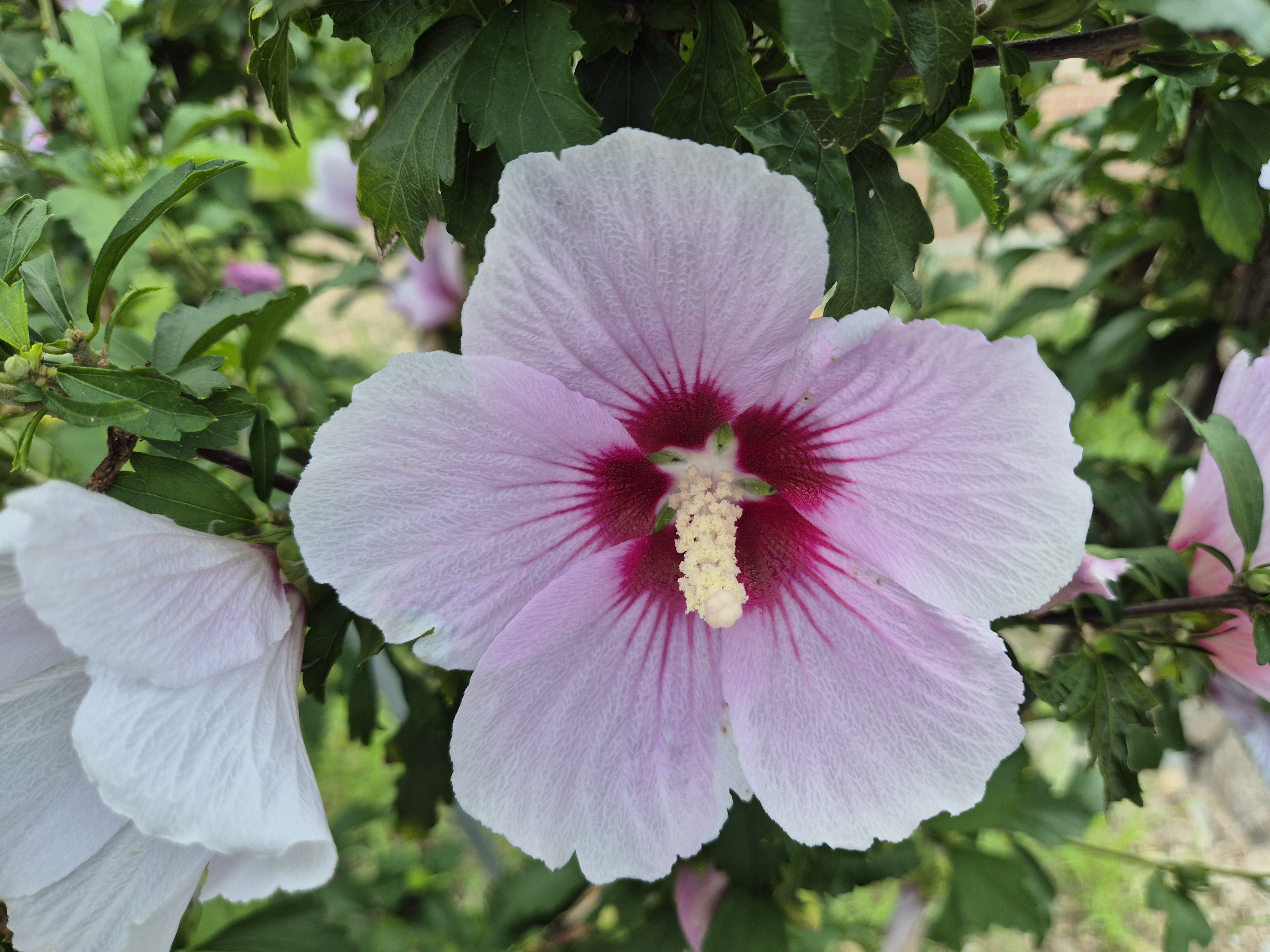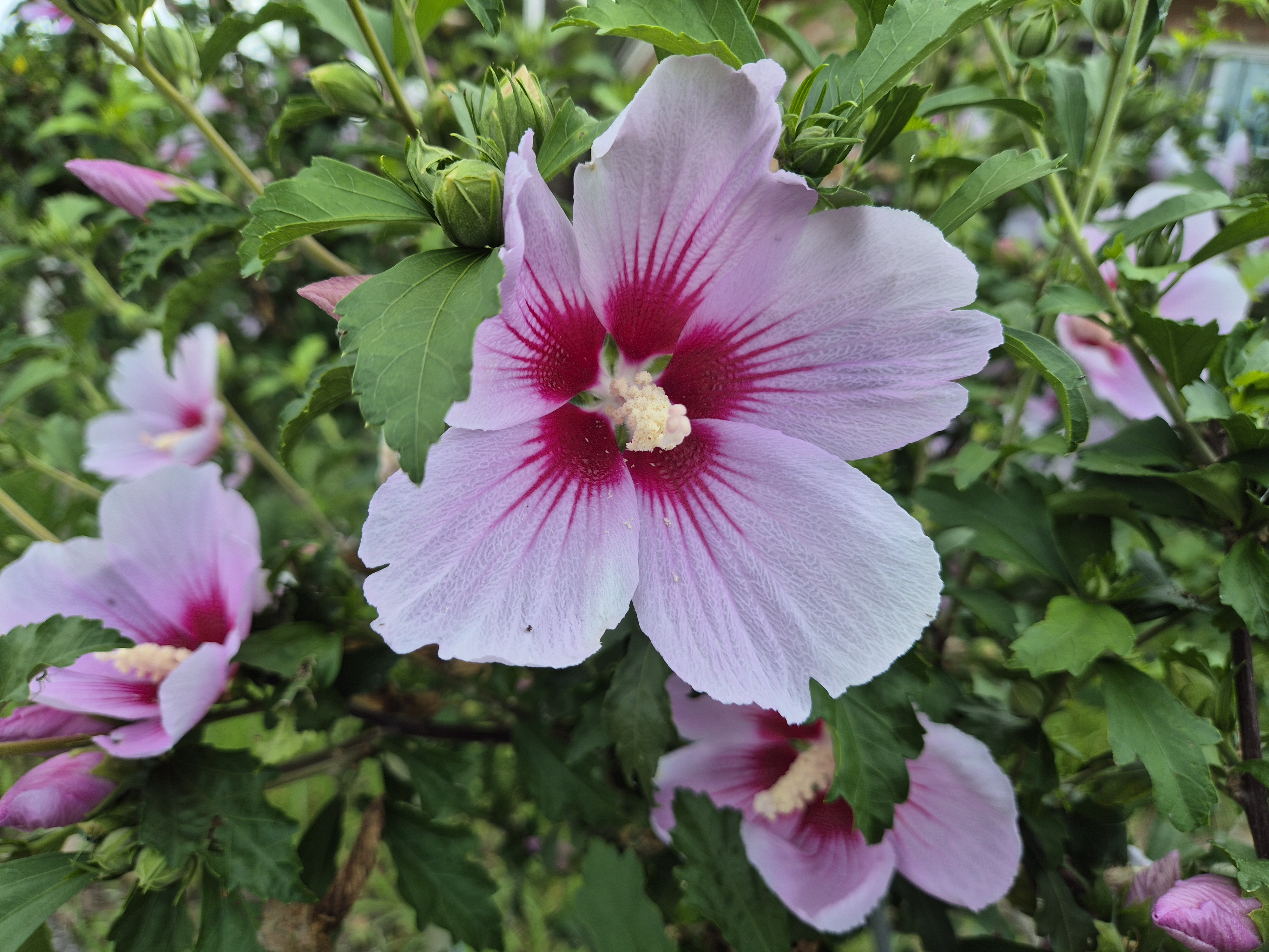 인근 무궁화동산에는 제철의 무궁화가 더위속에서 활짝 피어나있다.