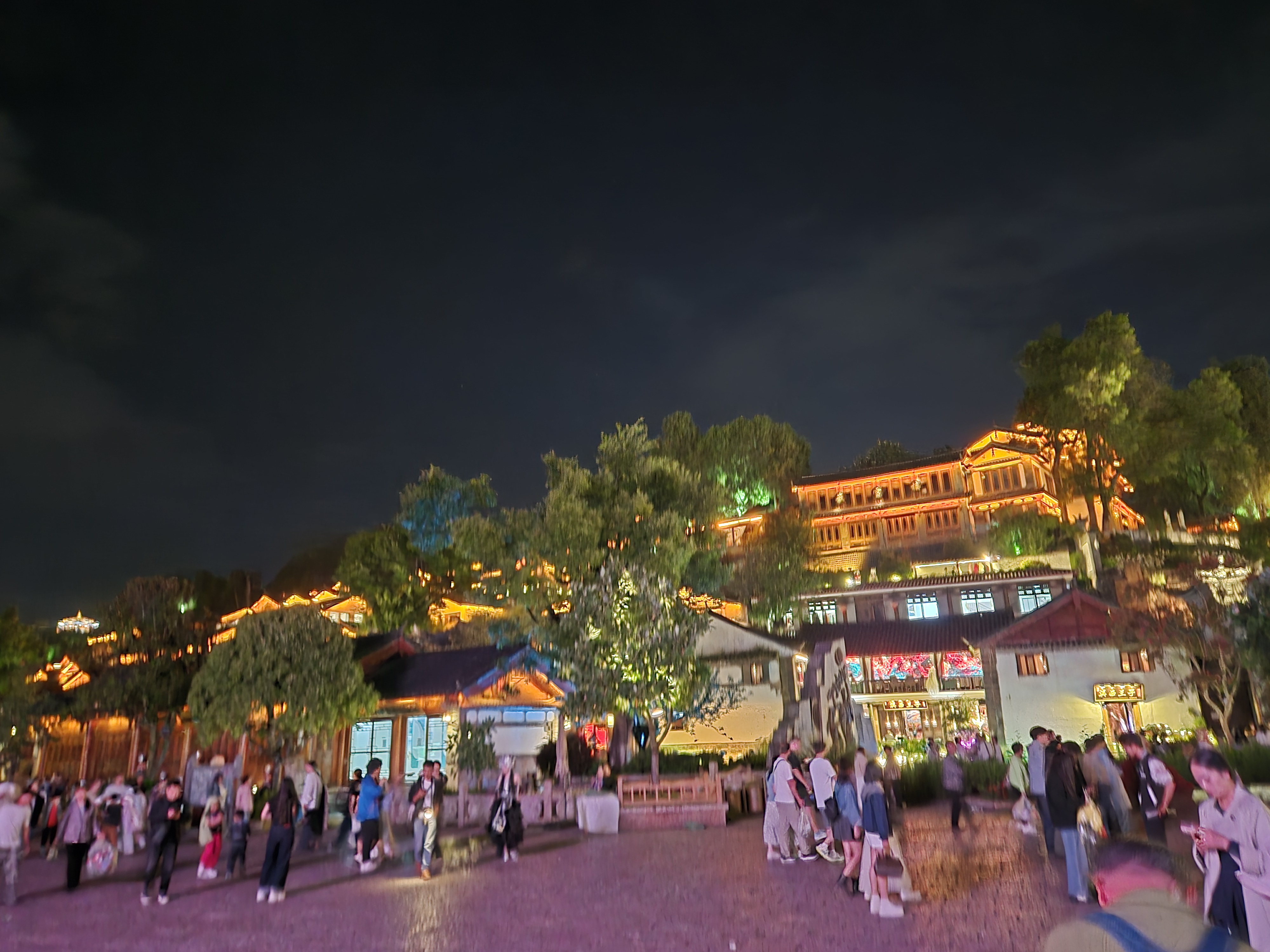 가이드가 제공하는 고량주를 마시며 시간을 보내다가 여강고성의 야경을 둘러보는데,