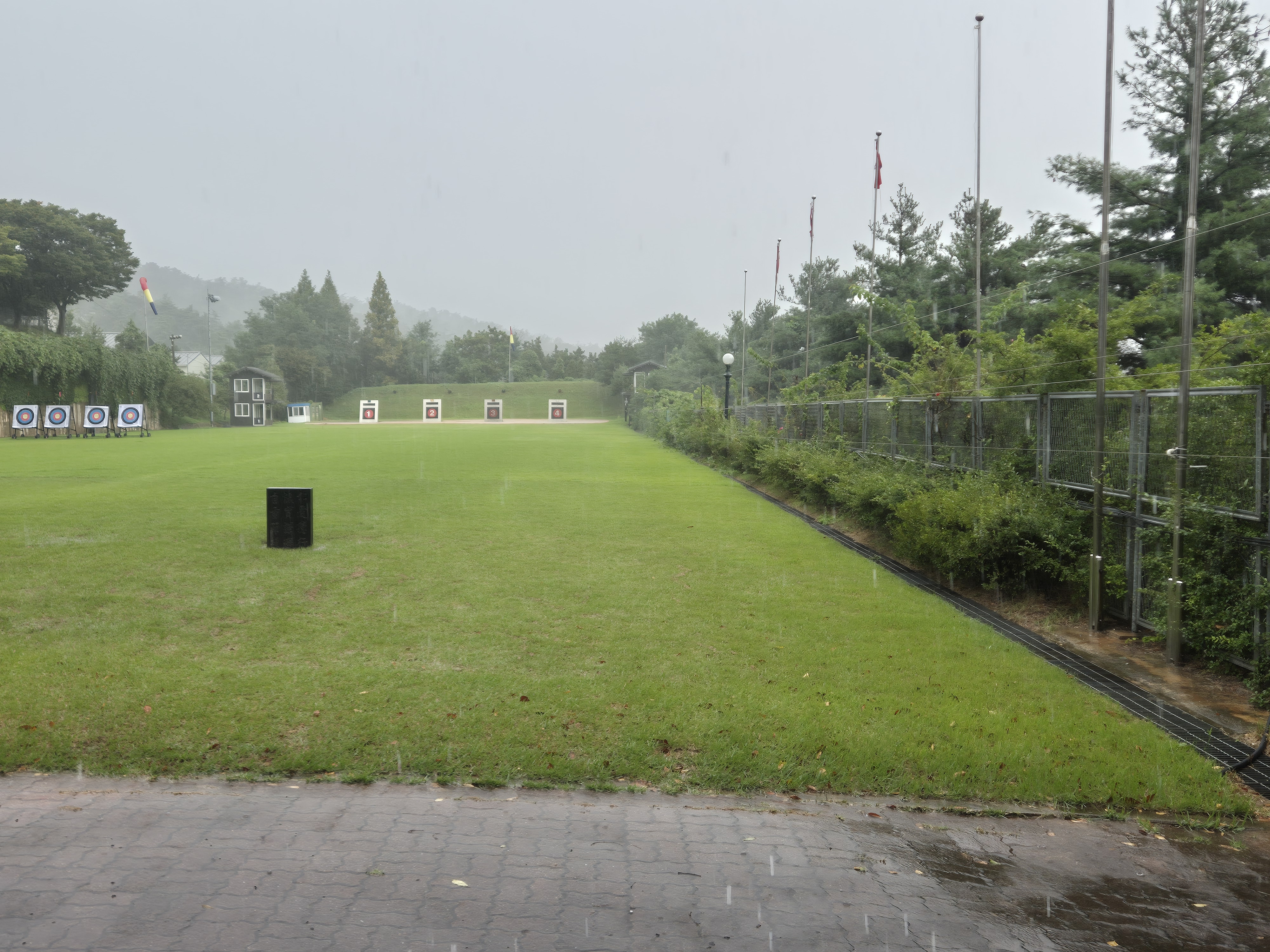 그리고는 활터의 잔디밭 곳곳이 물이 흥건하게고여 화살을 치우는 것을 보류하여야했다.