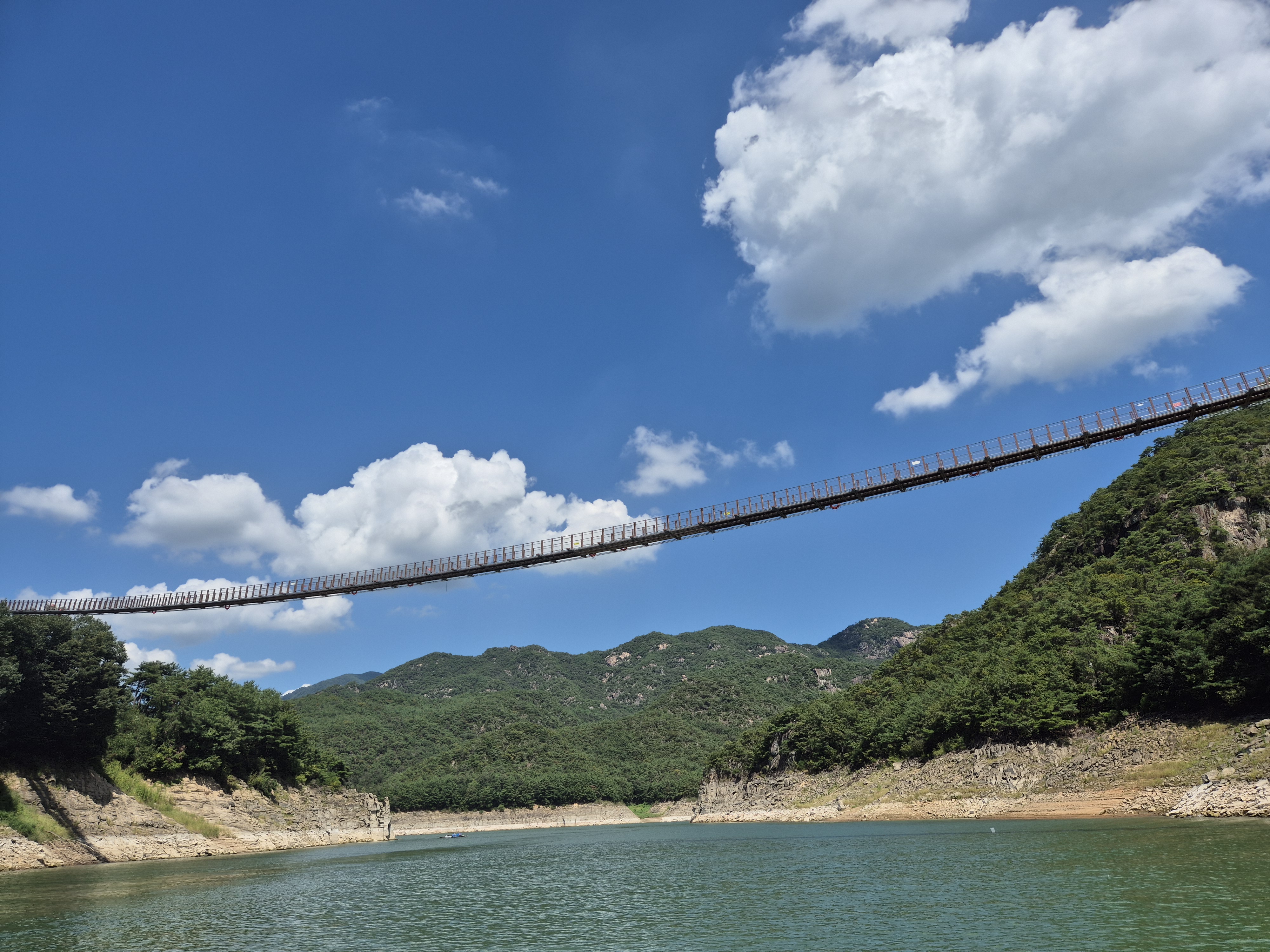 지난번 걸었던 옥순봉 출렁다리가 보이는 지점을 돌아 선착장에서 하선을 한다.