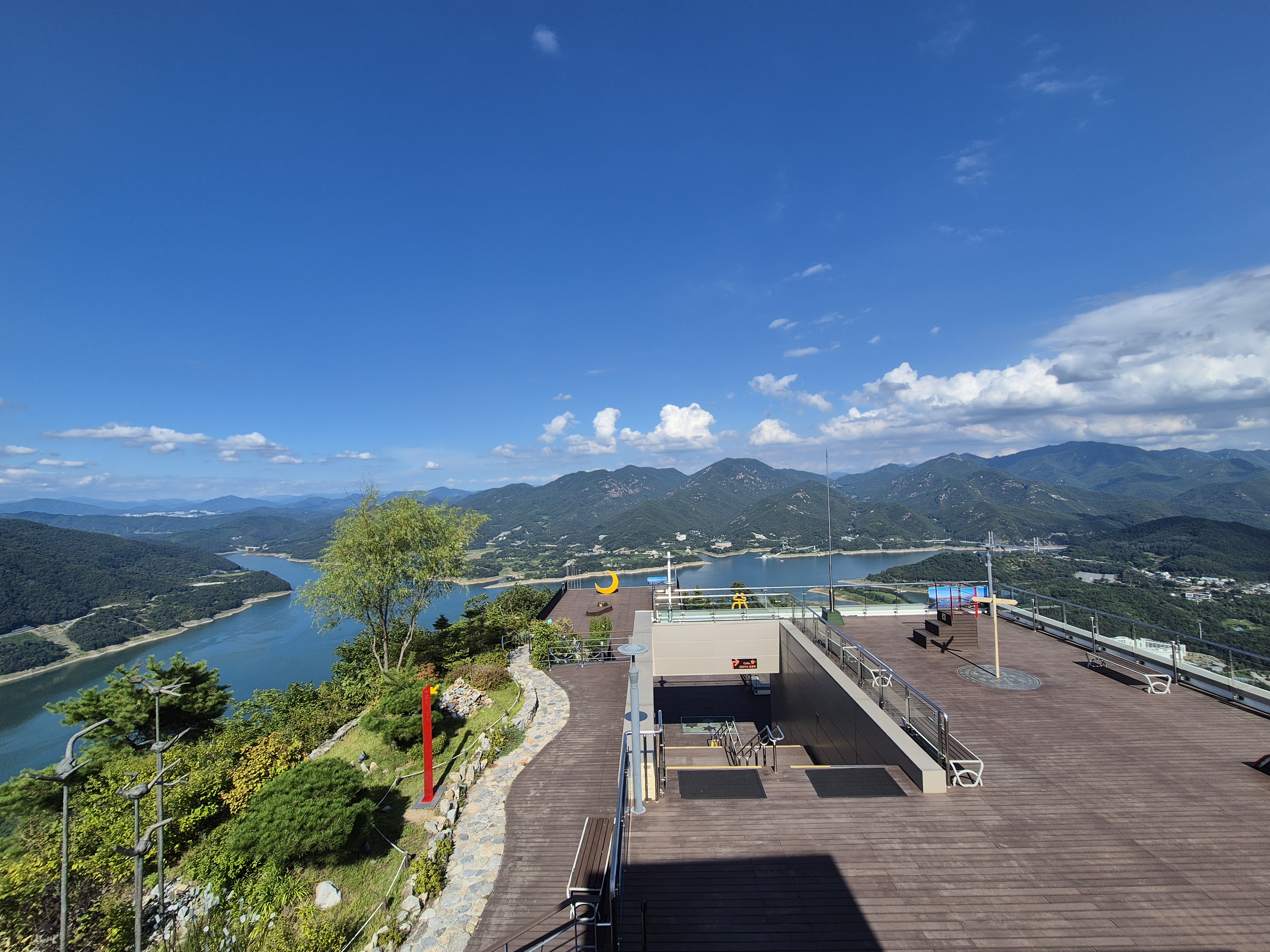 조망이되고 발아래는 충주호가 구비구비 펼쳐진다.