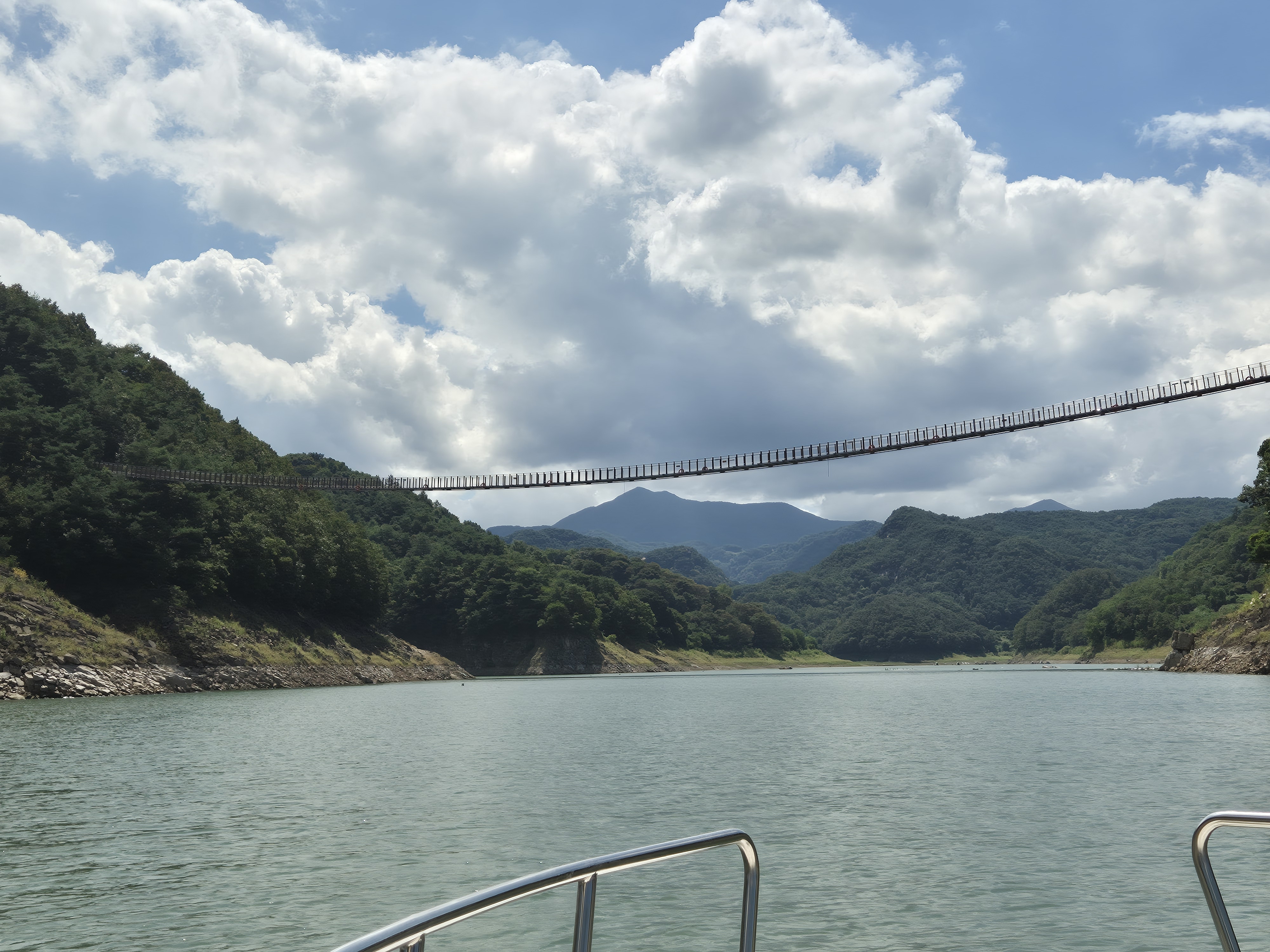 지난번 걸었던 옥순봉 출렁다리가 보이는 지점을 돌아 선착장에서 하선을 한다.