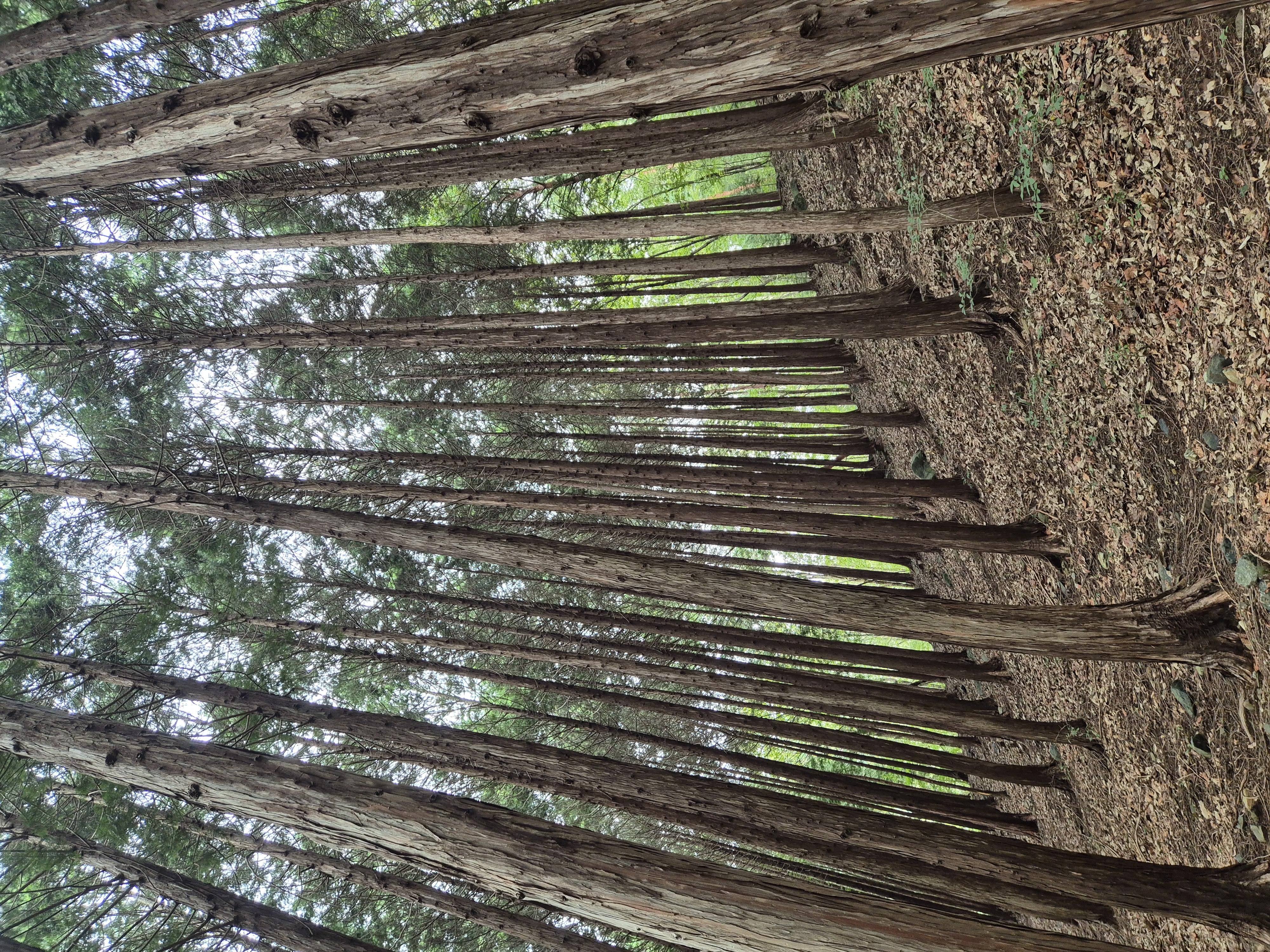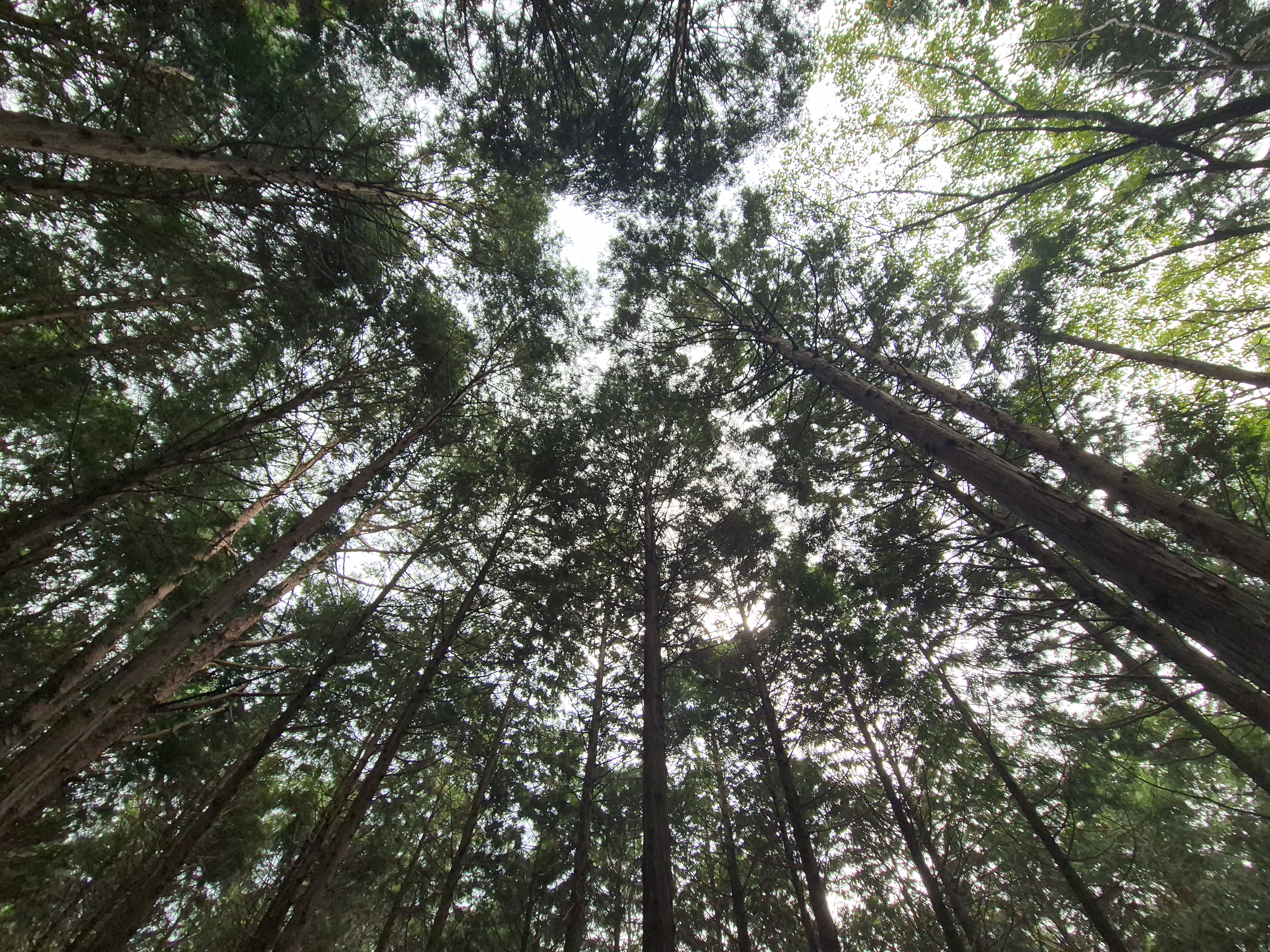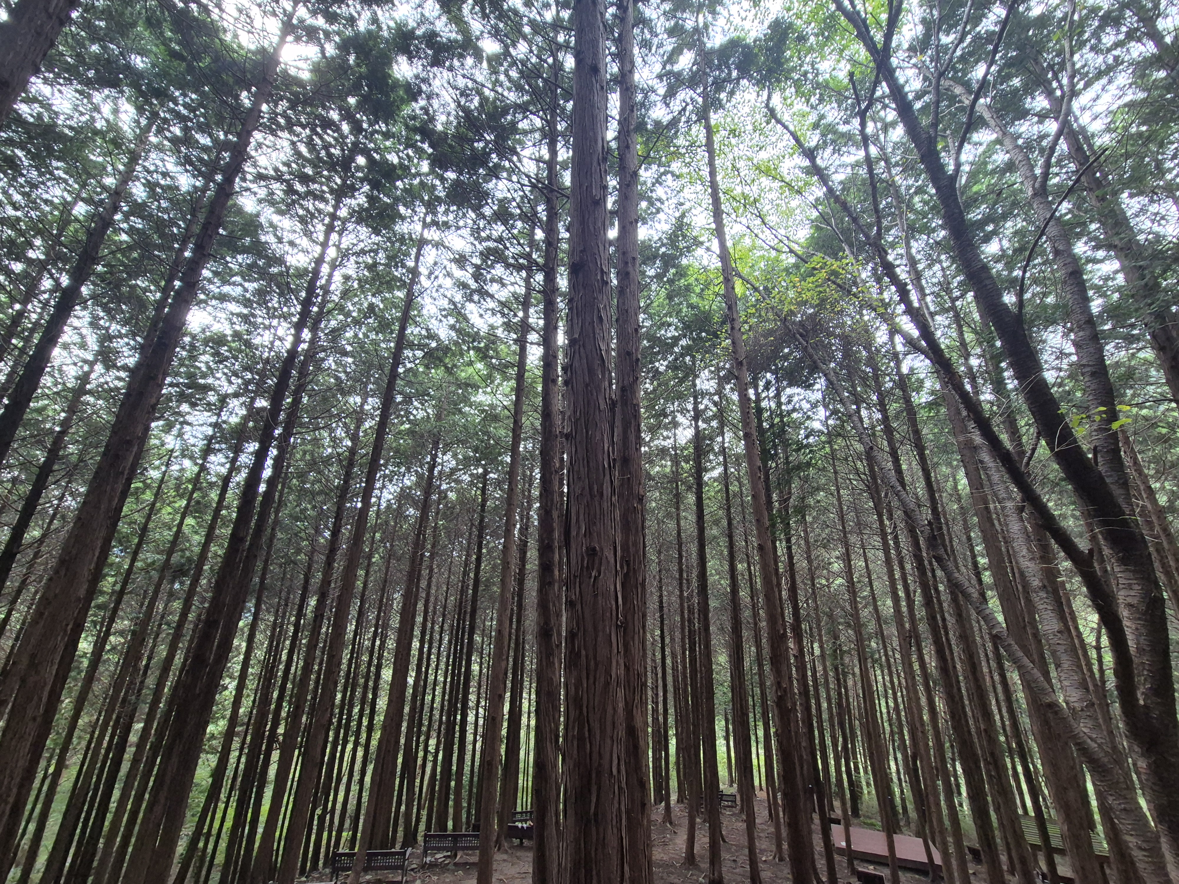 땀에 젖을 무렵 편백나무숲이 나타나니 거의 하산을 하였다.