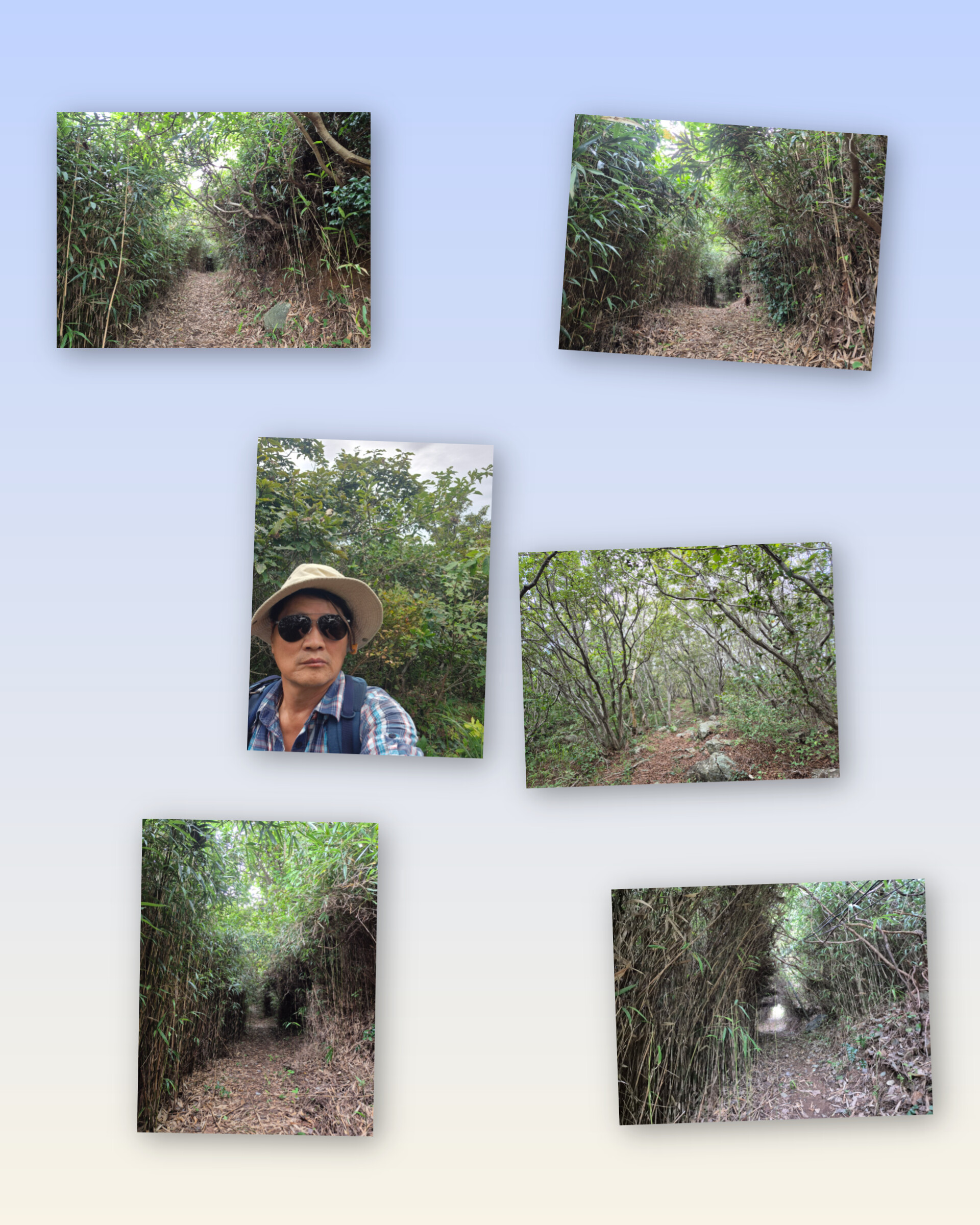 어두운 대나무숲을 몇차례지나고 숲길의 오름을 지나니 정상이지만,아무것도 보이질 않는다.