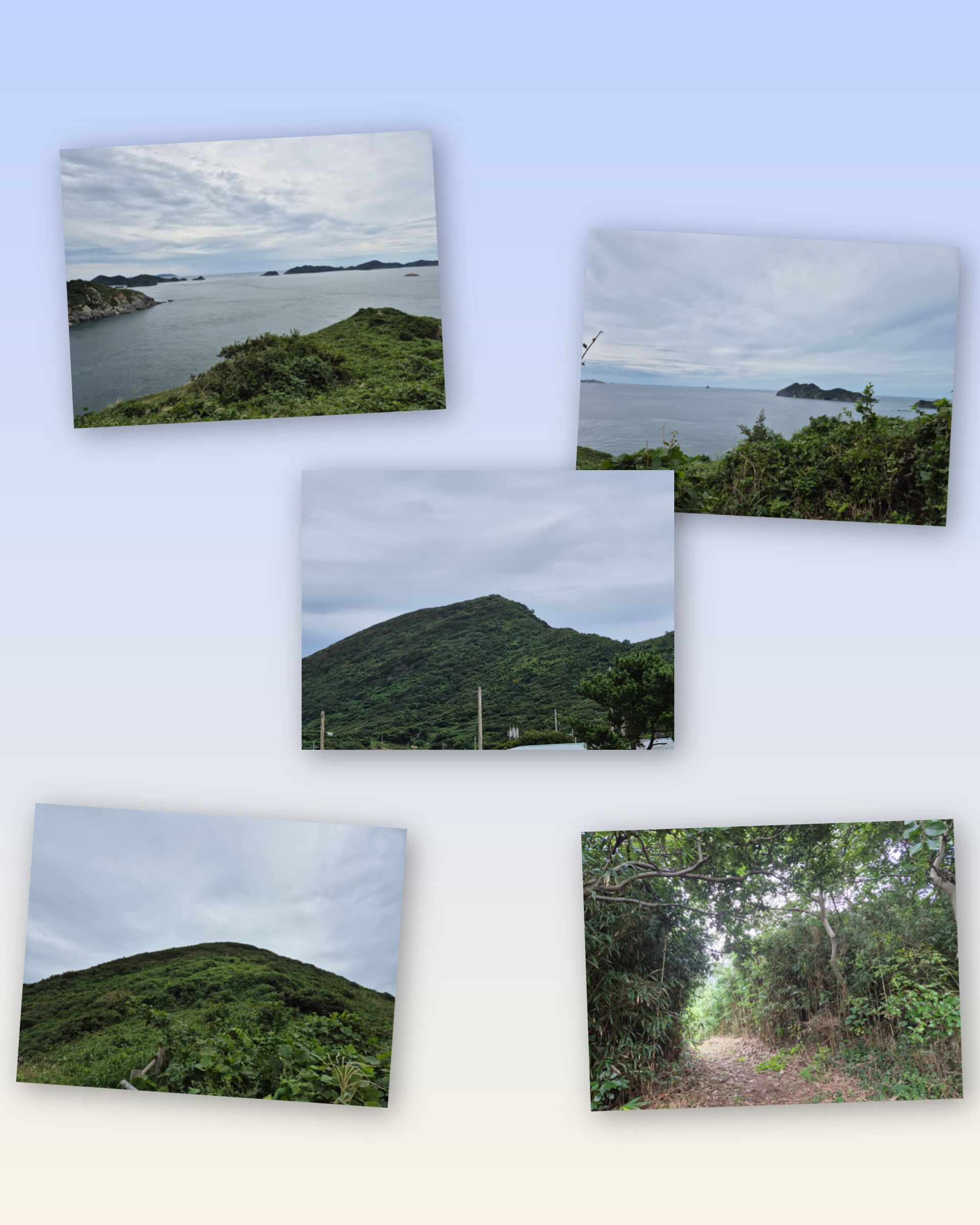 해발이 높아질수록 바다는 내려다보이고 아무도없는 산길이 여유롭고 한갓지다.