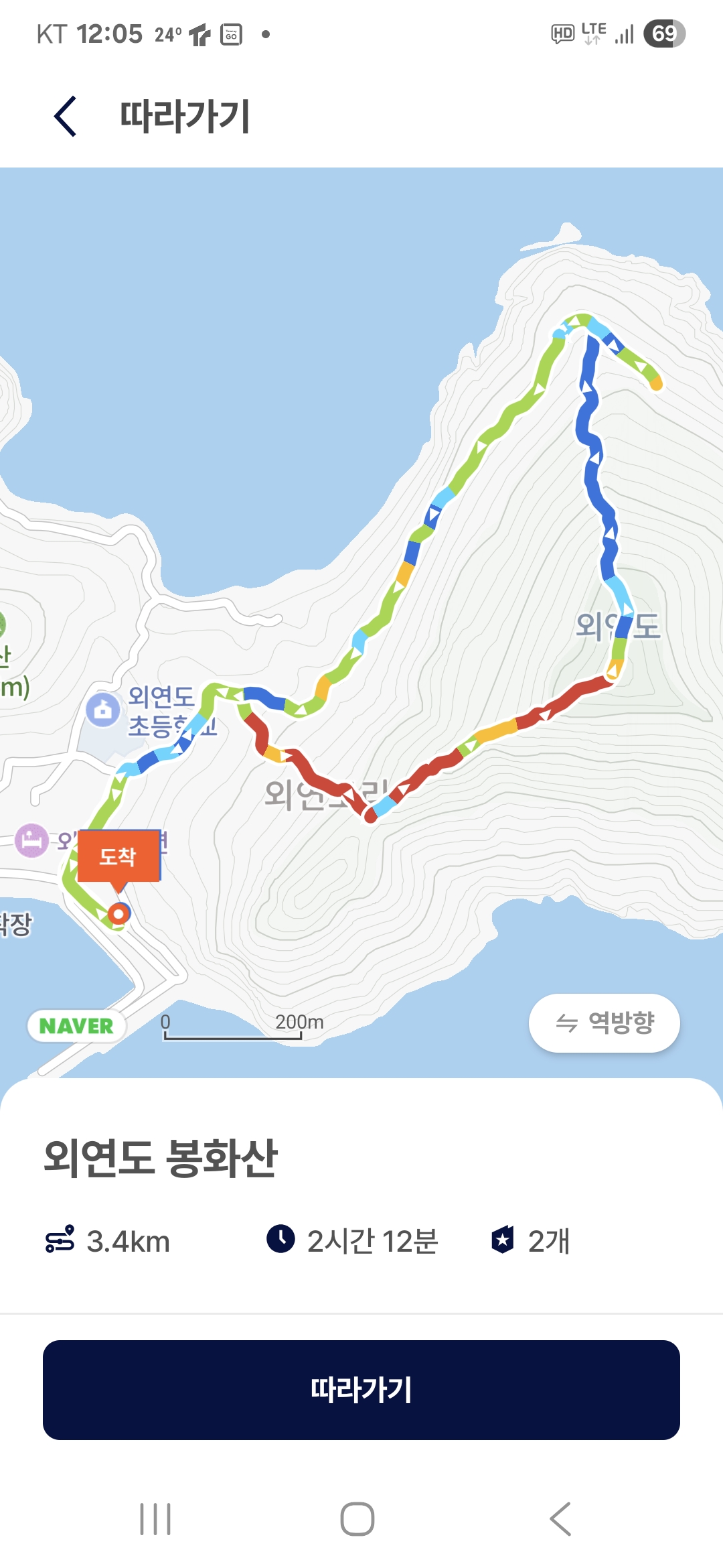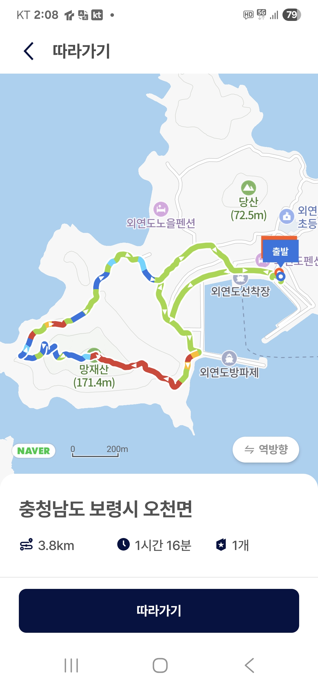 3.*봉화산:숙소-외연초-봉화산-해변-원점회귀 3.4km