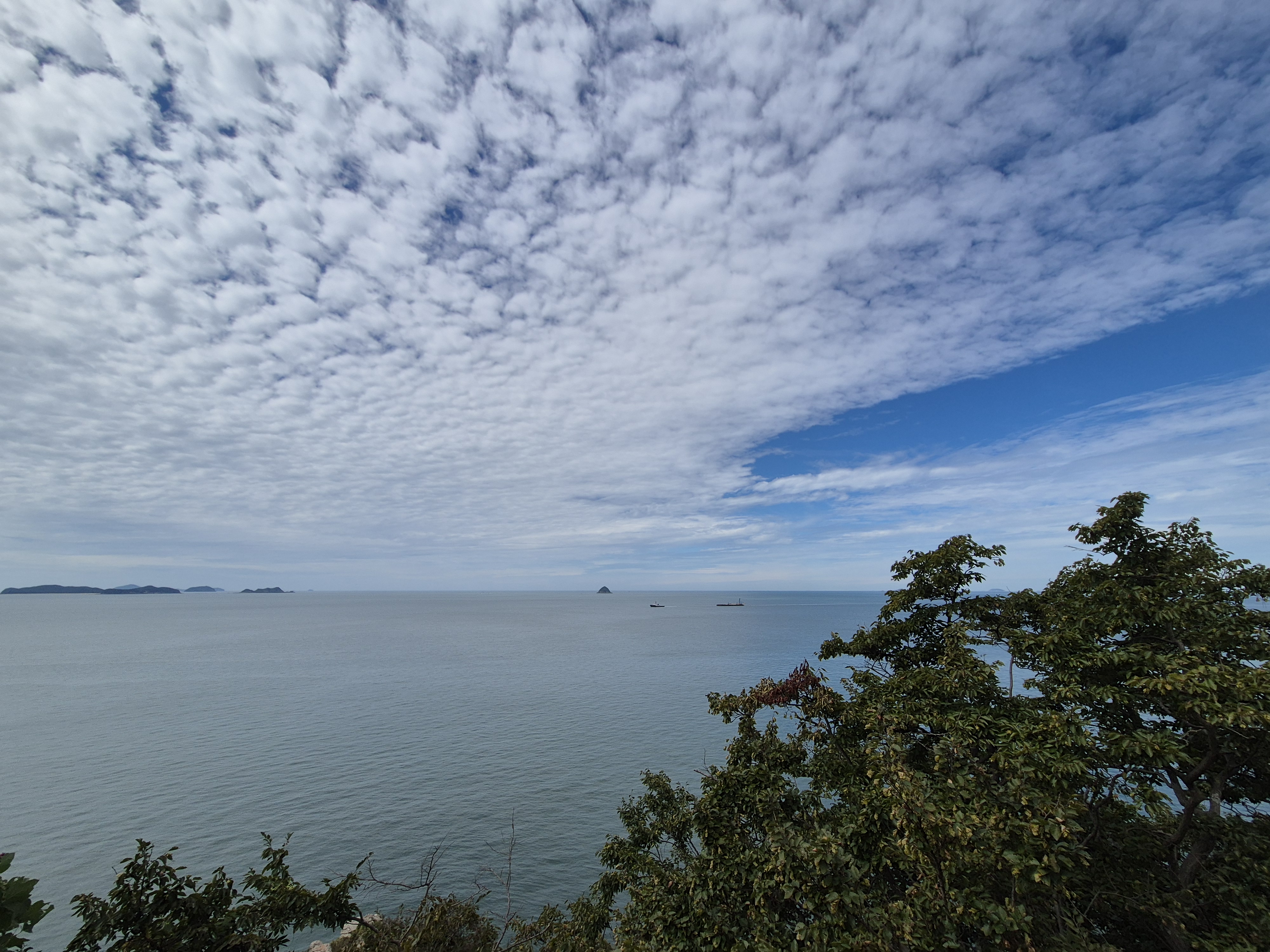 하늘은 청명하고 맑으며 뭉게구름이 듬성듬성 자릴잡고있다.