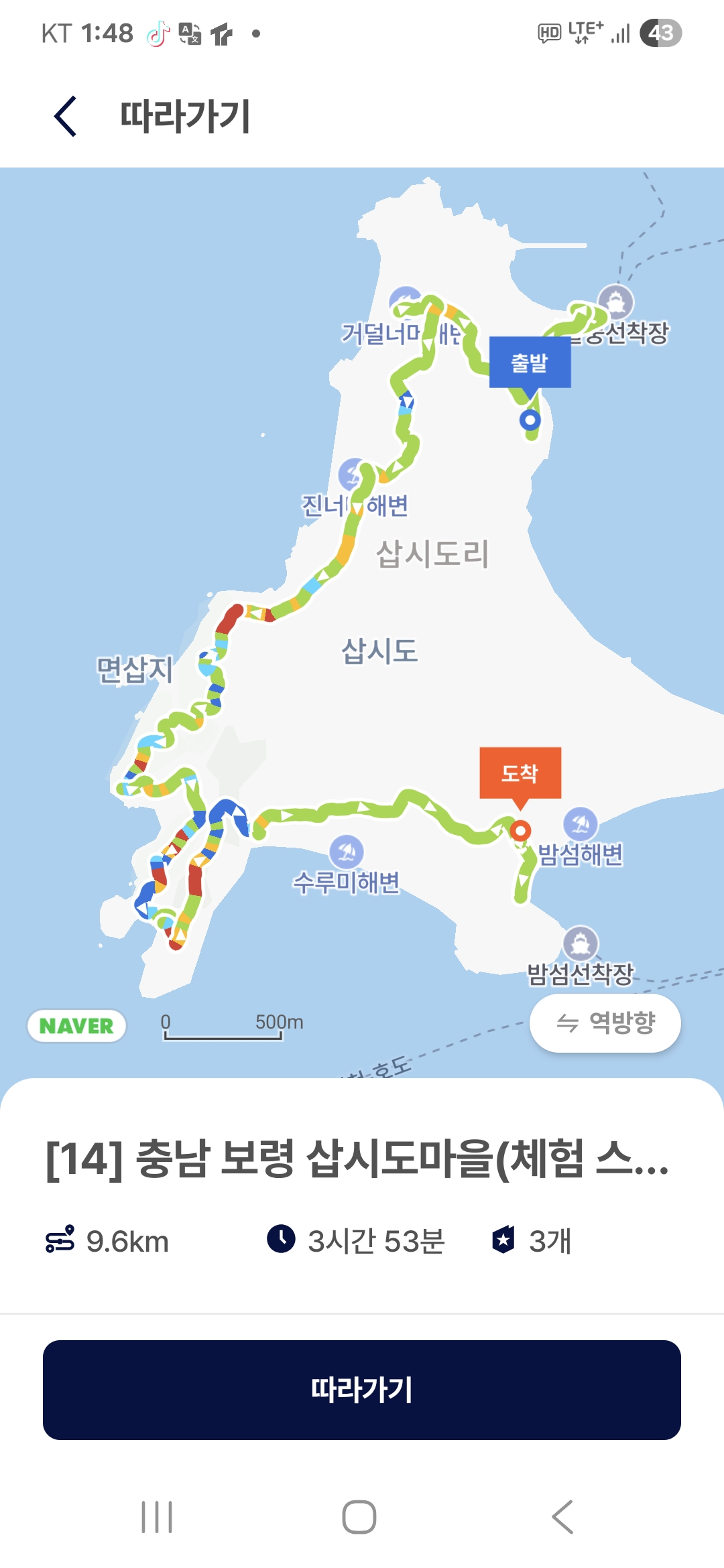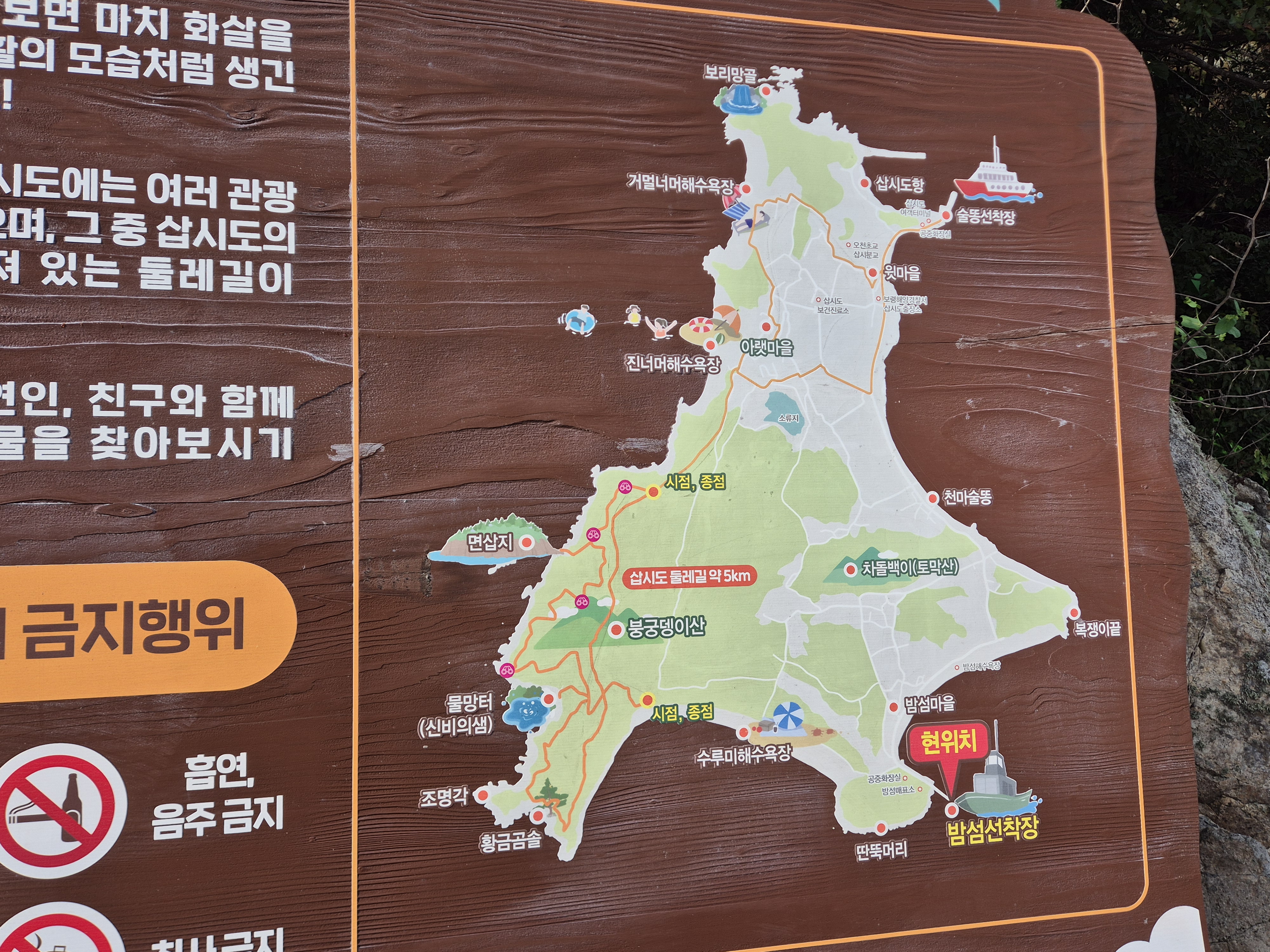 해변에서 바닷물에 발을 담그려다 참고는 다시 길을 걸어 밤섬선착장에 도착한다.