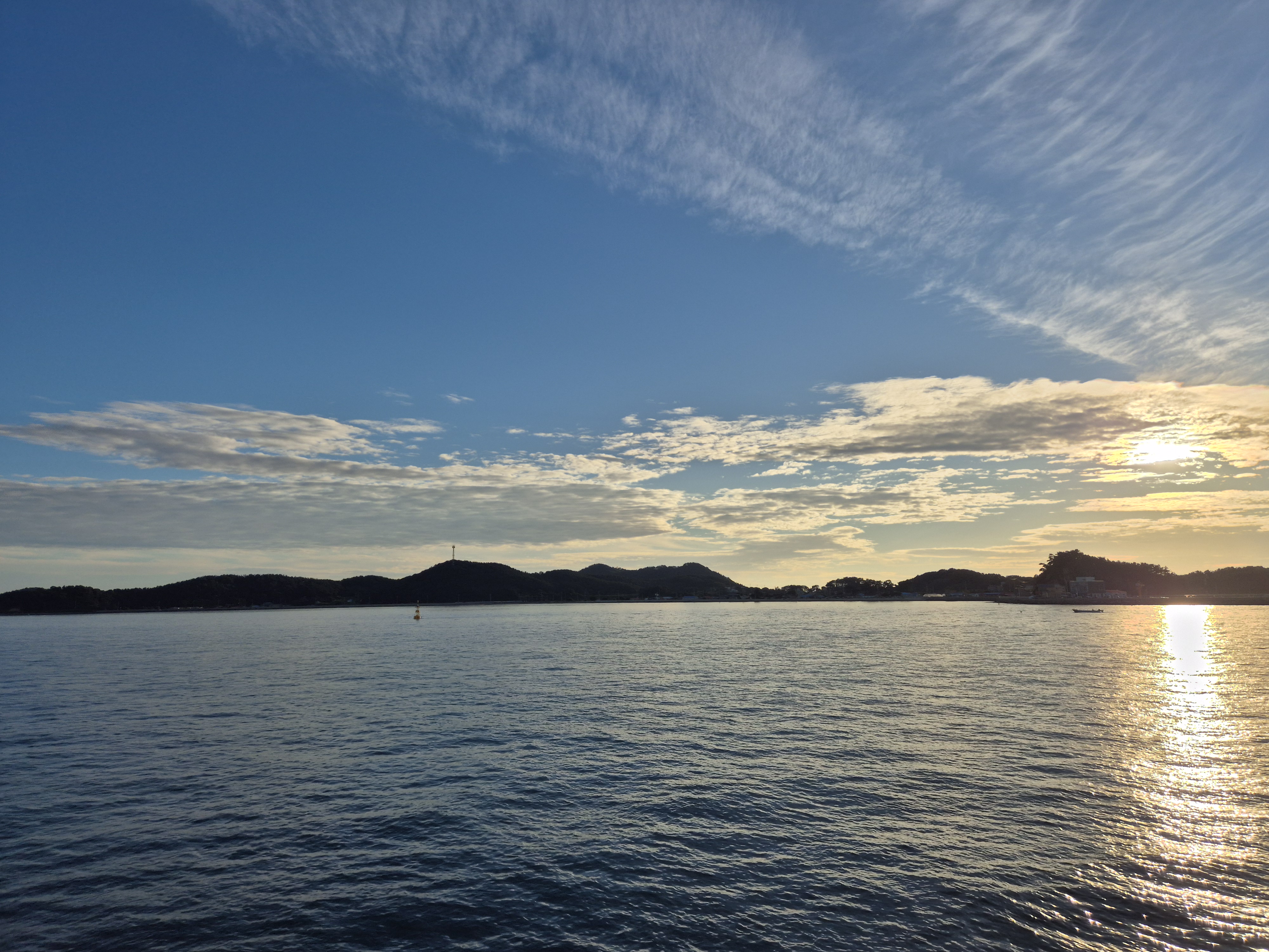 07시30분에 출항하는 배에 승선하여 아침햇살을 받으며 삽시도로 달린다.