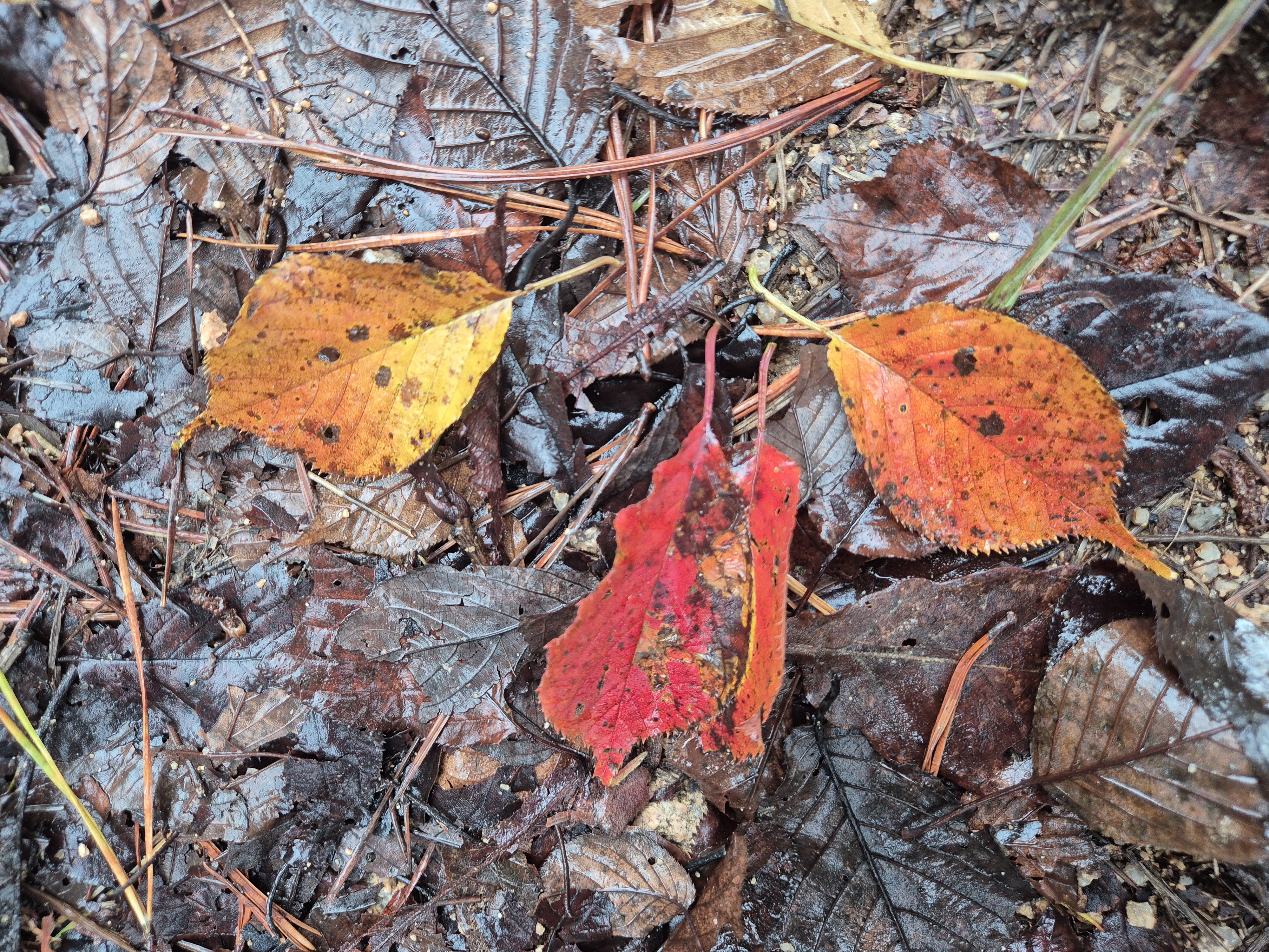 빗물을 받아 떨어진 낙엽이 단풍으로 물든 것들도 눈에 띈다.