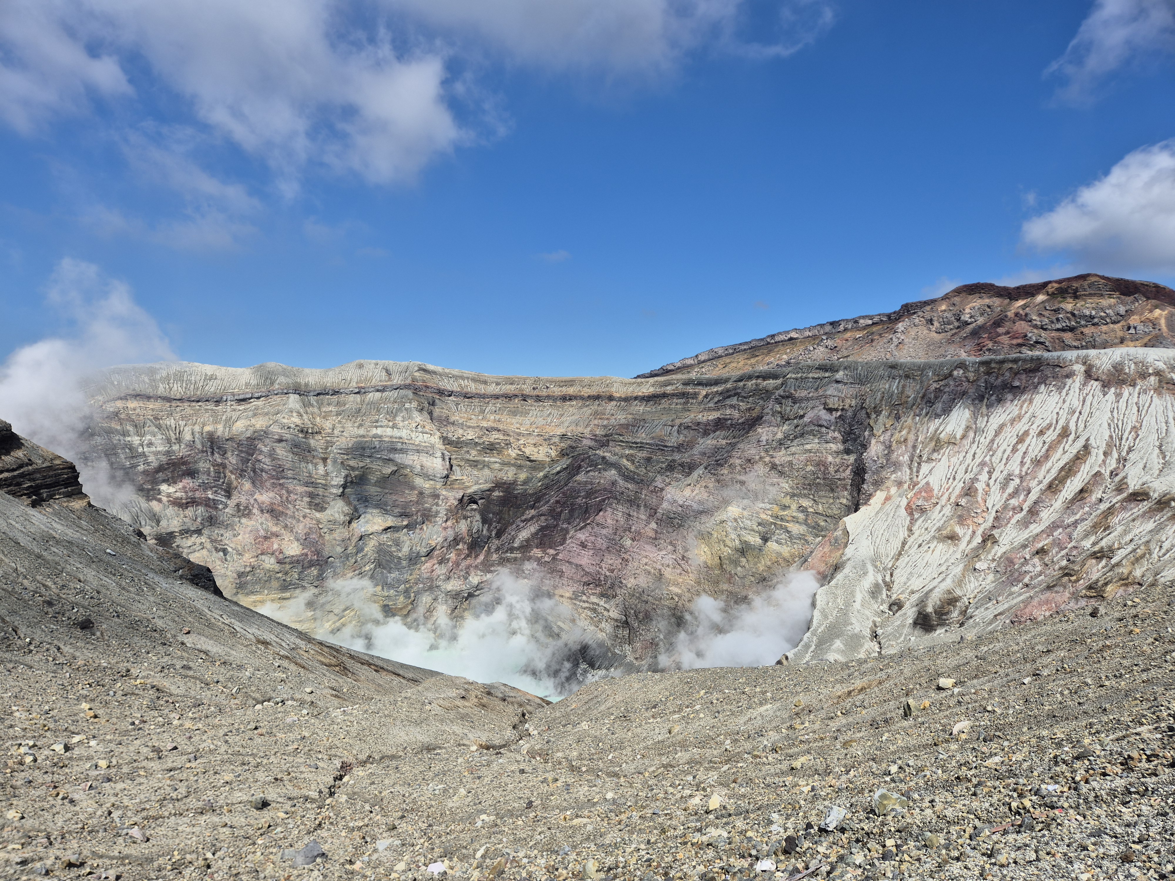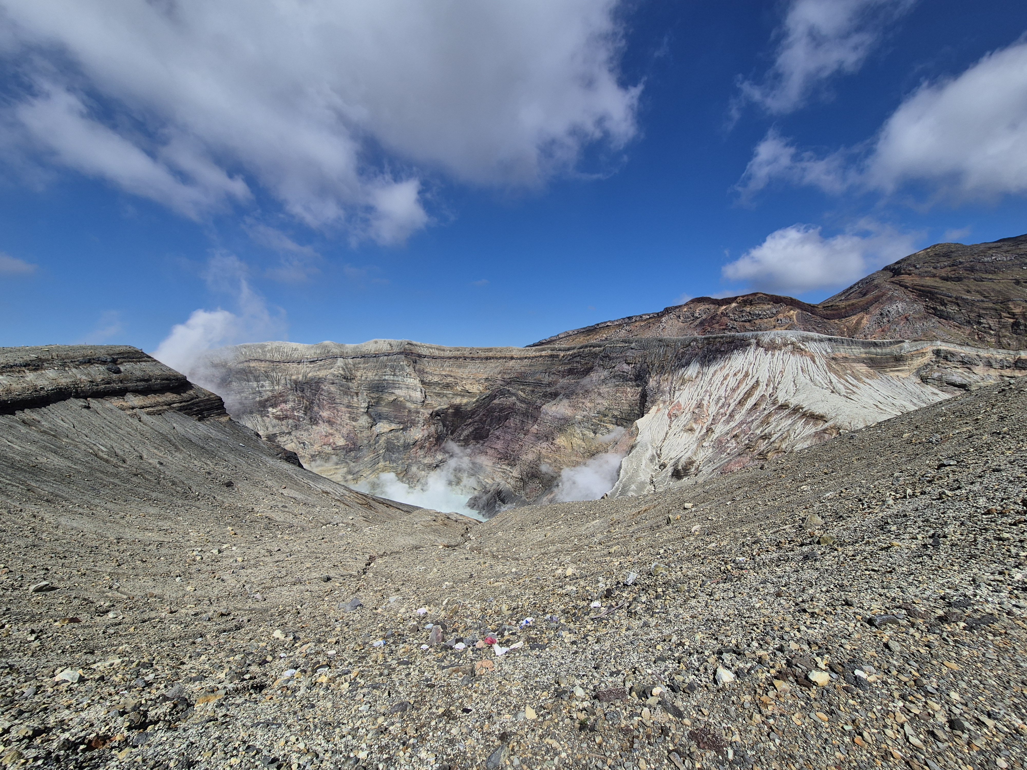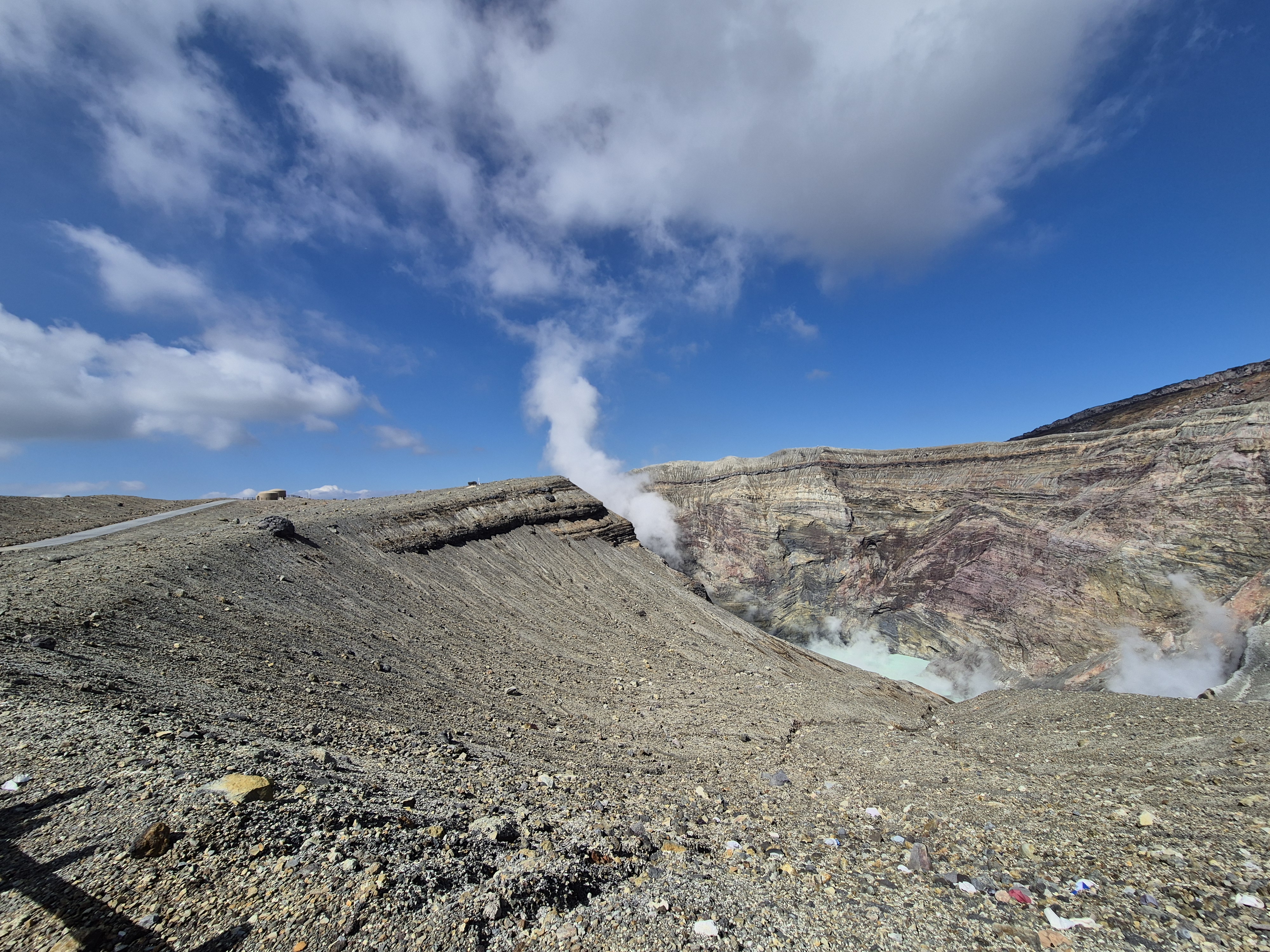 휴화산이 된 화산이지만 지금도 분화구에서는 연기가 피어오르며,언제까지 분출될지 알지를 못한다.