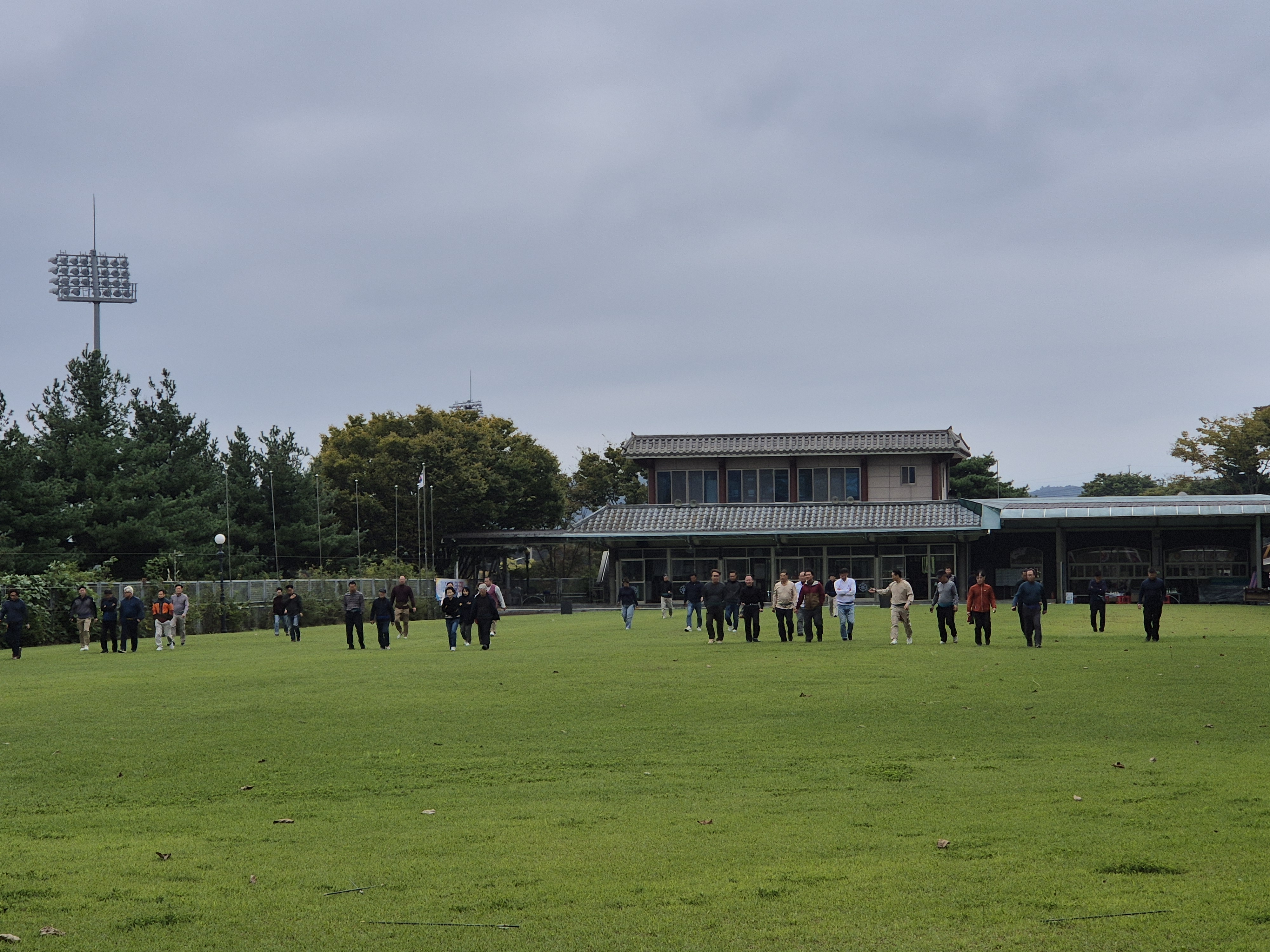 근래 드물게 많은 사우들이 참석하여 월례회를 마치고는 바로 친선경기에 나선다.