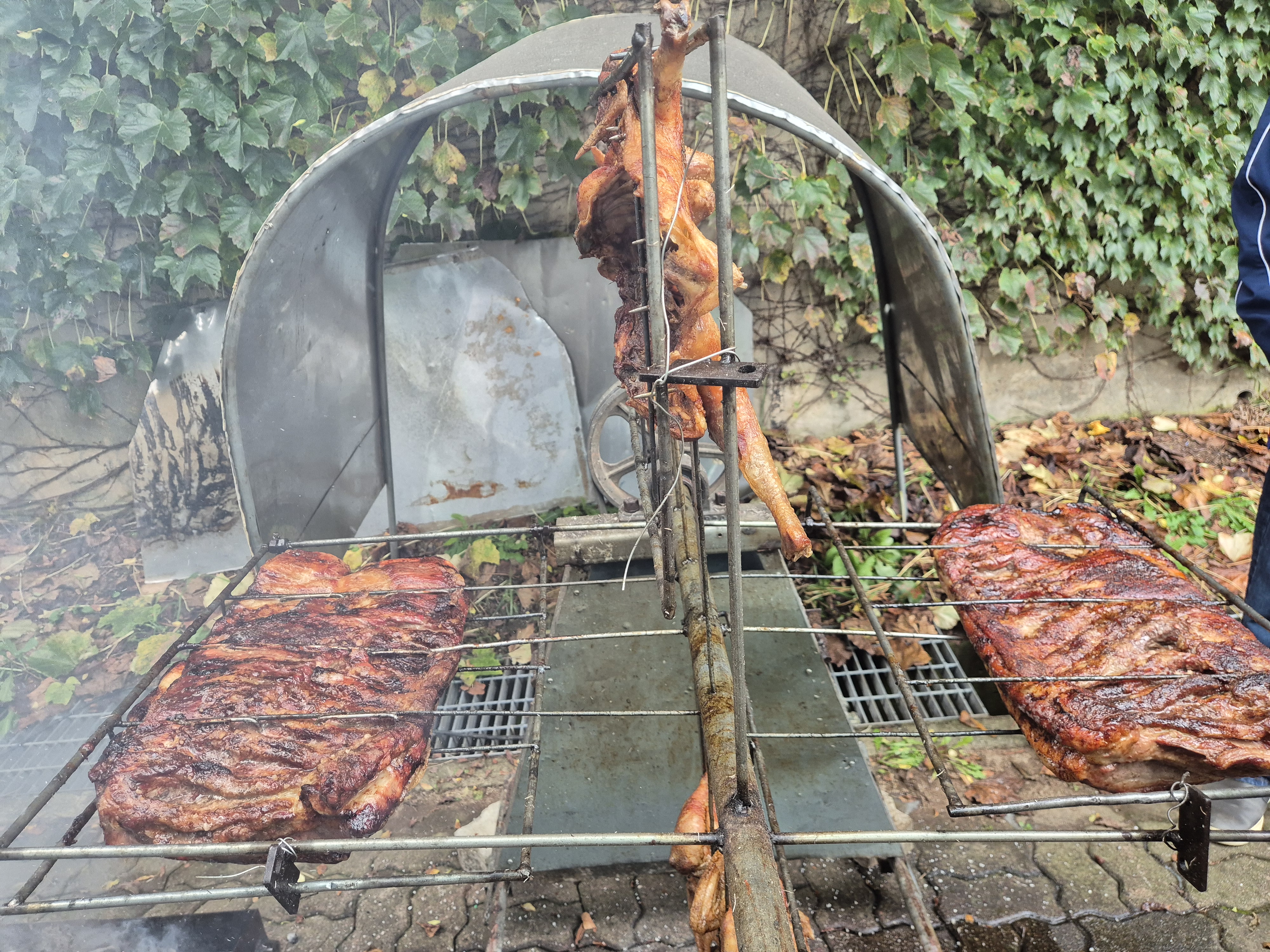 아침까지 비가오다가 개이고 하늘은 잔뜩 흐린상태지만,활터에는 고기를 굽고