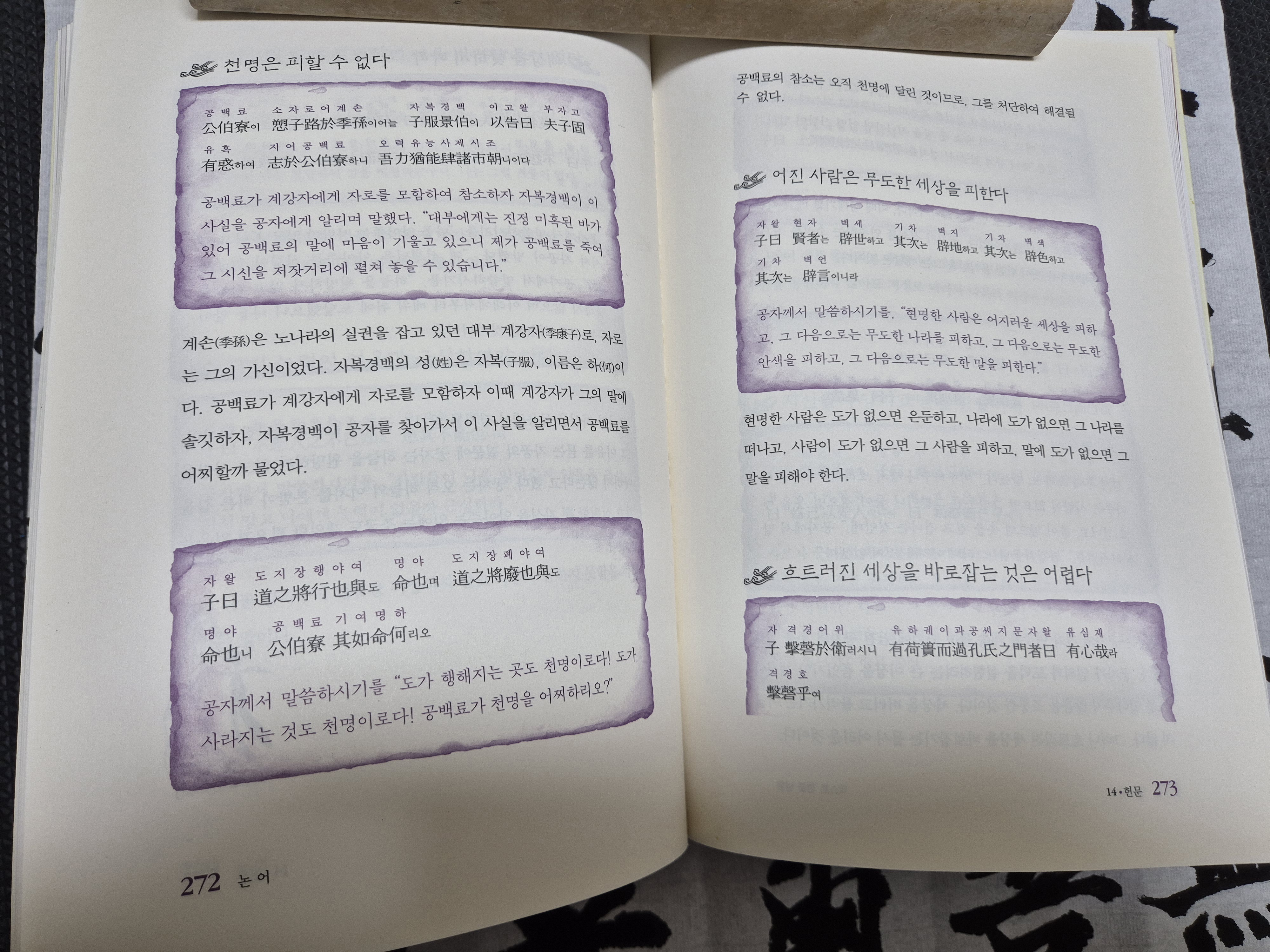 분당에서는 논어를 구입하여 그것을 필사하고있다.