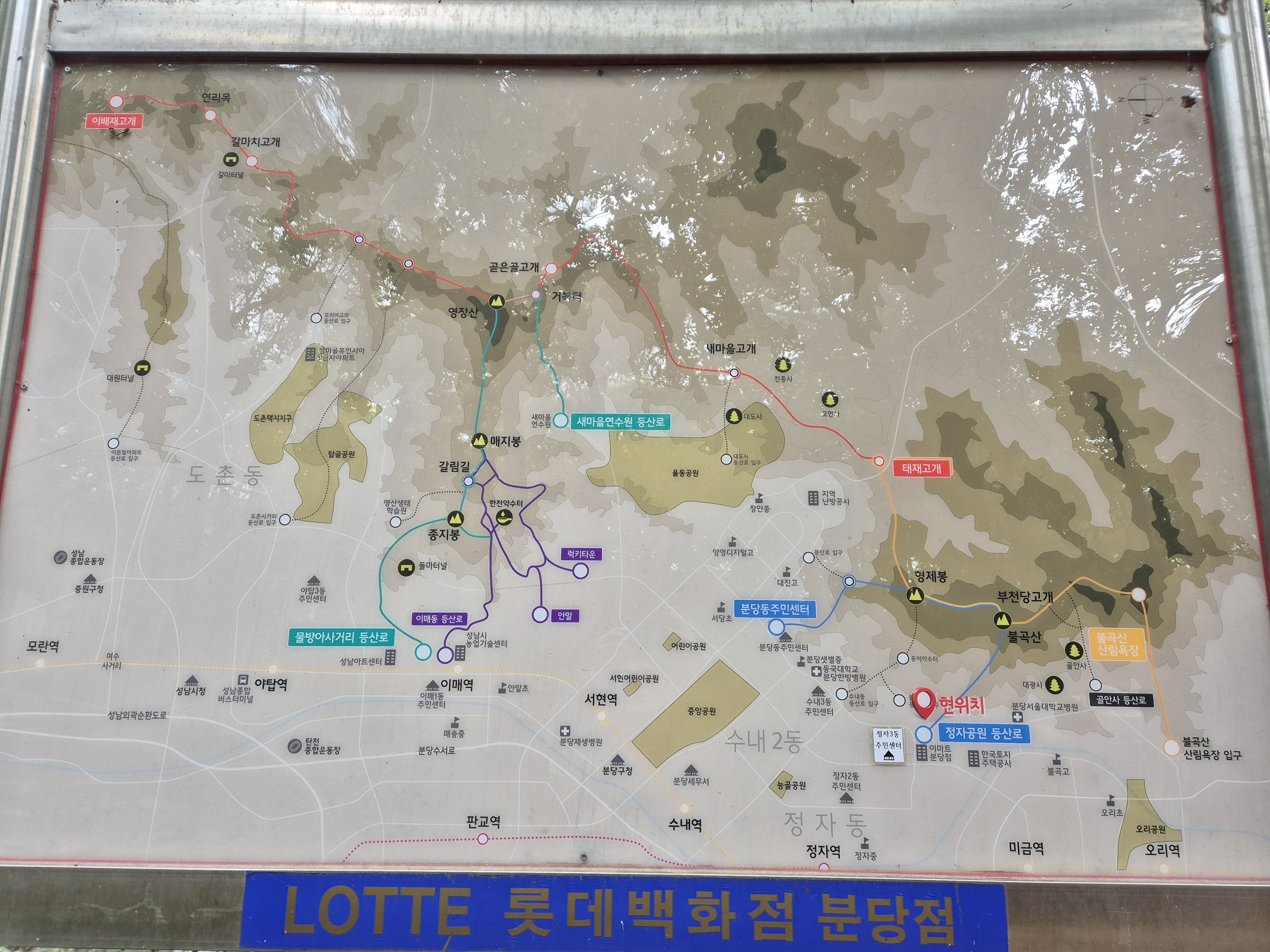 분당천을 따라 걷다가 시내길을 걸어 정자공원입구에서 산으로 오른다.