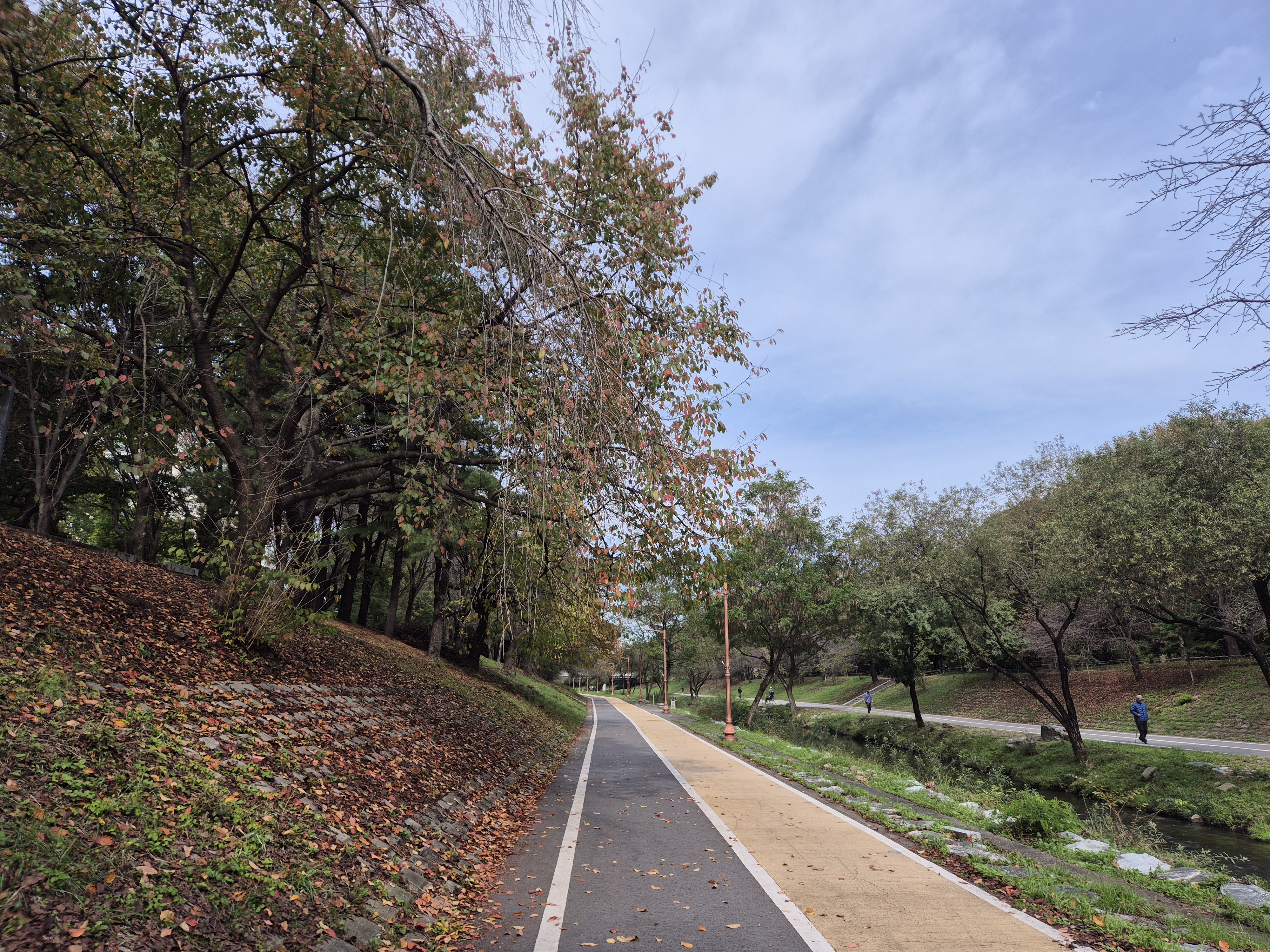 식사후 탄천으로 내려가려다 도반이 만류하여 오던길로 되돌아간다.