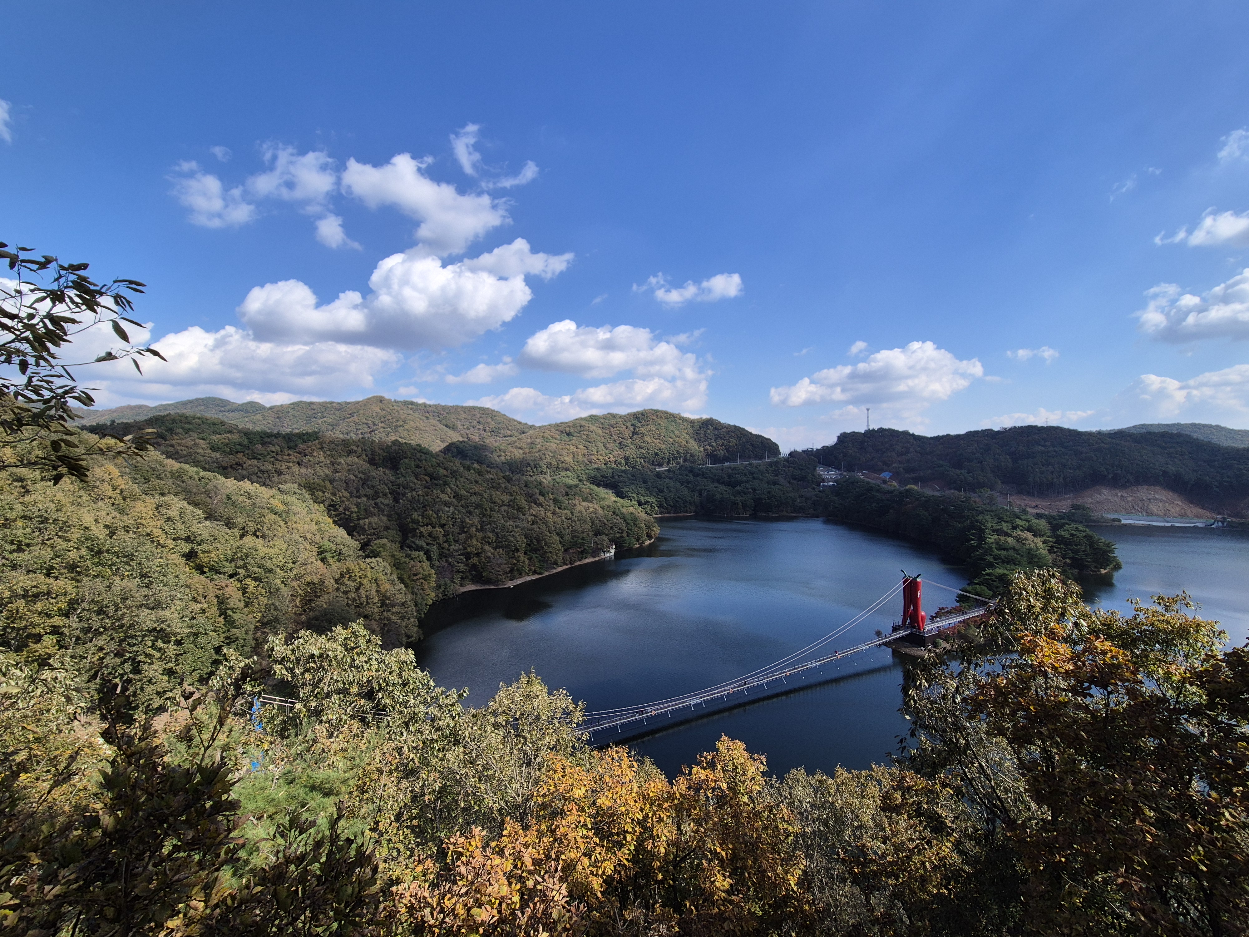 계단길 상단에 도달하니 천장호와 출렁다리가 눈아래로 내려다보이고,
