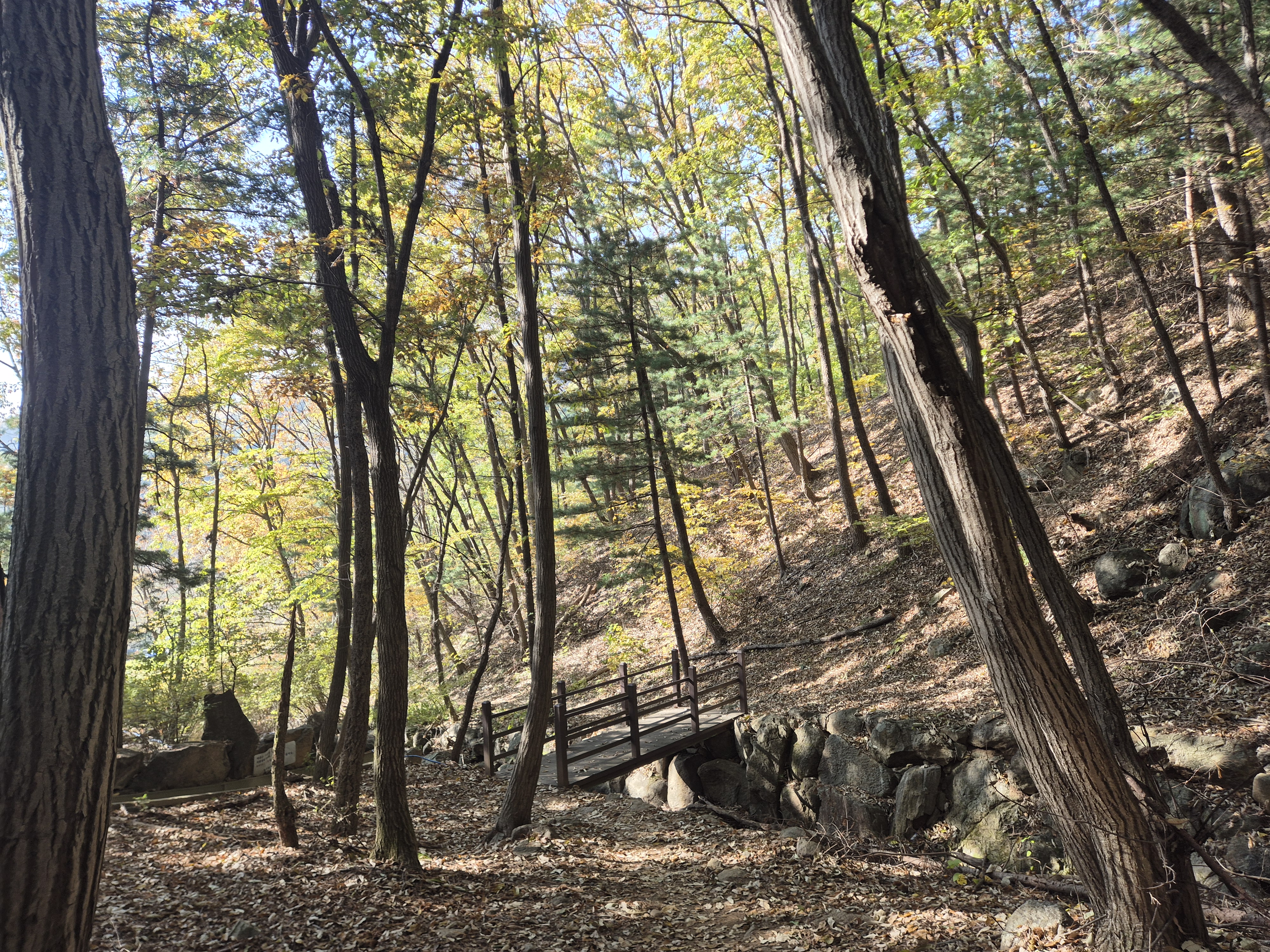 가을이 깊어가고 바닥에 쌓인 낙엽을 밟으면서 걷는 길은 운치가 제대로이다.