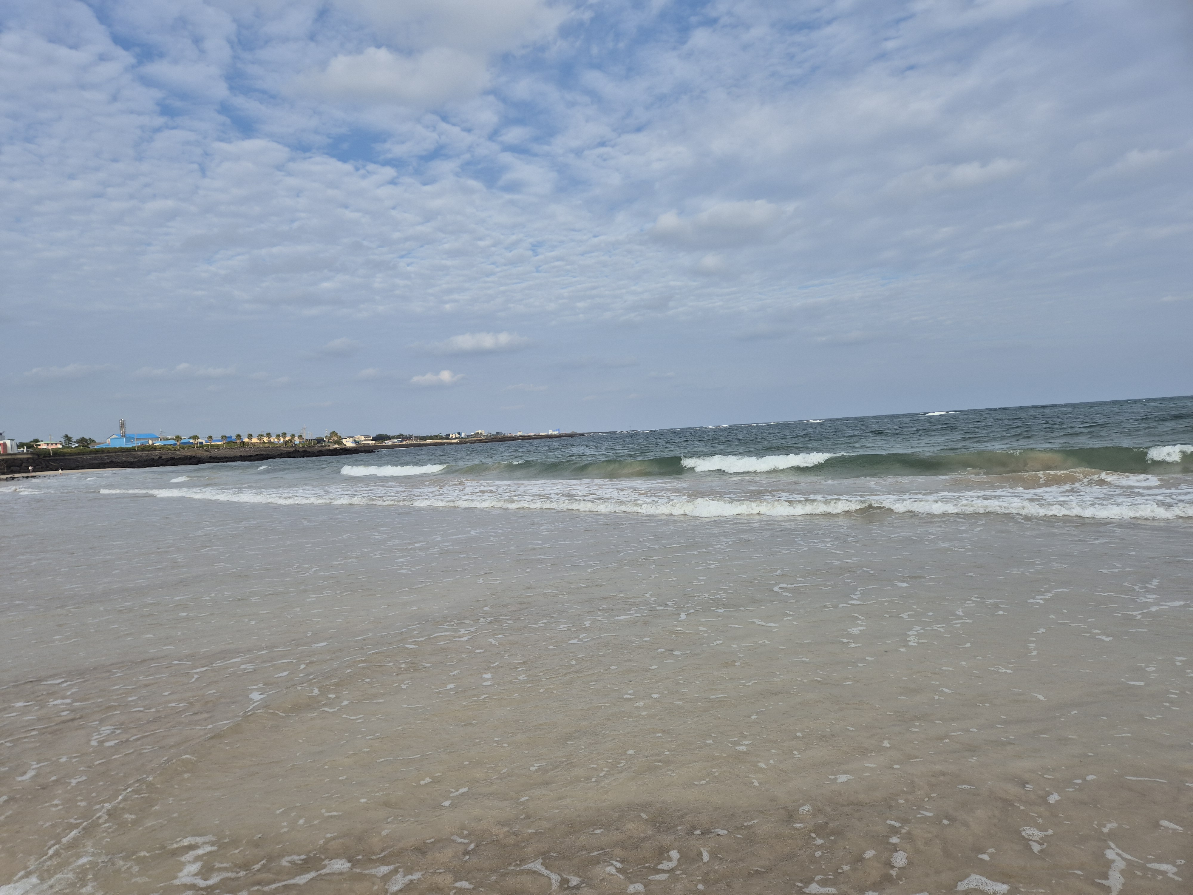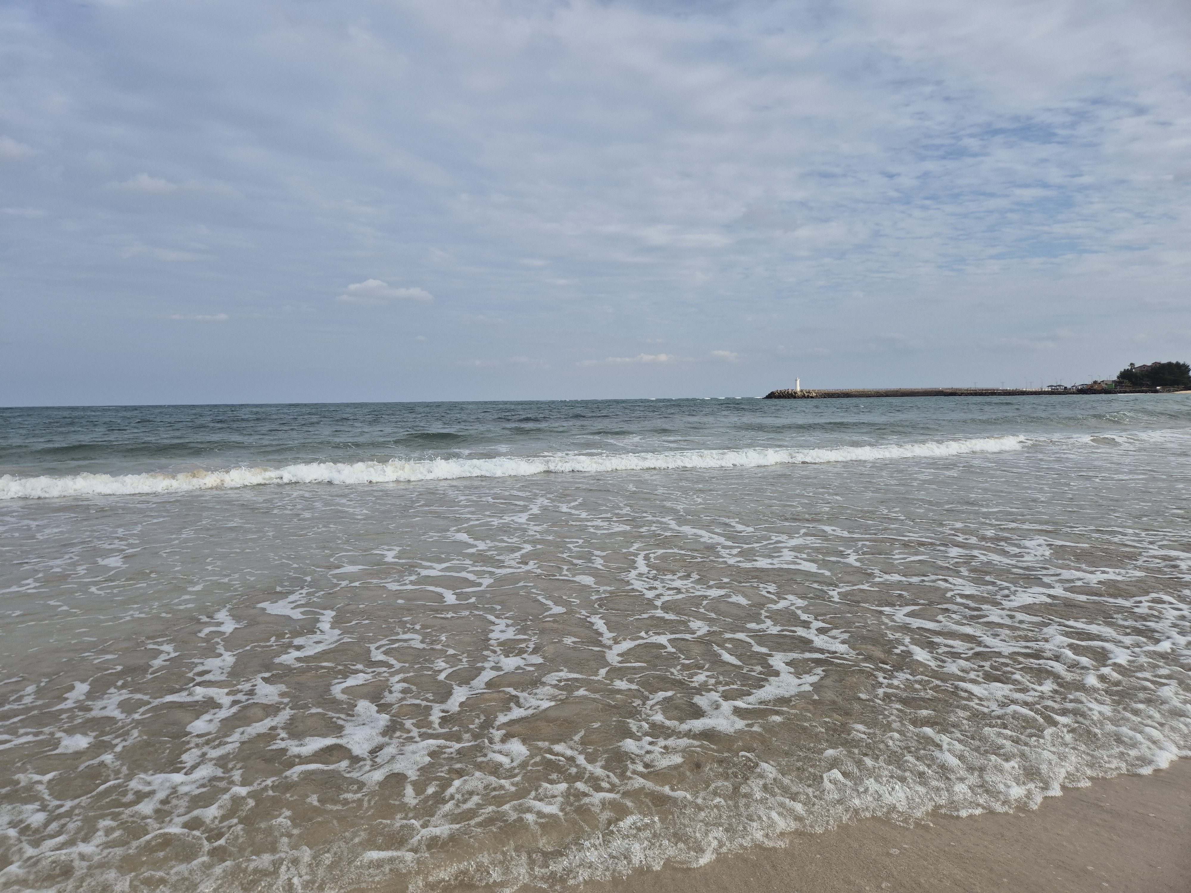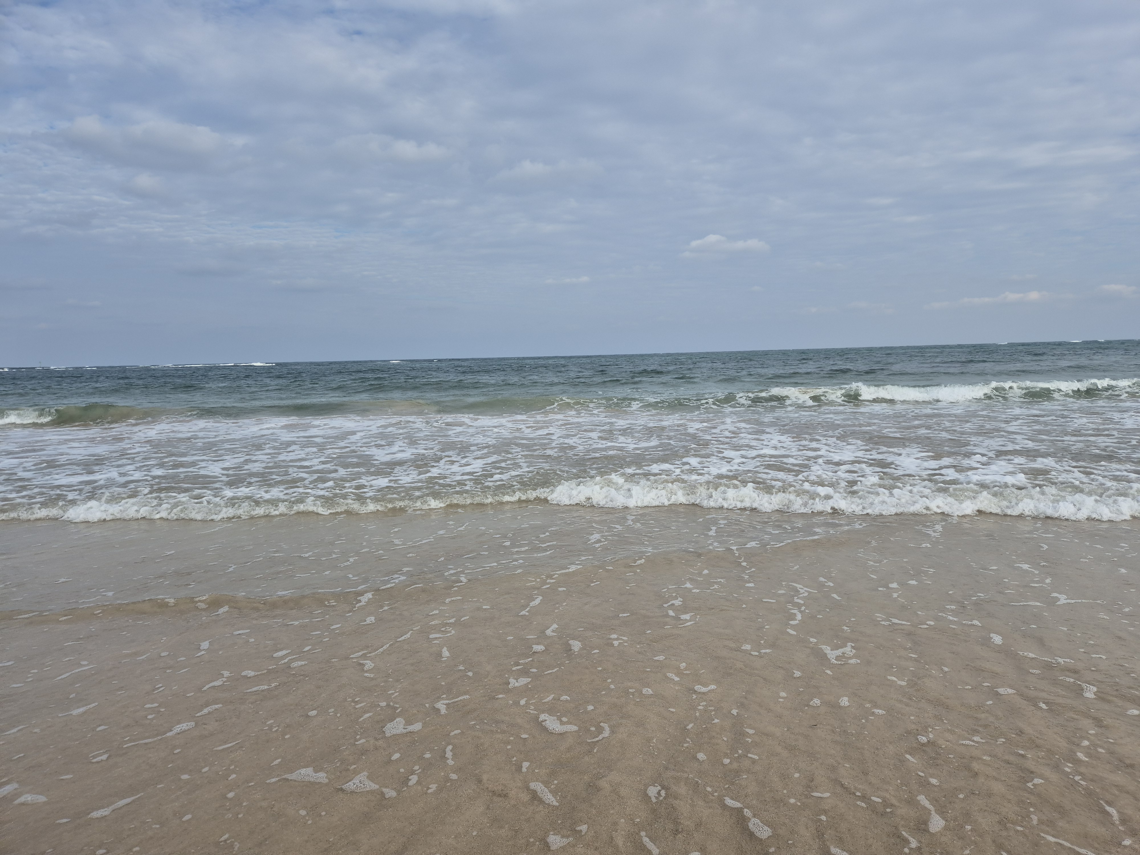 파도가 밀려오면 바닷물에서,물이 빠져나가면 모래사장을 기분좋게 걷는다.