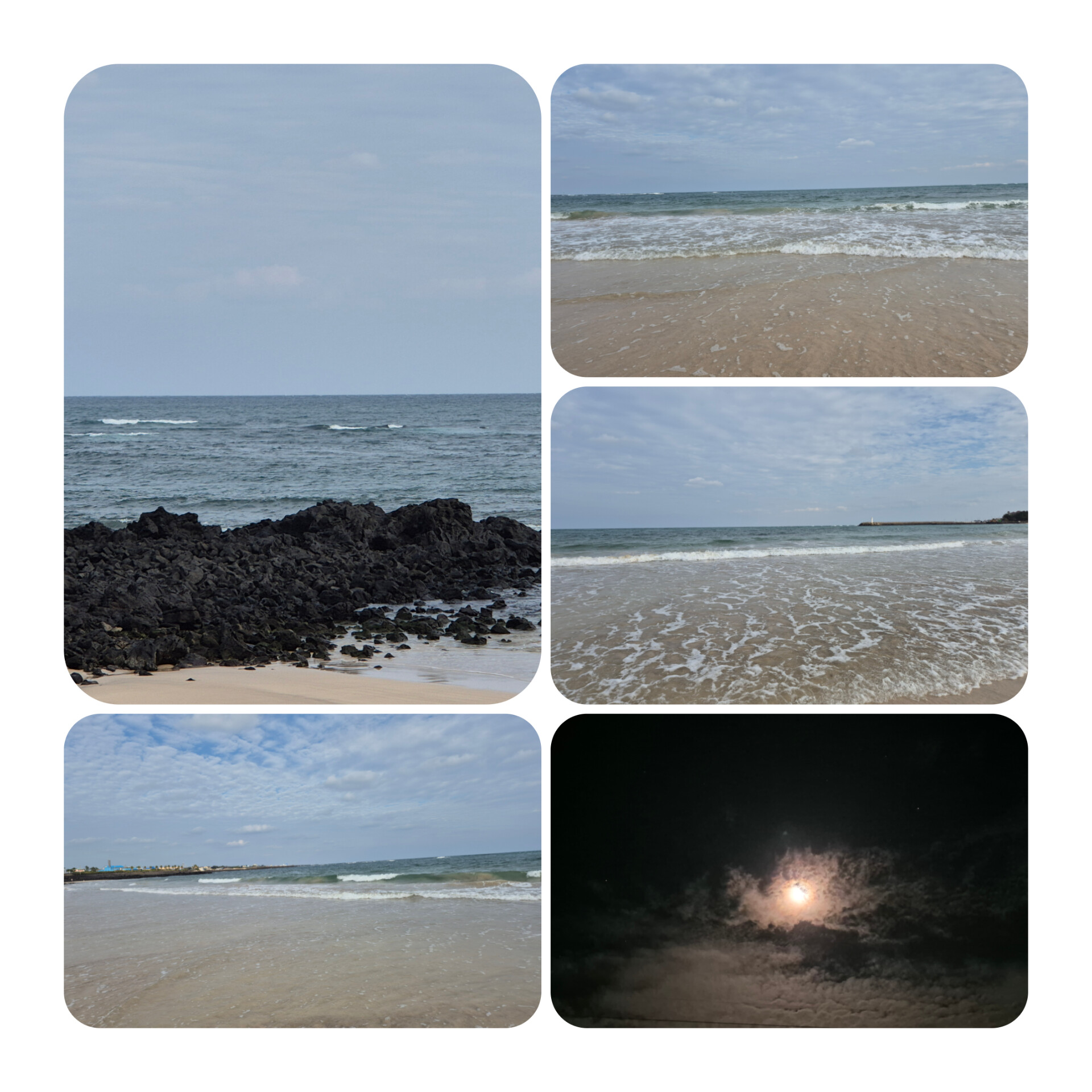 고은모레가 깔린 바닷가를 어씽을 하며 수차례 바닷가를 오간다.