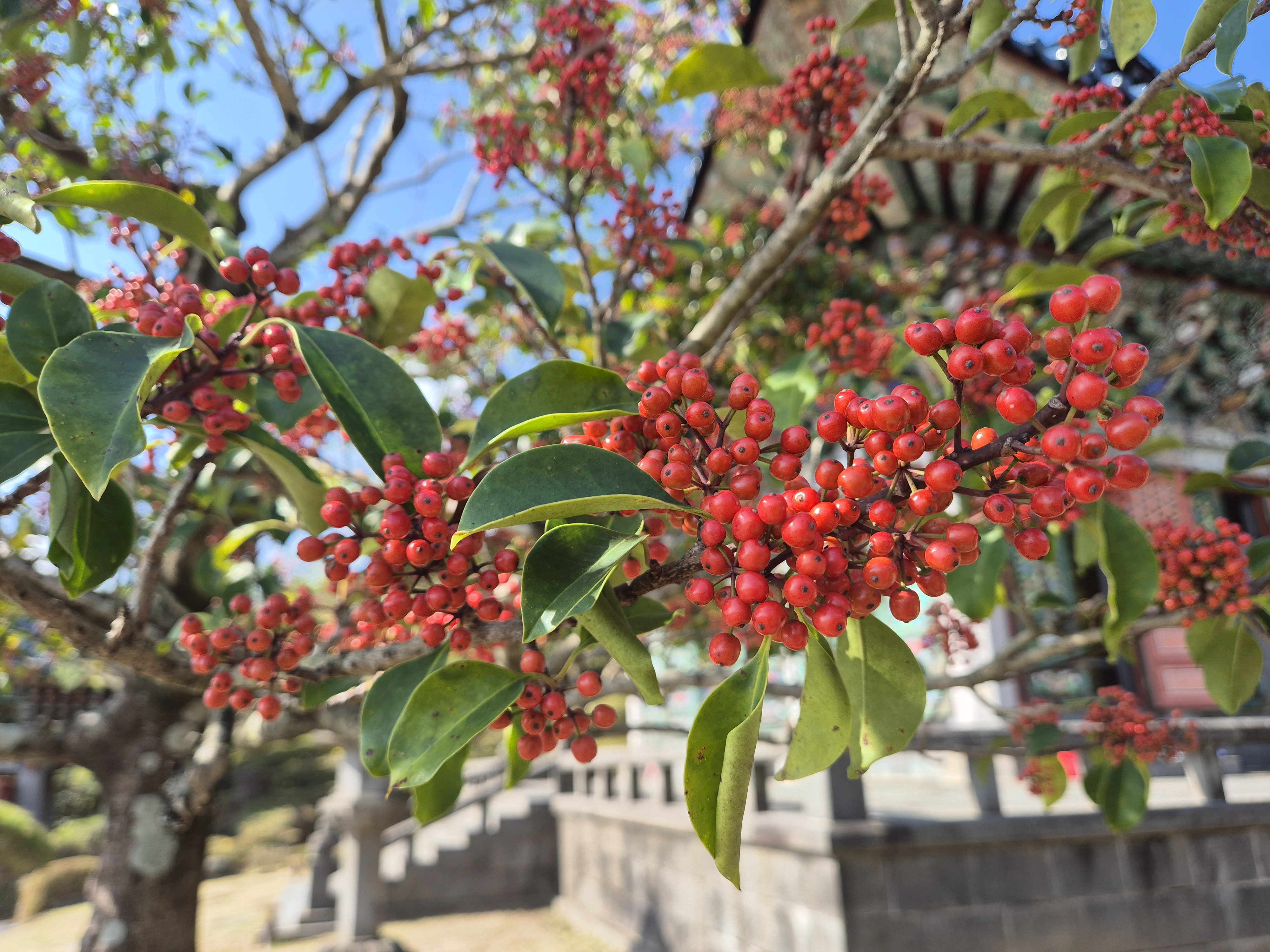주변에 귤농장이 있어 아직도 싱싱한 귤이 나무에 달려 익어가고있다.